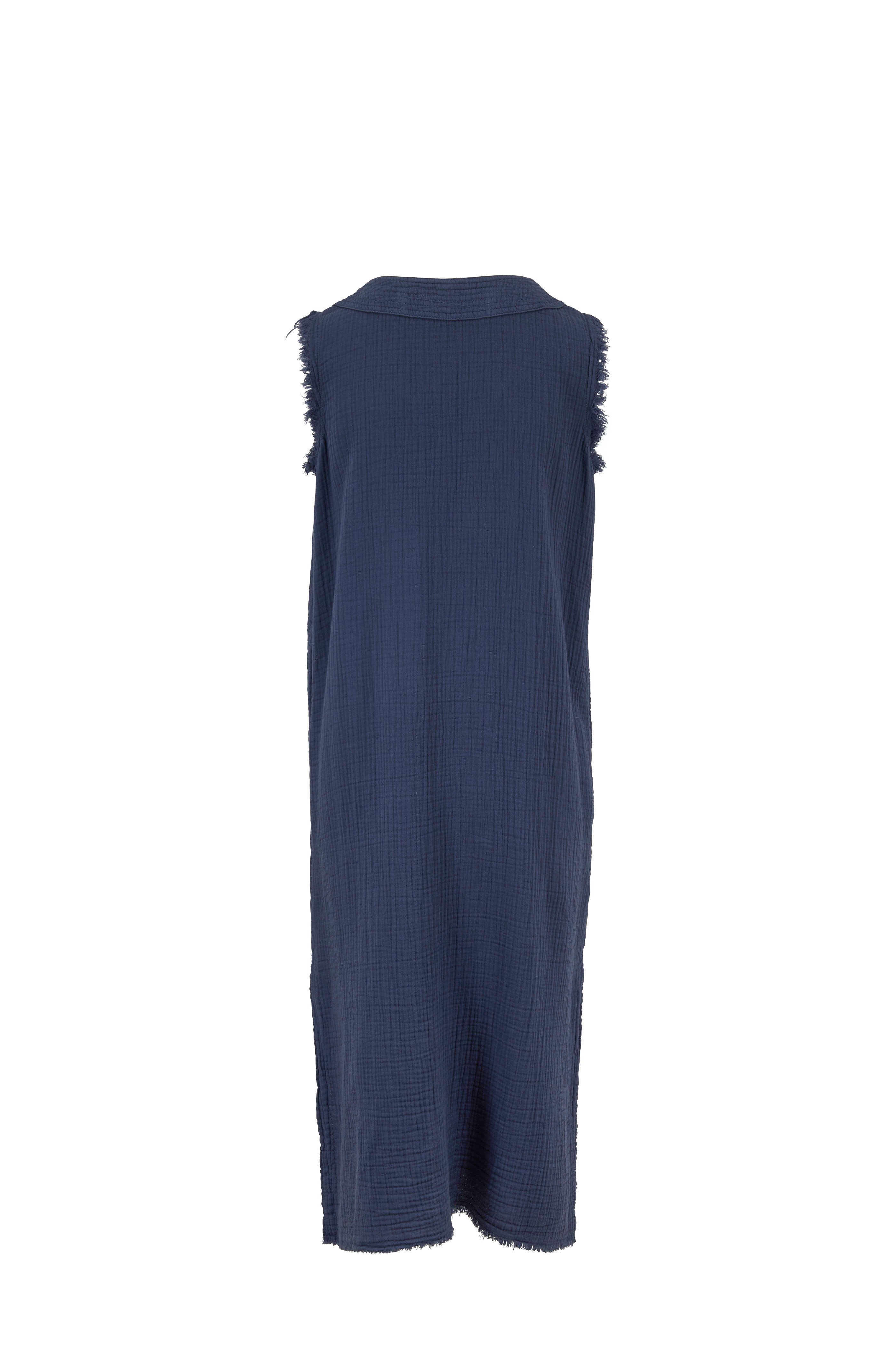 Cotton gauze. V-neckline. Slip-over styling. Raw edge trim at arm openings. Side vents. Made in the USA. Hand wash.
