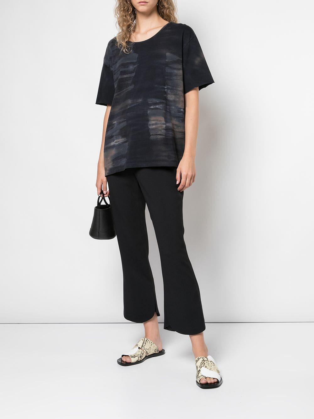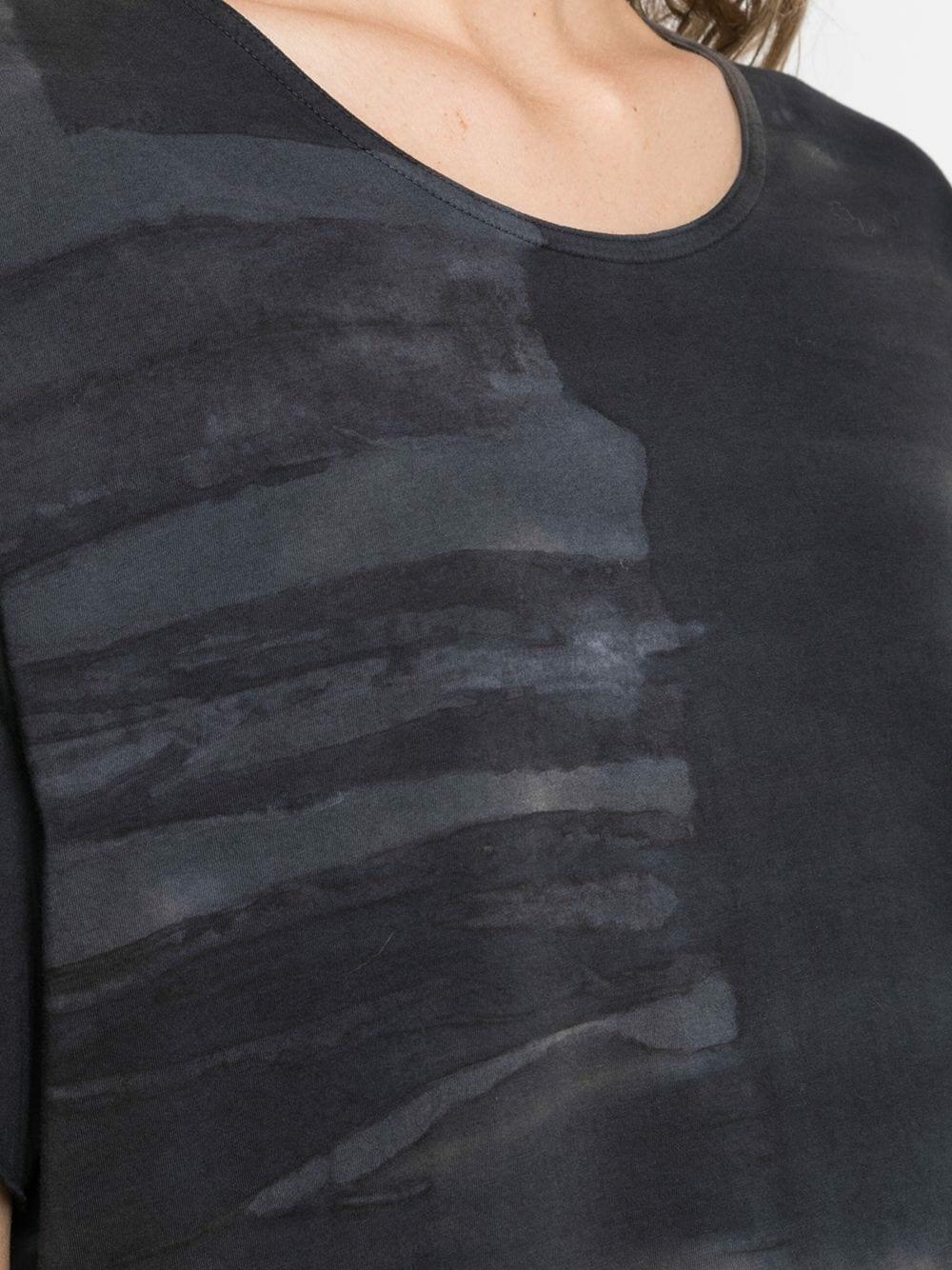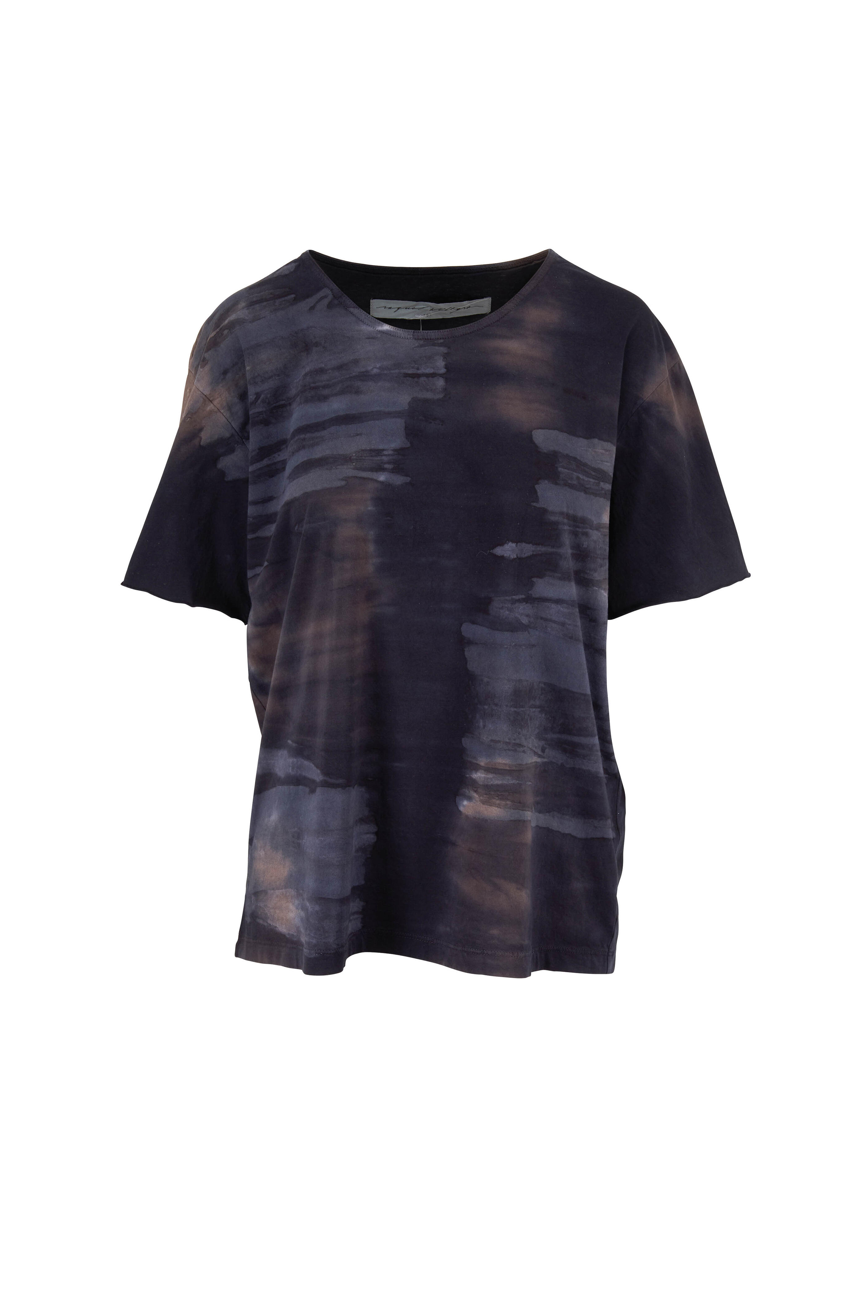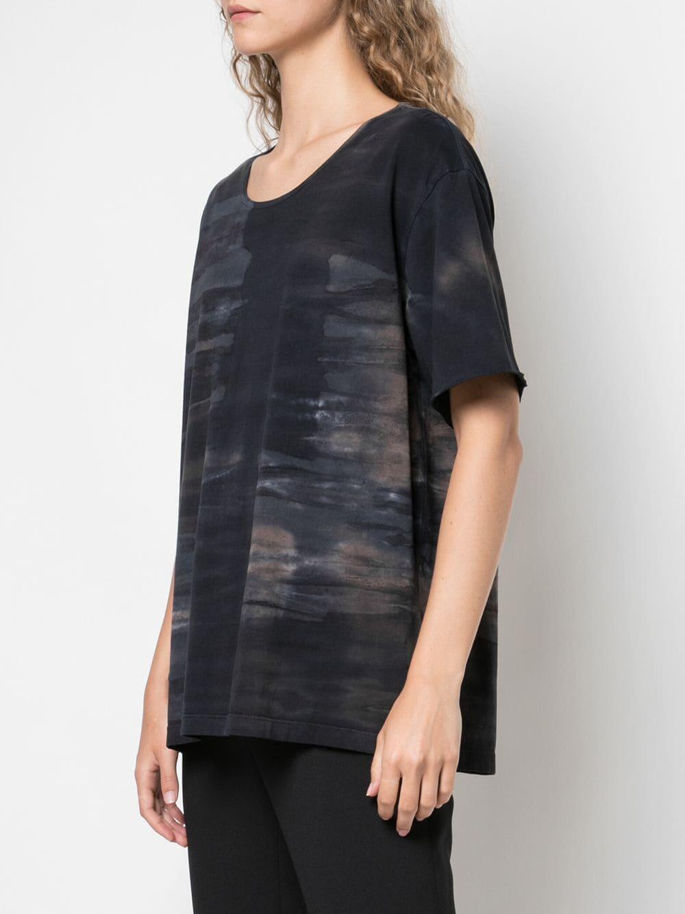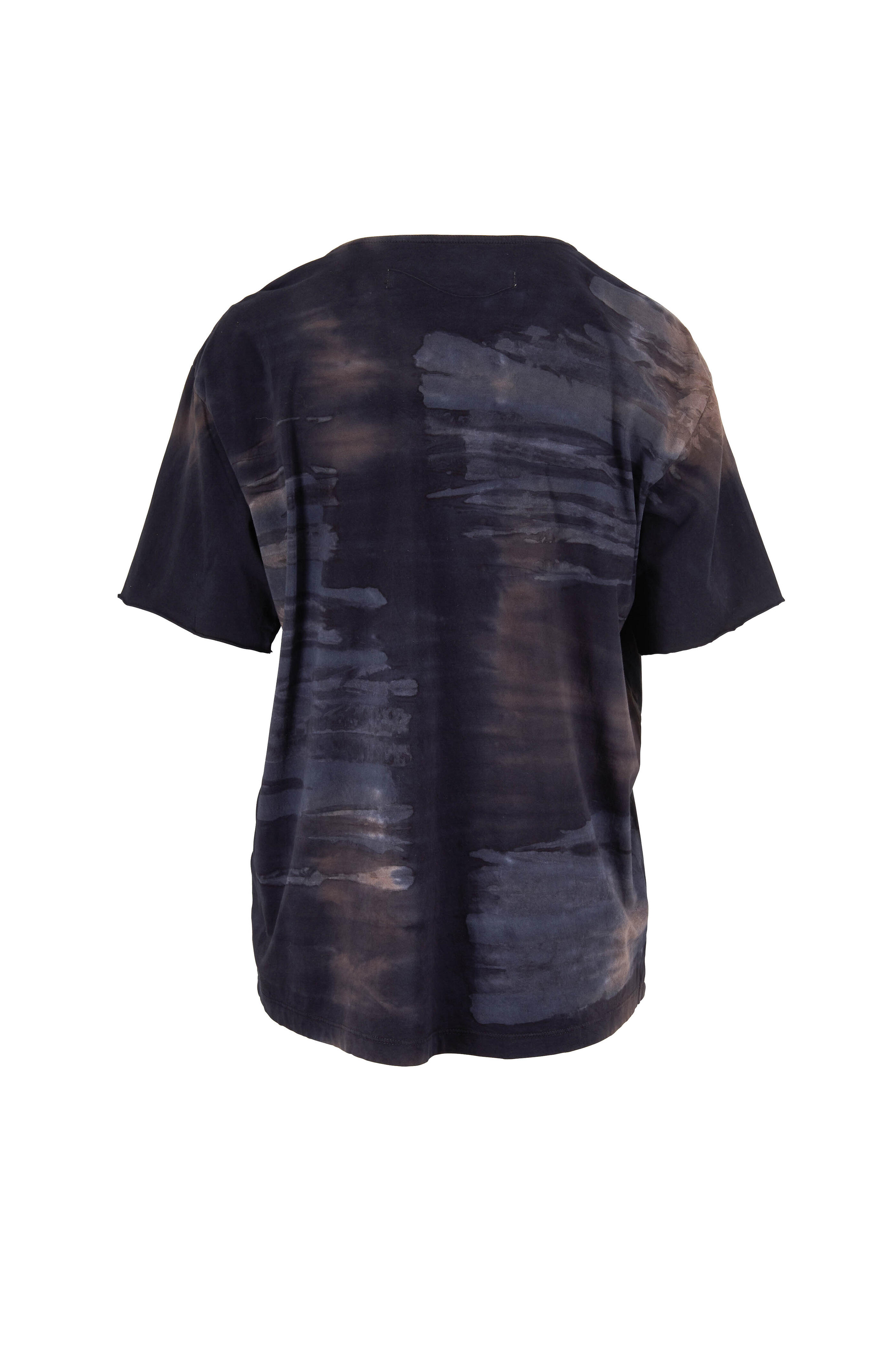 Jewel neckline. Raw edge cuffs. Made in the USA. 100% cotton. Hand wash.