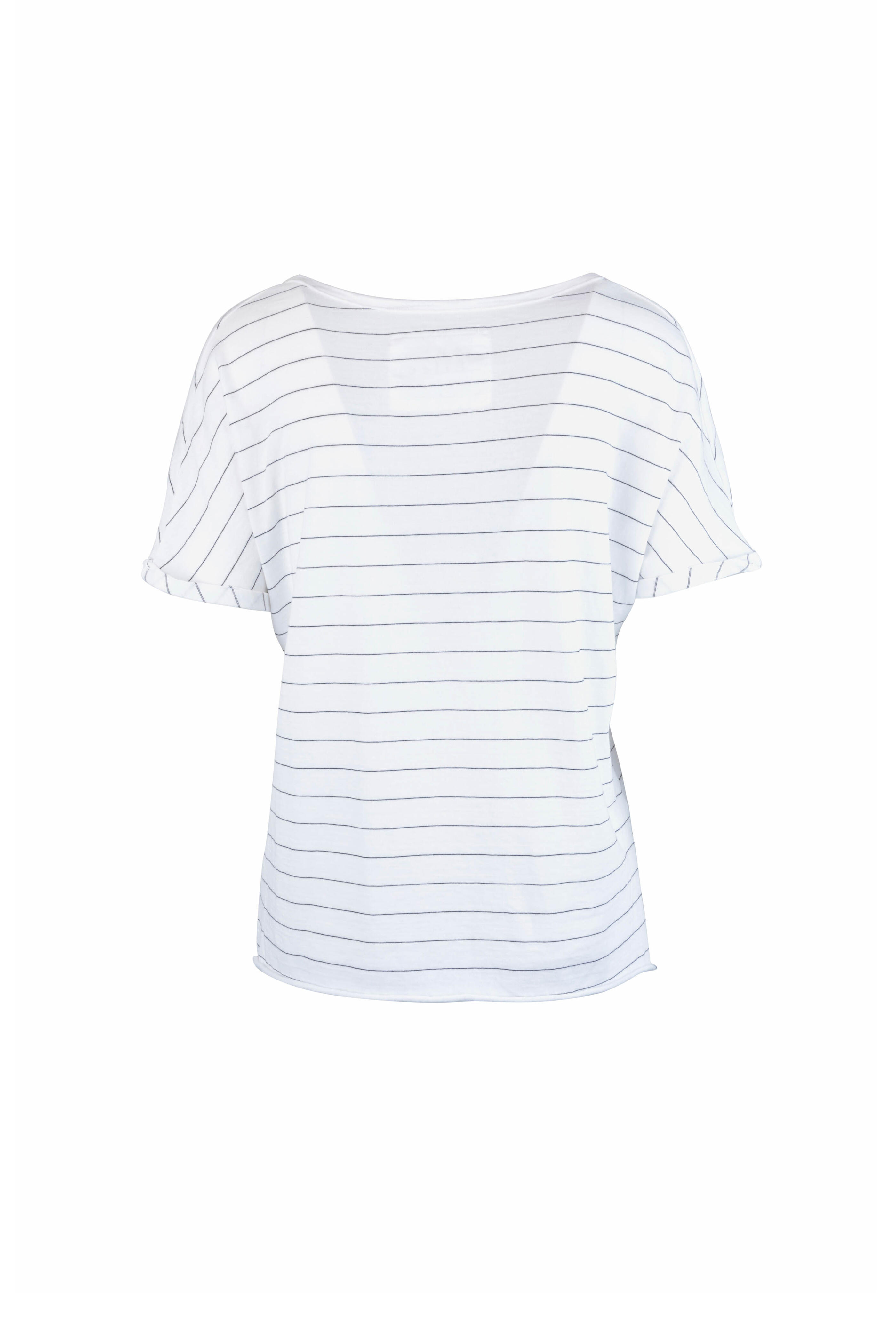 White & Black Striped Deep V-Neck T-Shirt
