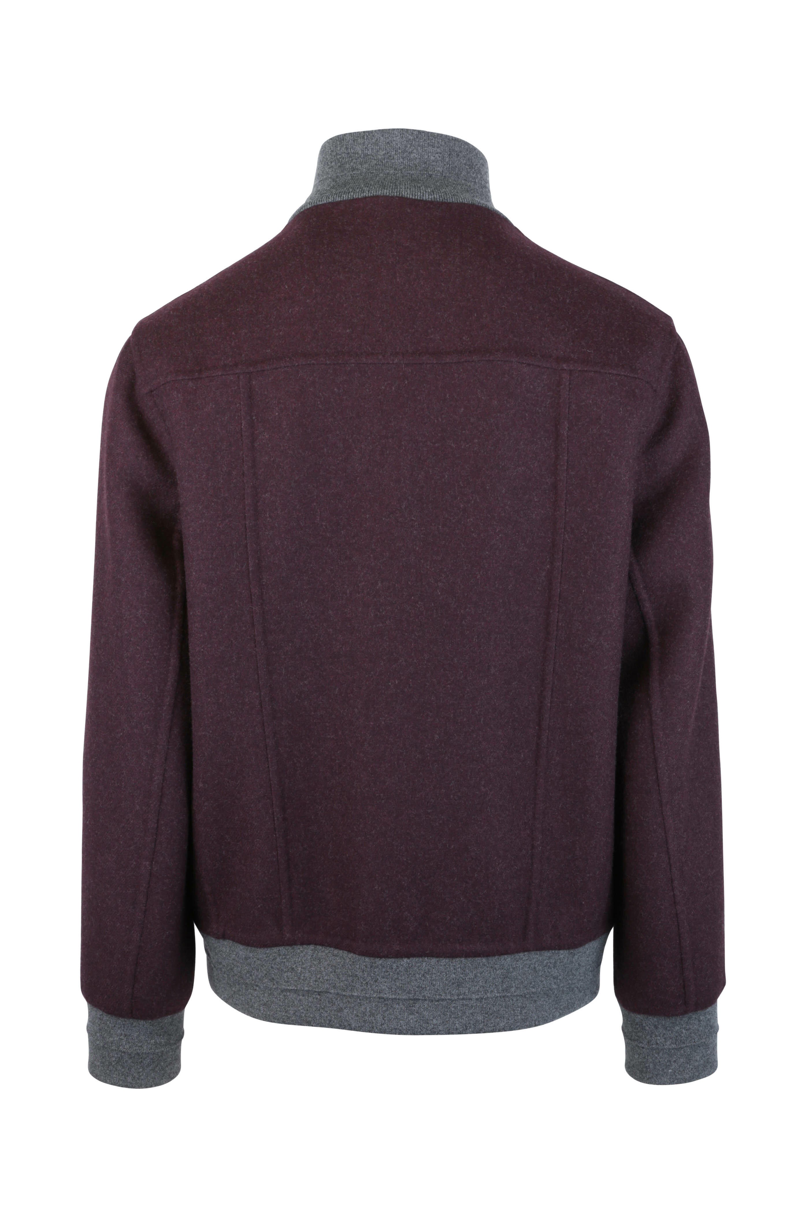 Stand collar with button closure. Front button closure. Lower button flap pockets. Made in Italy. 100% wool. Dry clean.