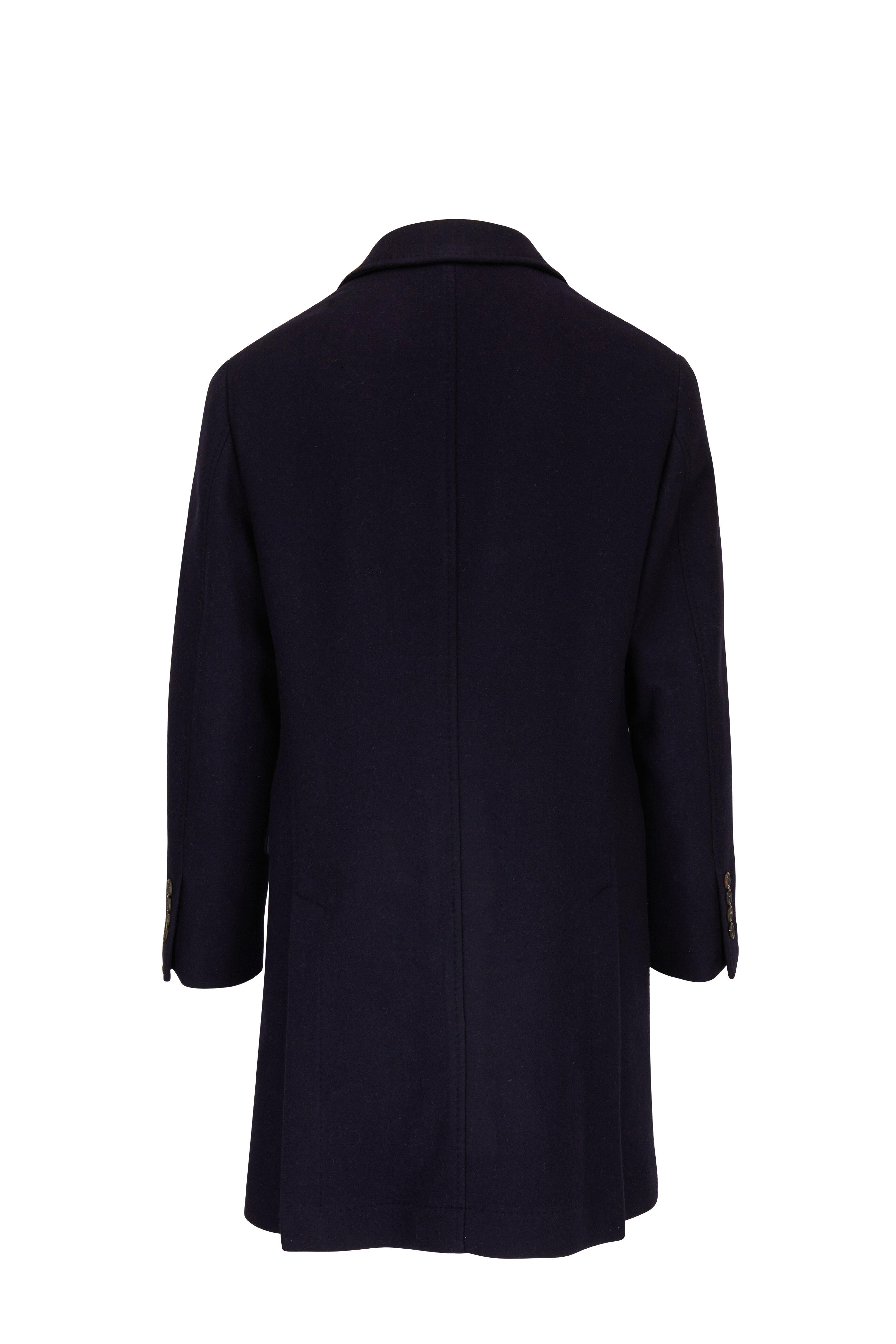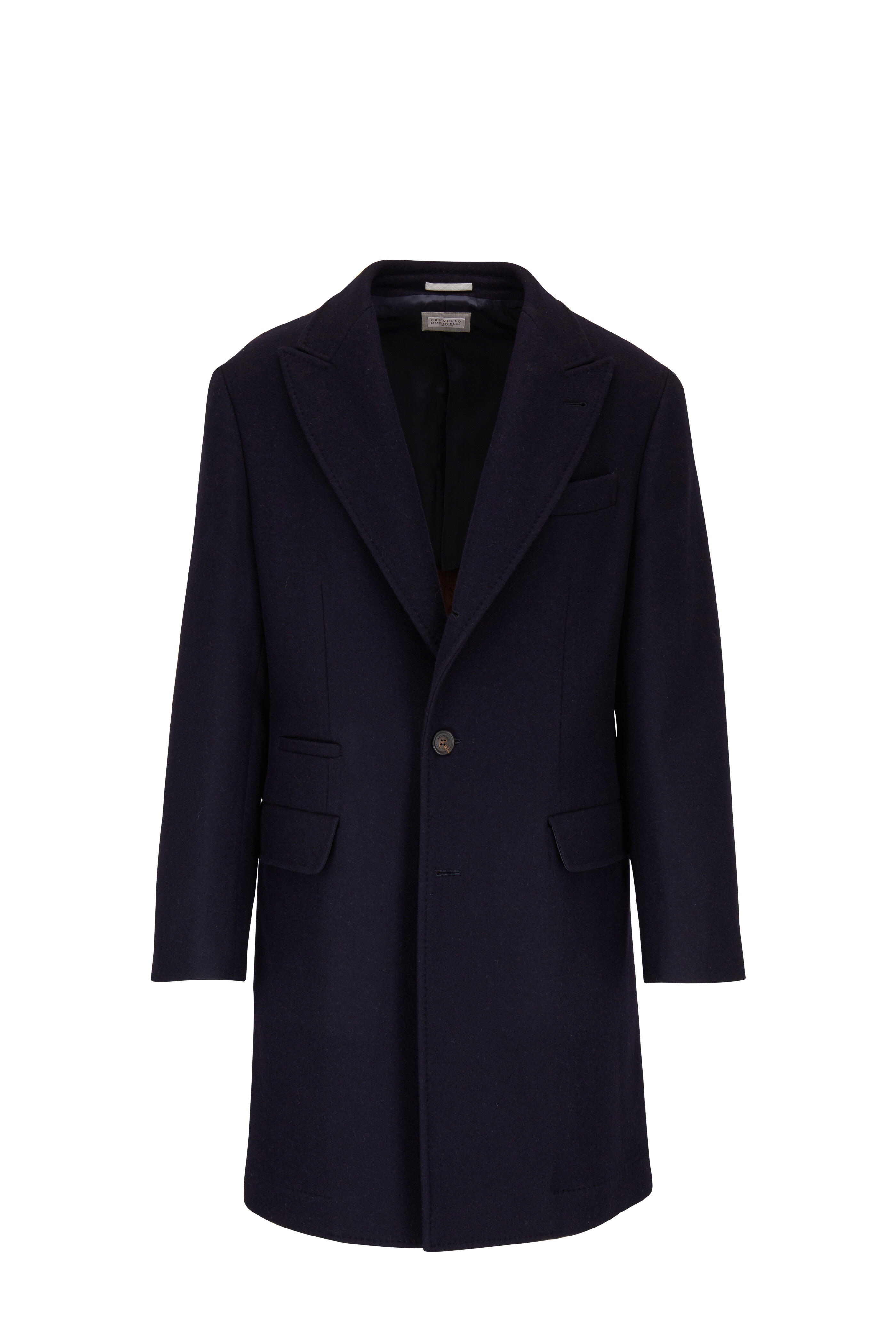 Peak lapels. Three button placket. Lower flap pockets; chest welt pocket. Double vent. Made in Italy. 100% virgin wool. Dry clean.