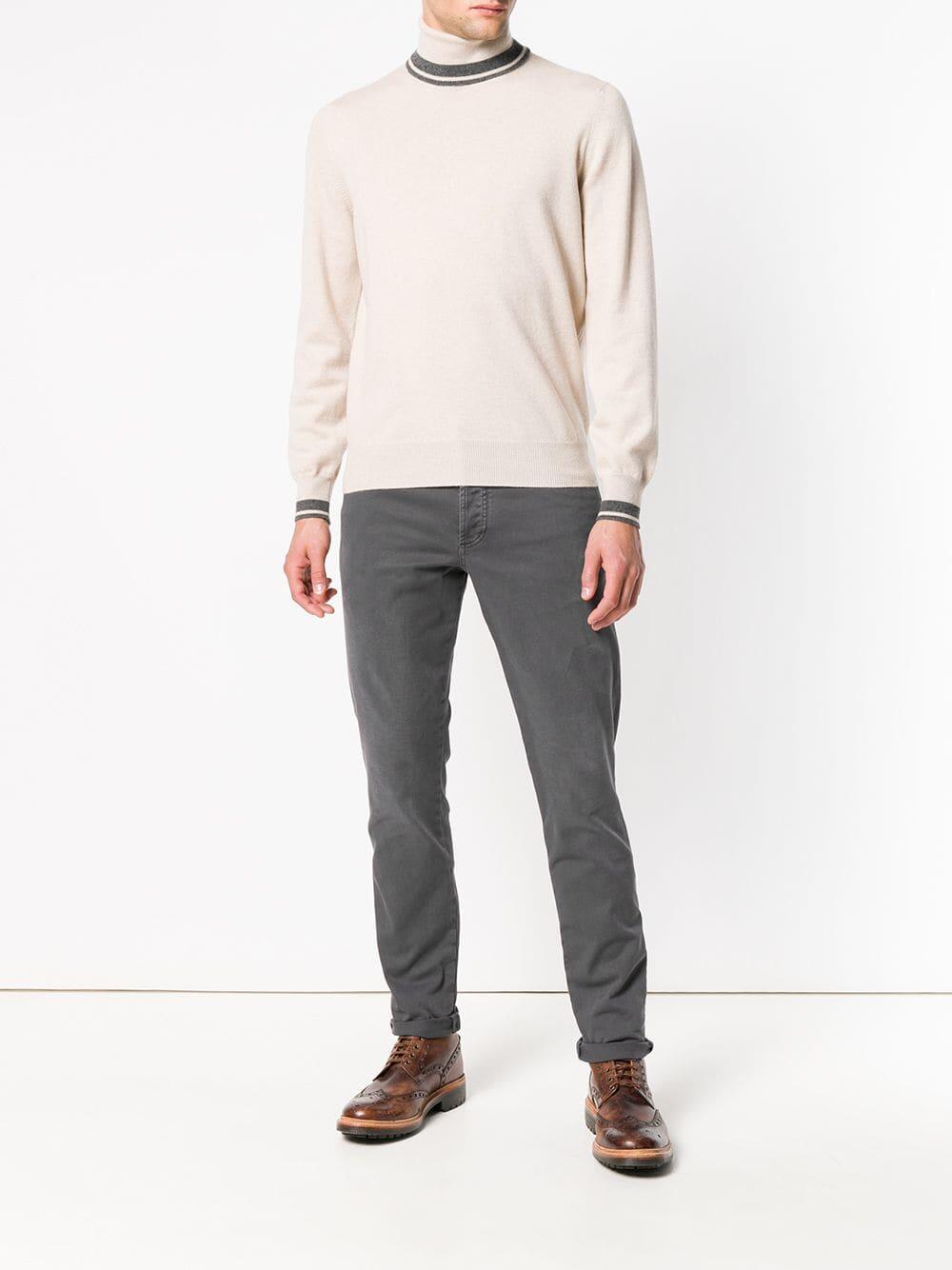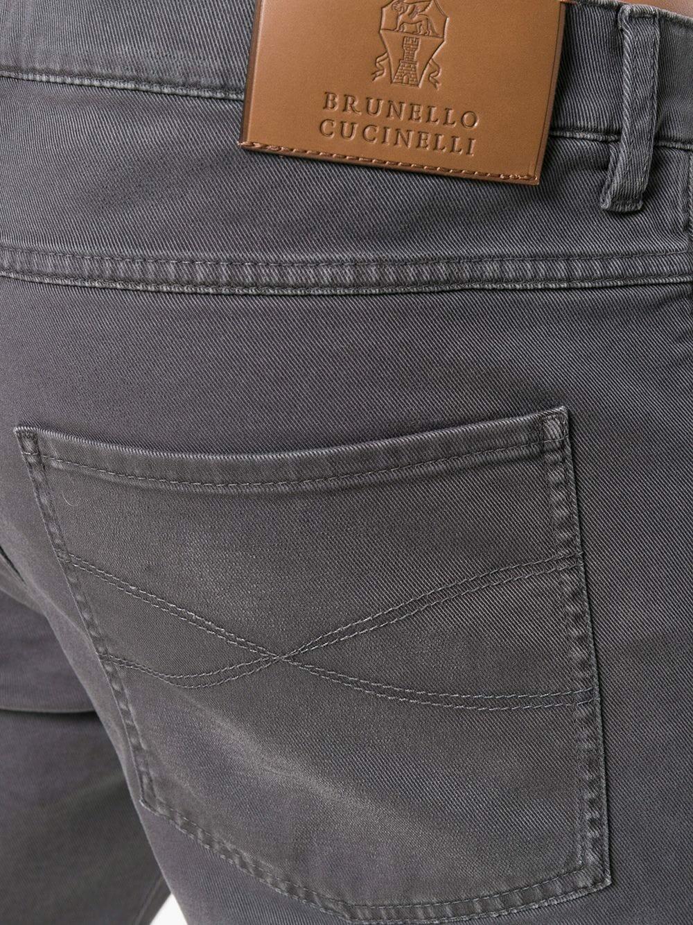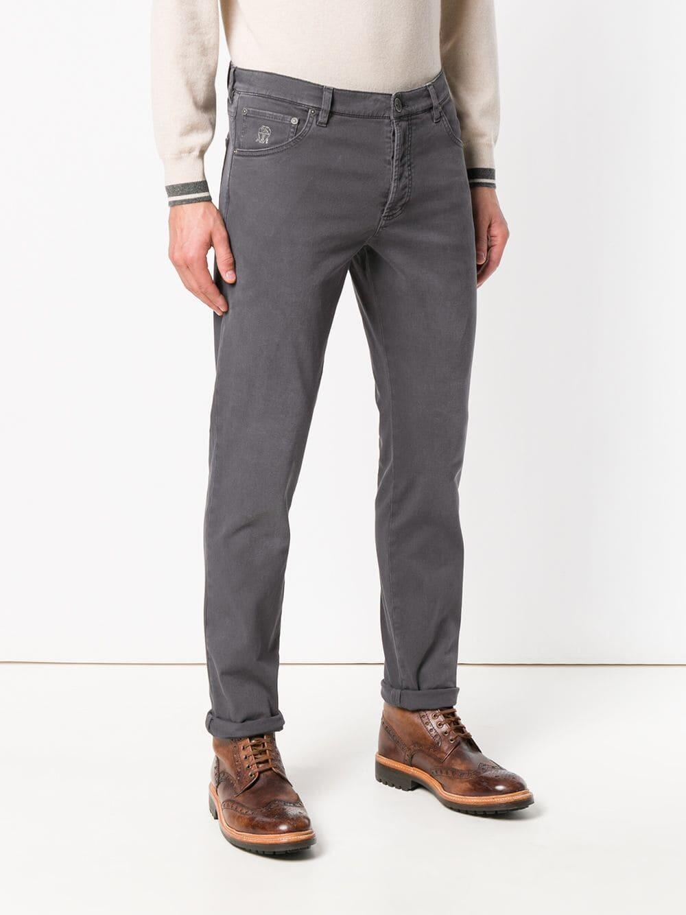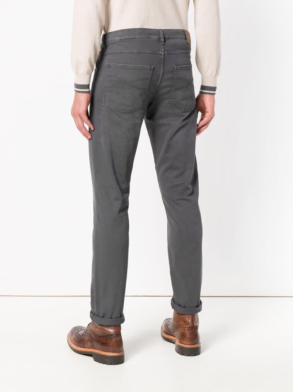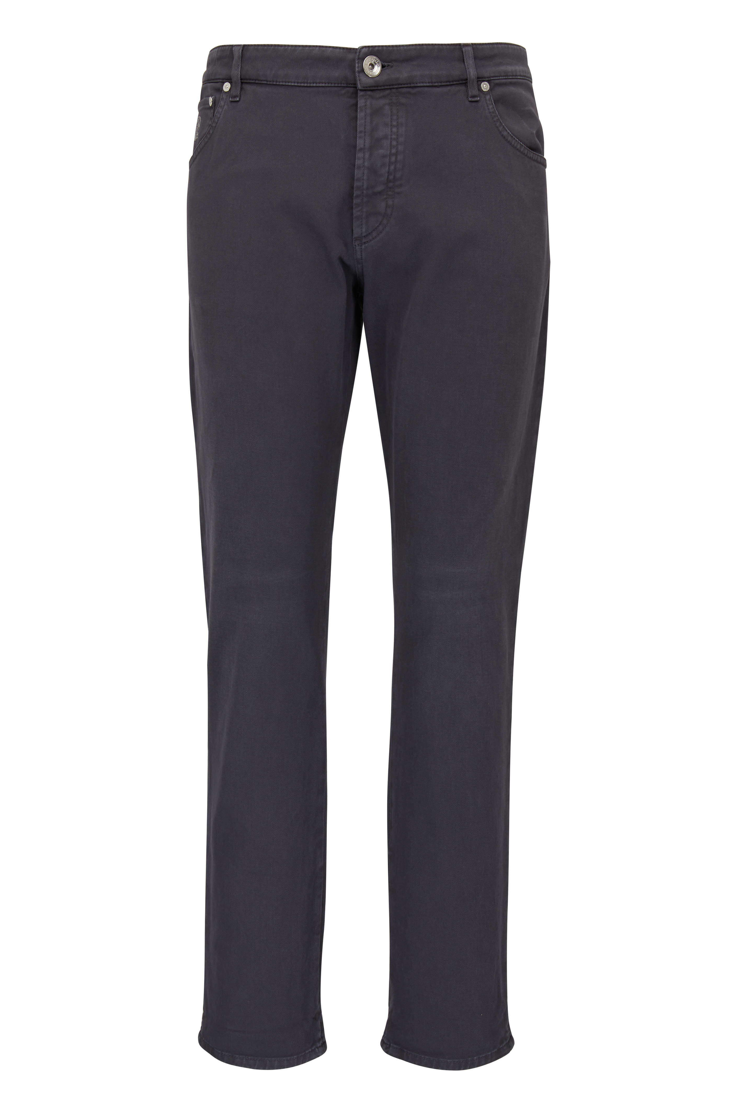 Five pocket styling. Concealed button fly. Tonal stitching. Made in Italy. Skinny fit. 33" inseam. 98% cotton, 2% elastane. Machine wash.
