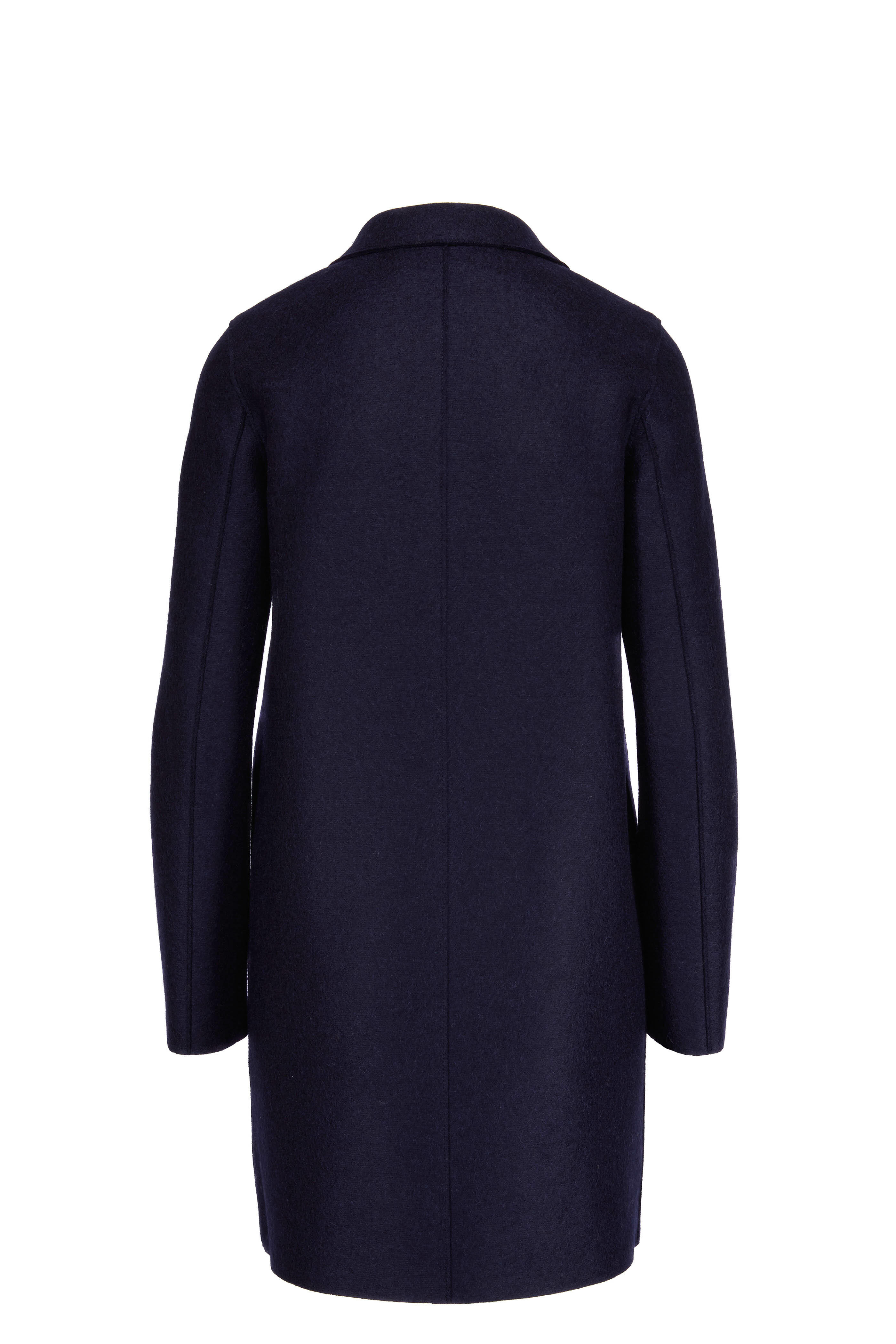 Notched lapels. Optional stand up collar. Three button closure. Front welt pockets. Made in Italy. Shoulder to hem: 35". 100% virgin wool. Dry clean.