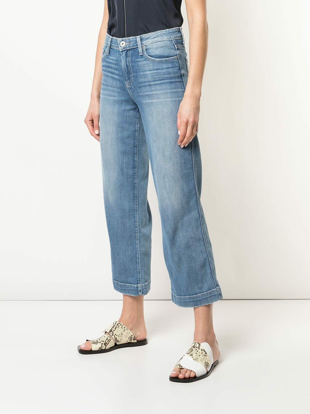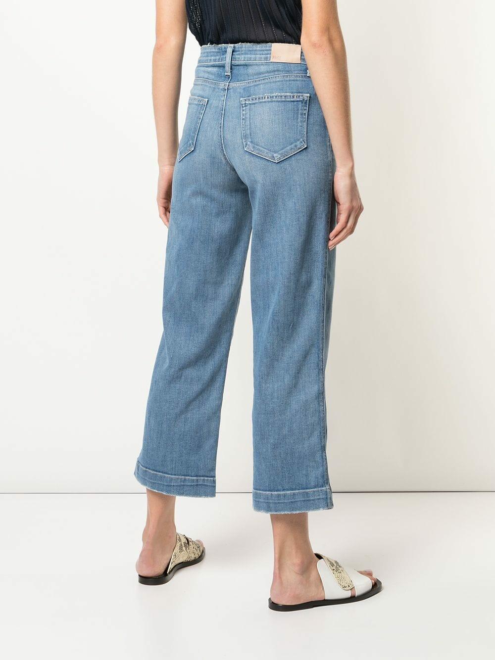 Five pocket styling. Distressed details. Contrast stitching. Made in the USA. Straight leg culotte. Inseam: 27". Leg opening: 18". Rise: 11". 98% cotton, 2% elastane. Machine wash.