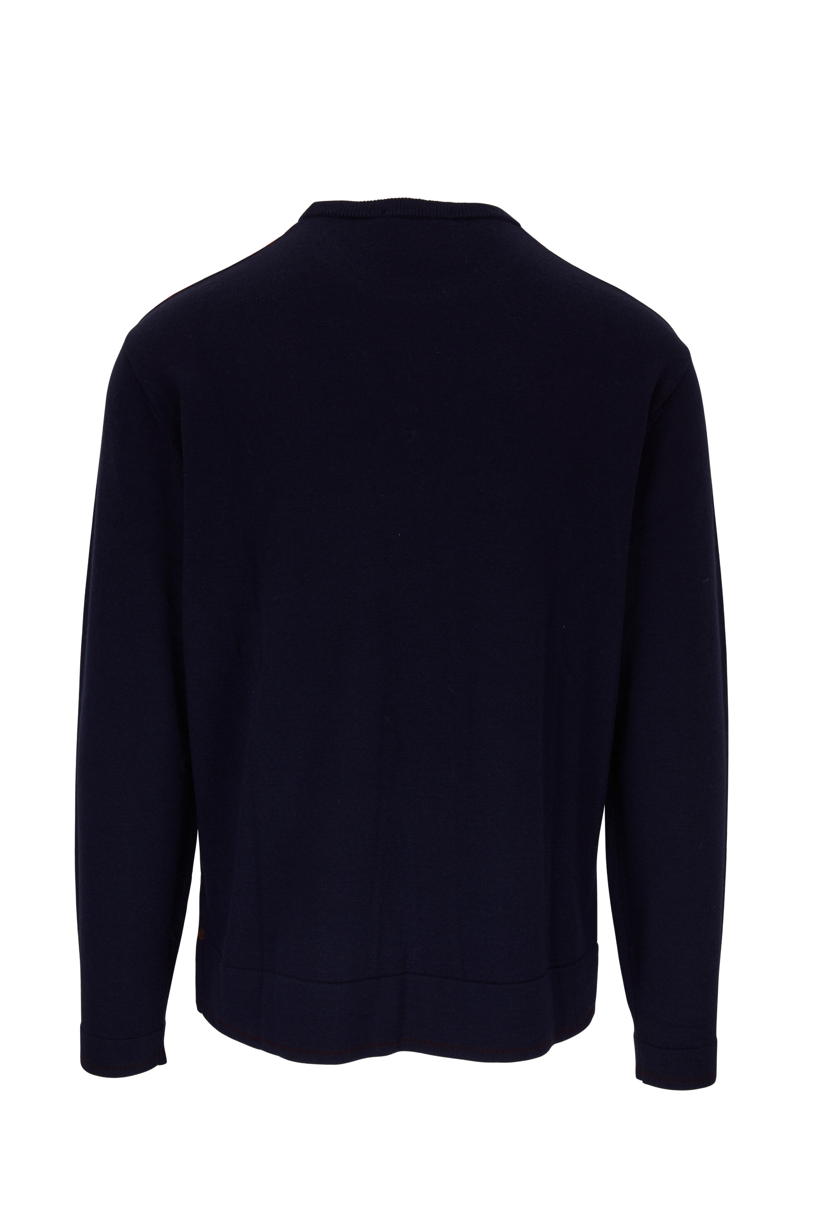 Crewneck. Ribbed trim. Imported. 100% wool. Hand wash.