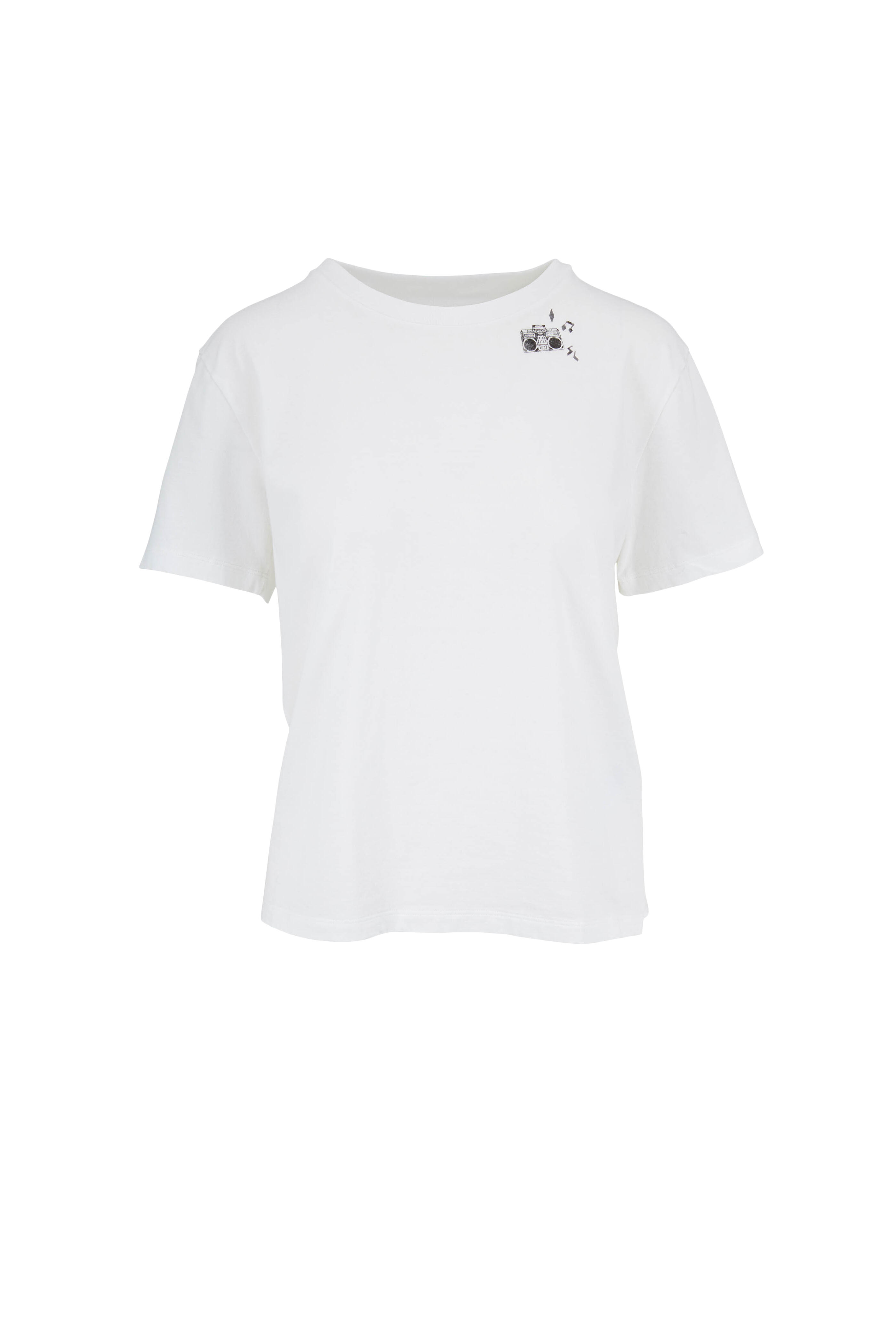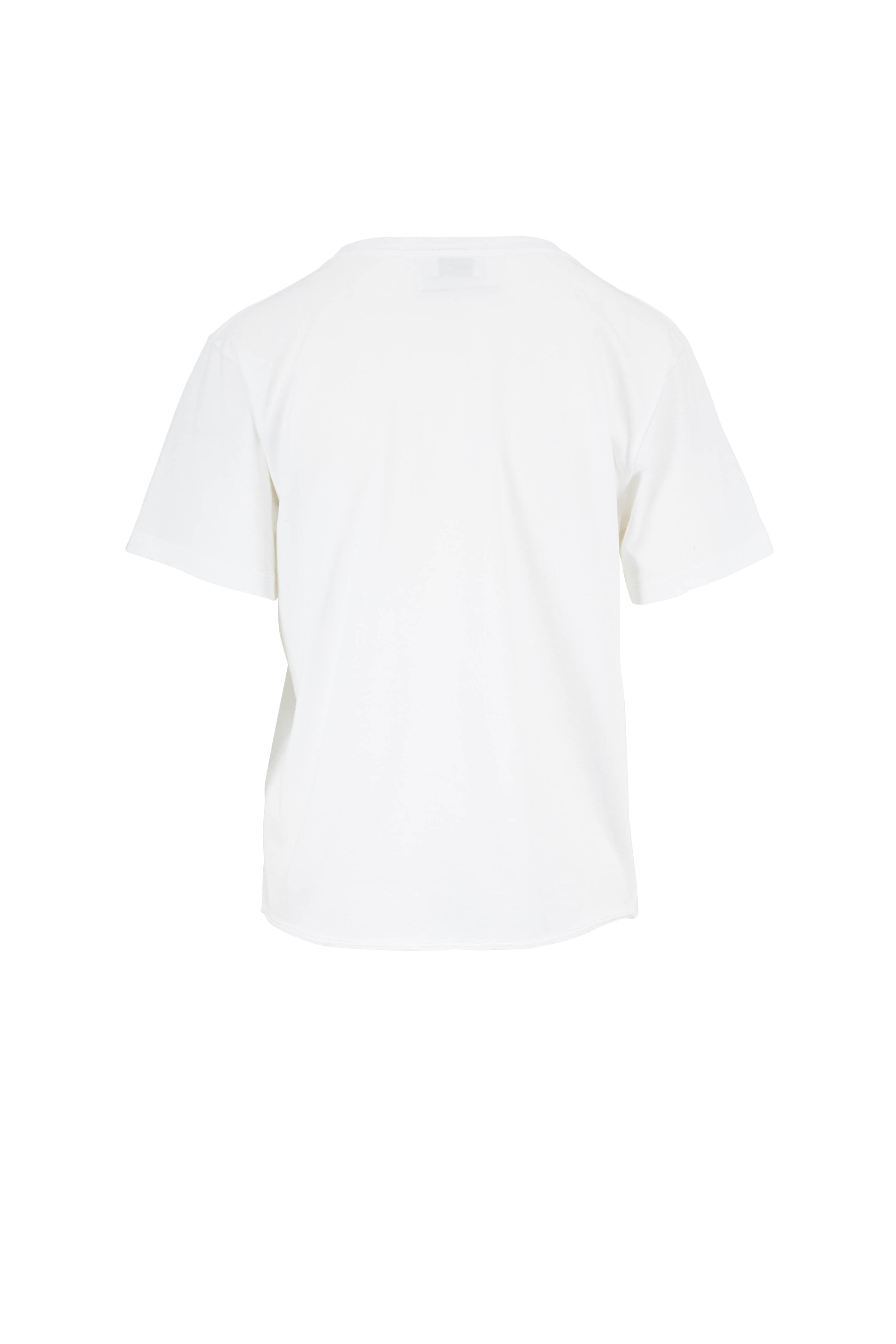 Round neckline. Rolled back hem. Made in Italy. 100% cotton. Machine wash.