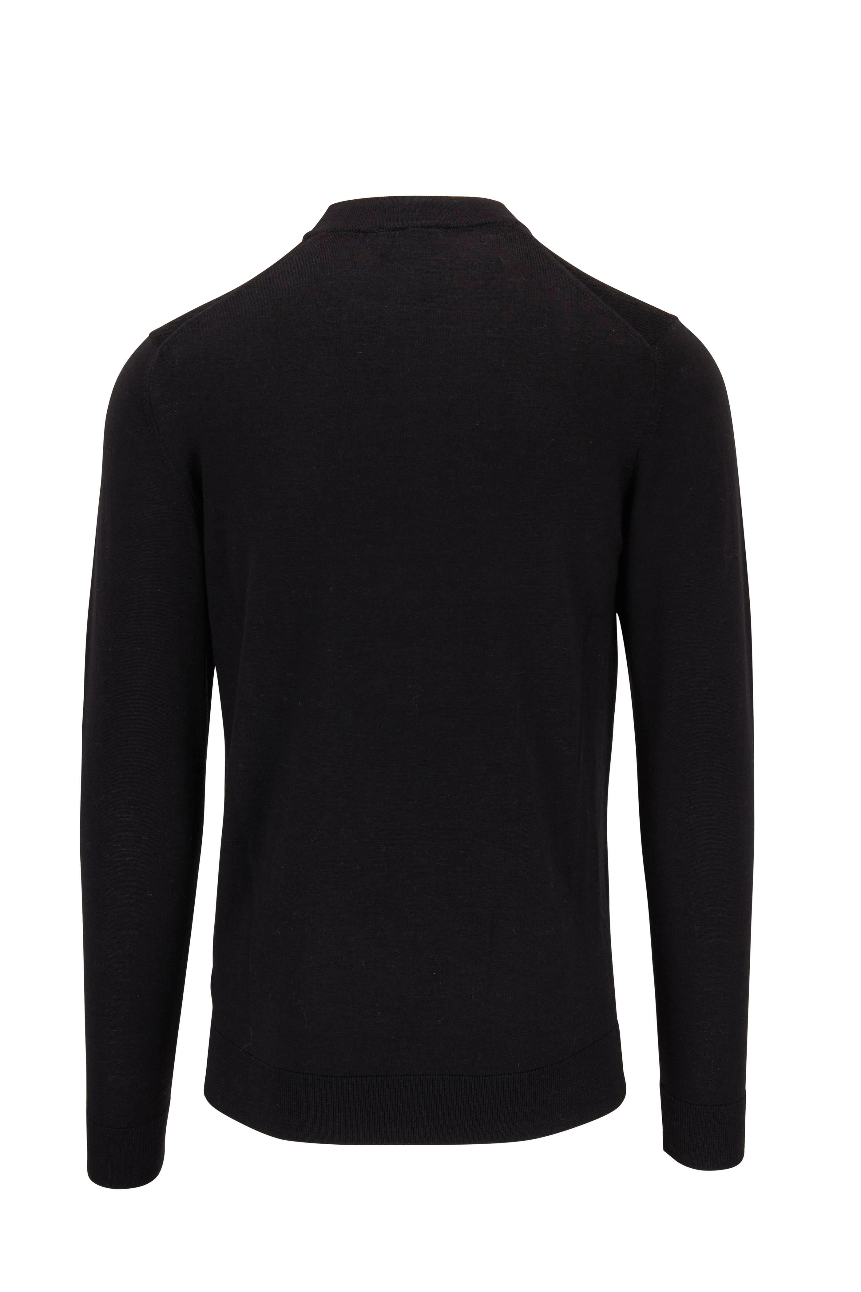 • Sunspel - Black Fine Merino Wool Mock Neck Sweater