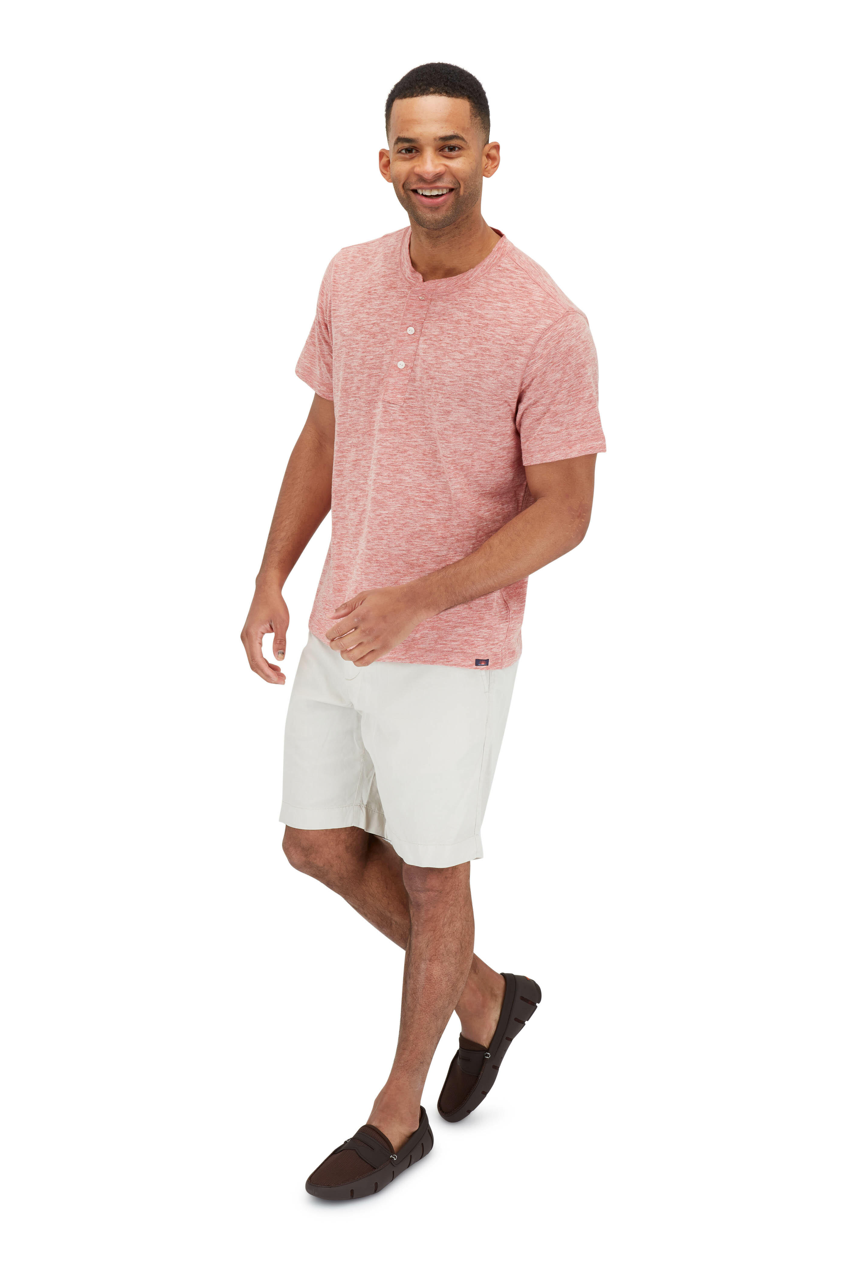 • Faherty Brand - Heathered Faded Red Short Sleeve Henley