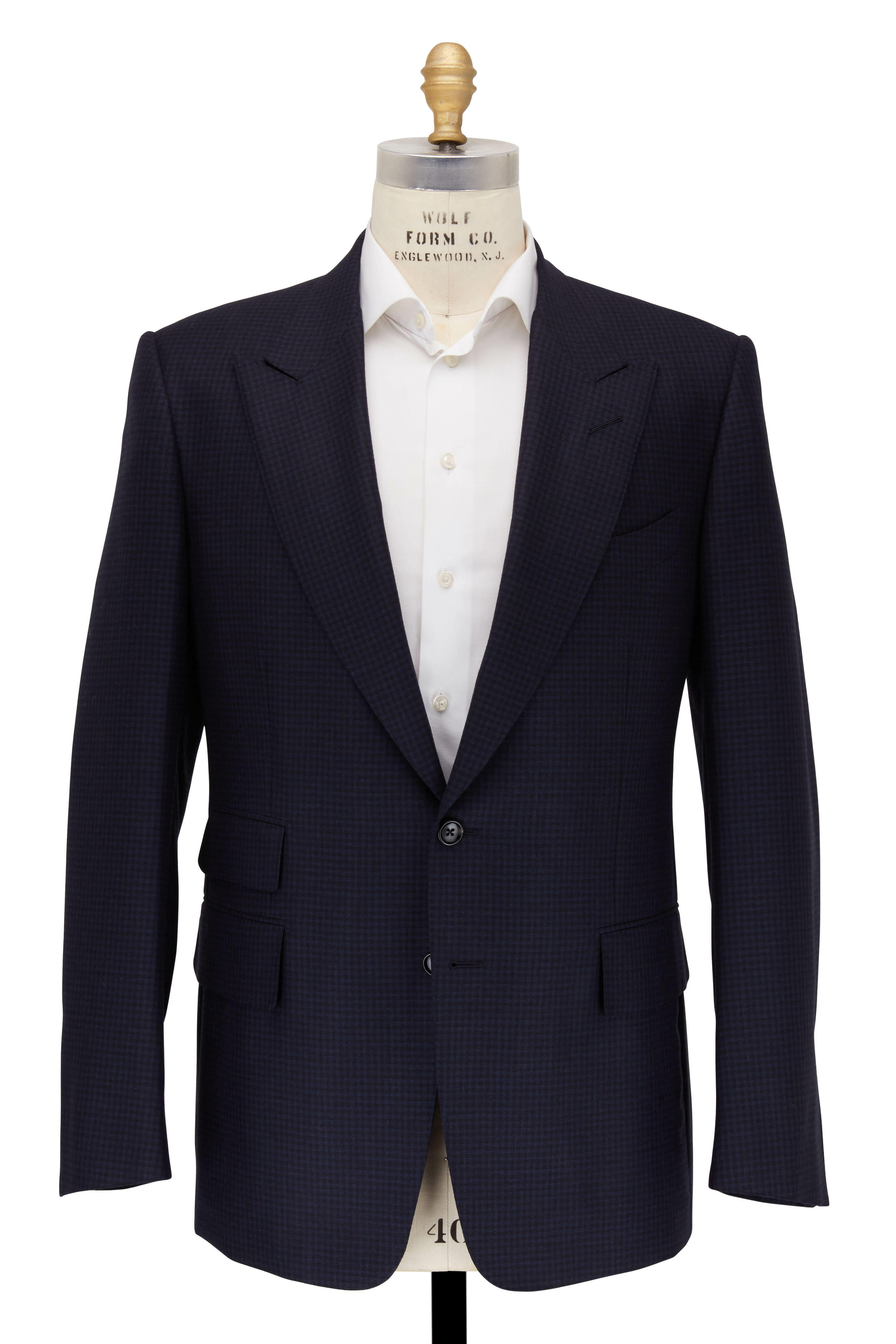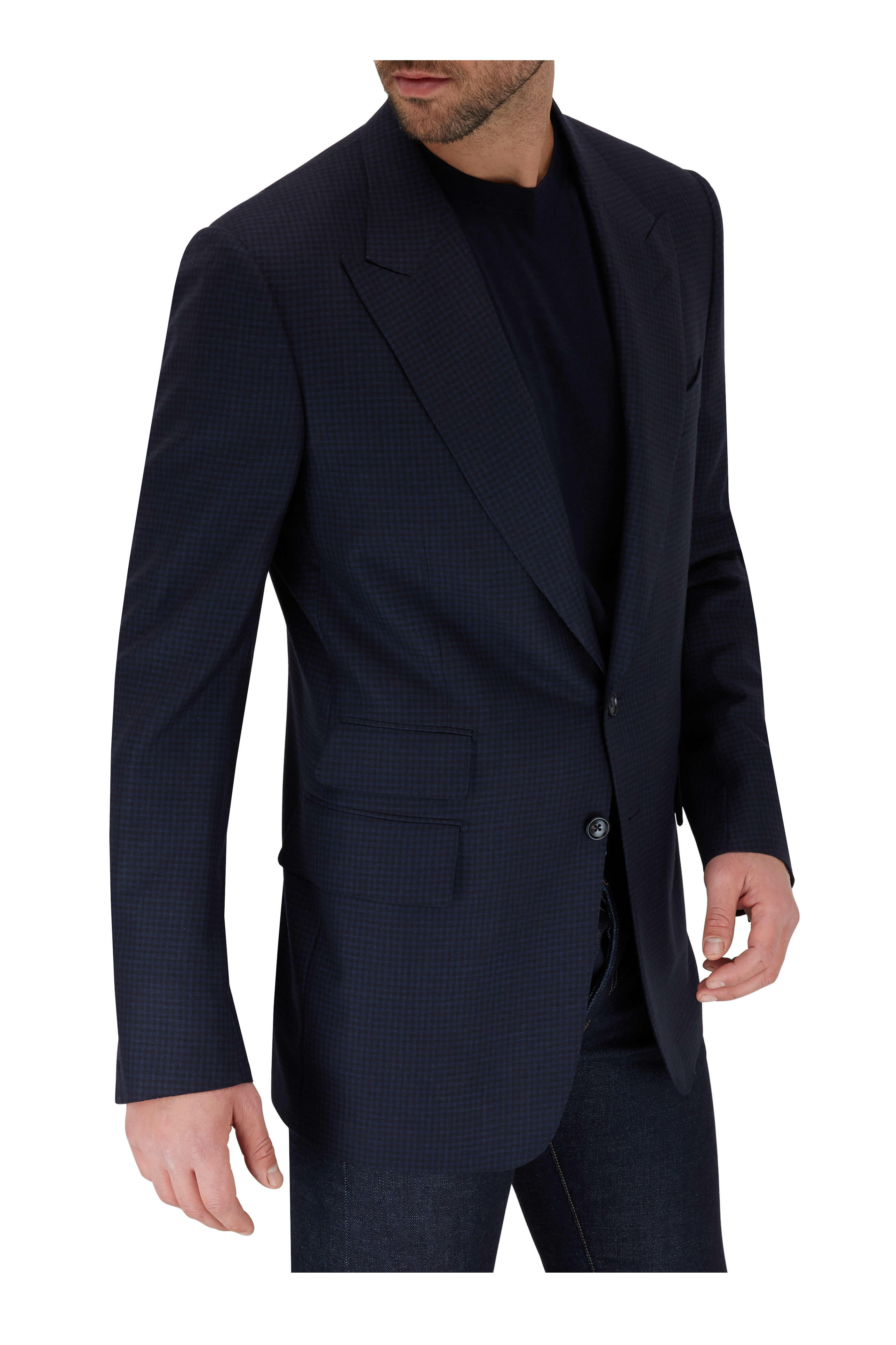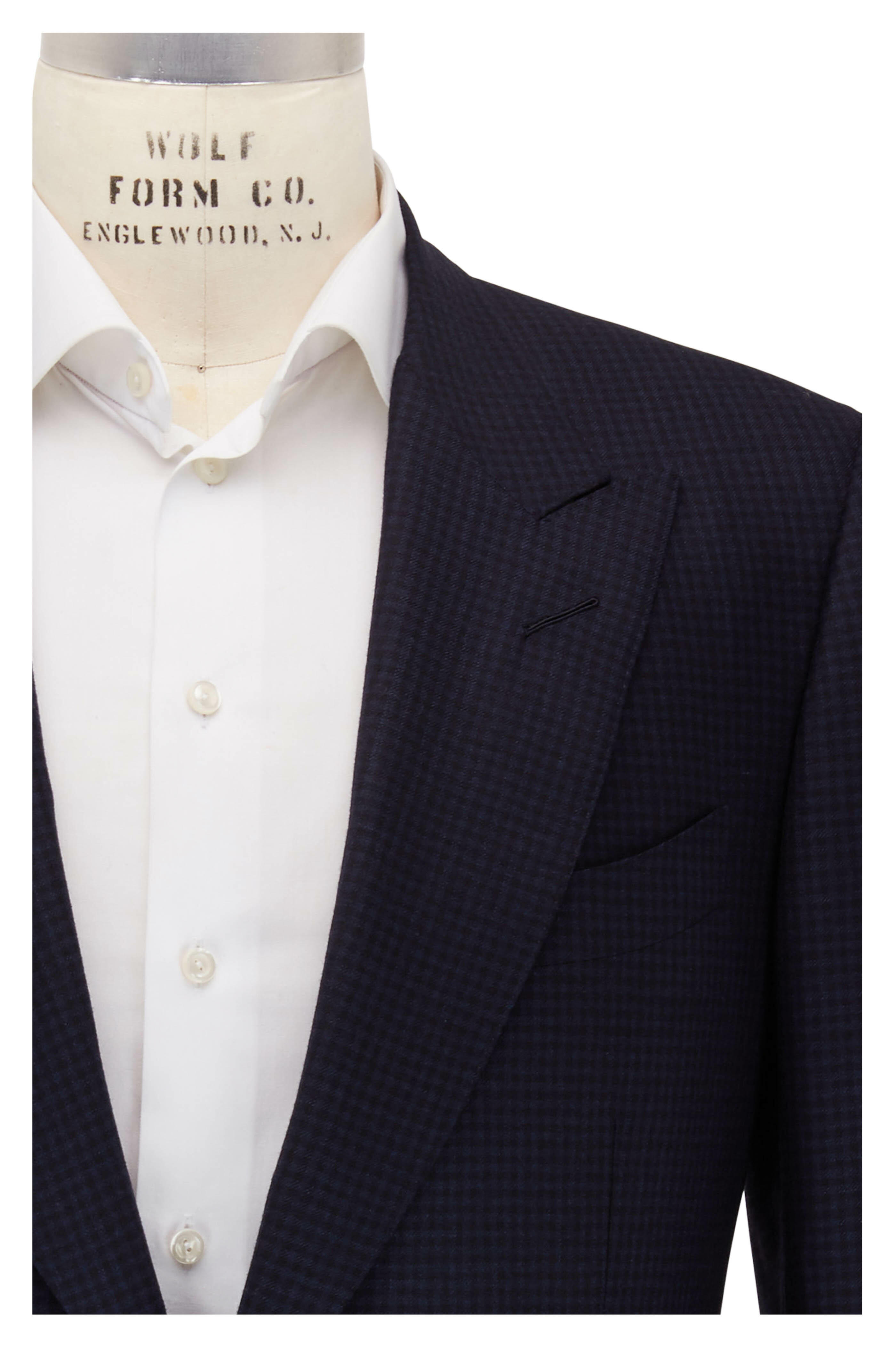 Shelton Navy Blue Gingham Wool & Silk Sportcoat