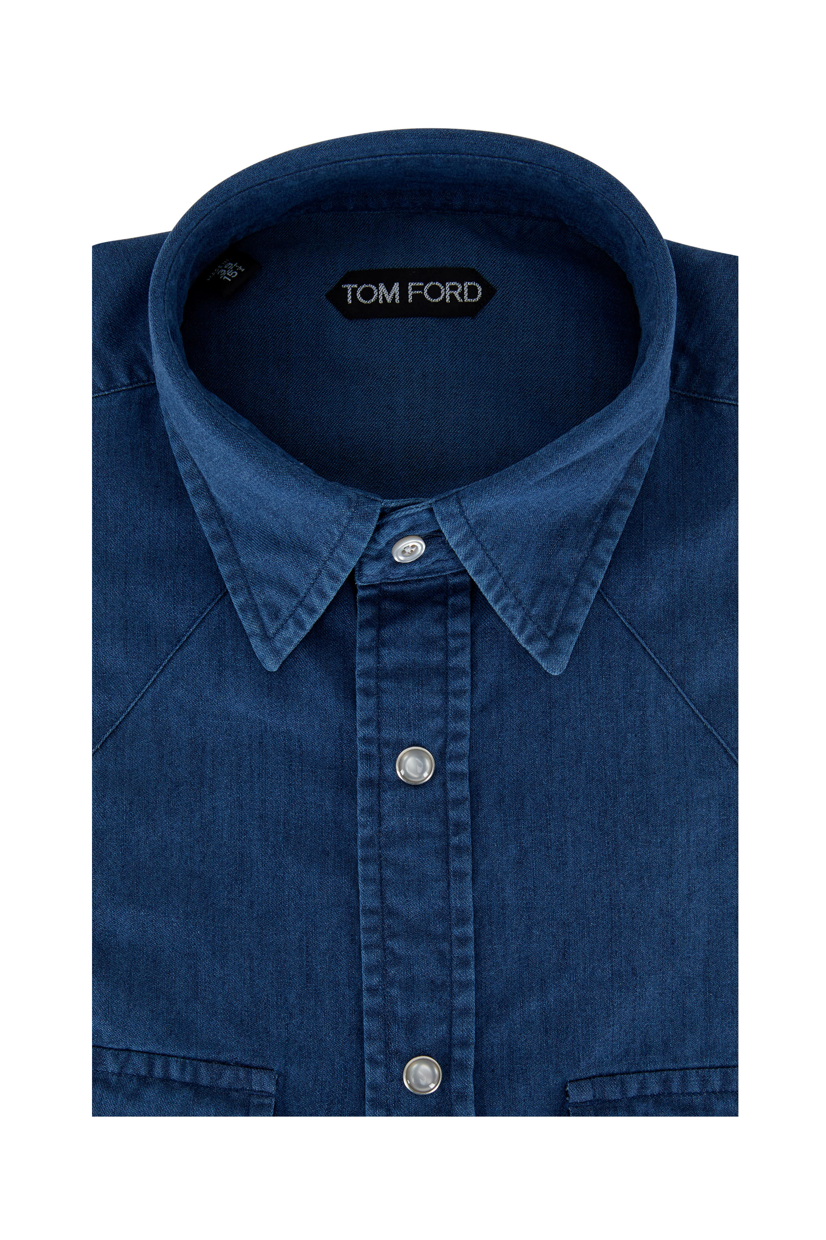 Spread collar. Double bottom chest pockets. Triple button straight cuffs. Imported. 100% cotton. Dry clean.