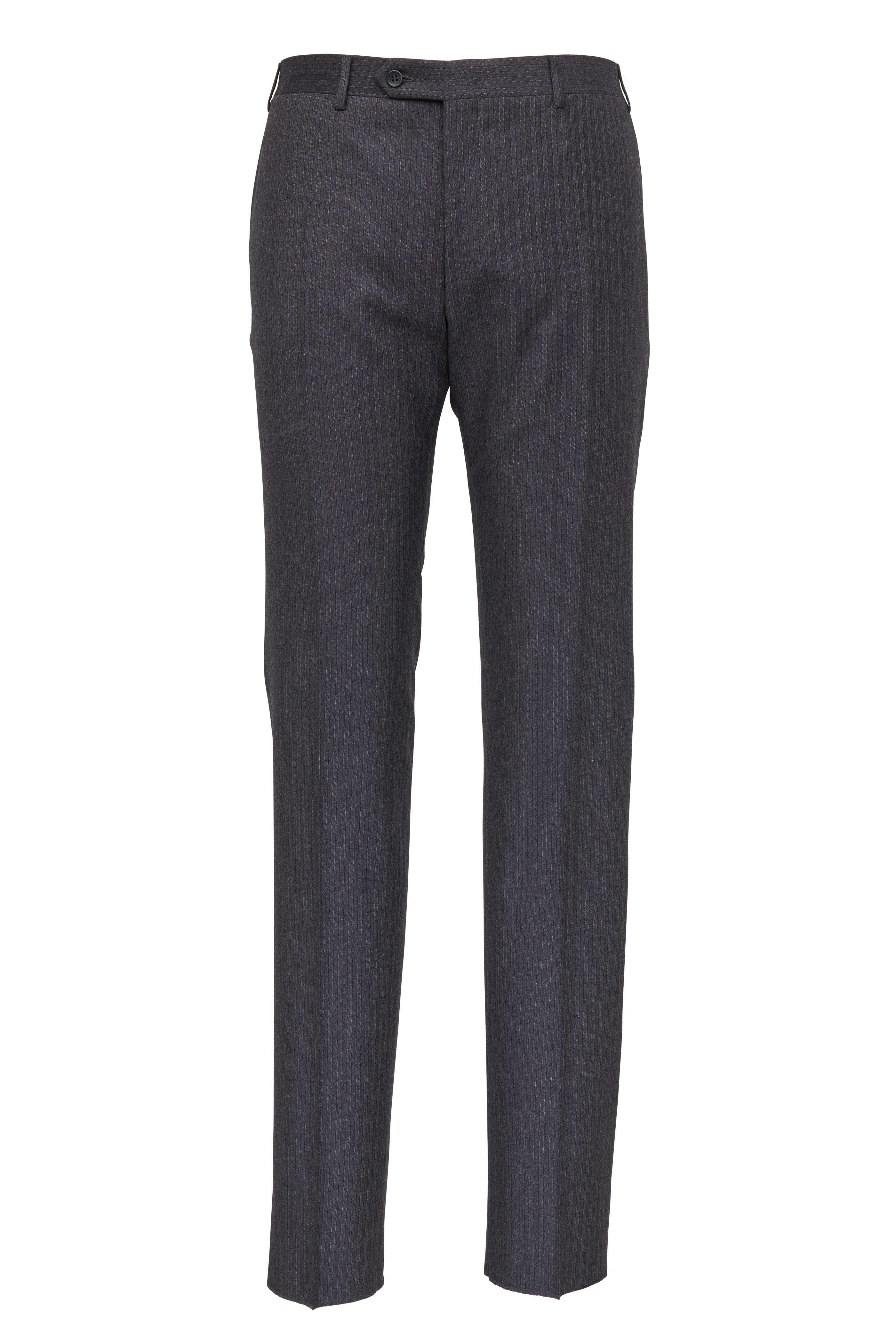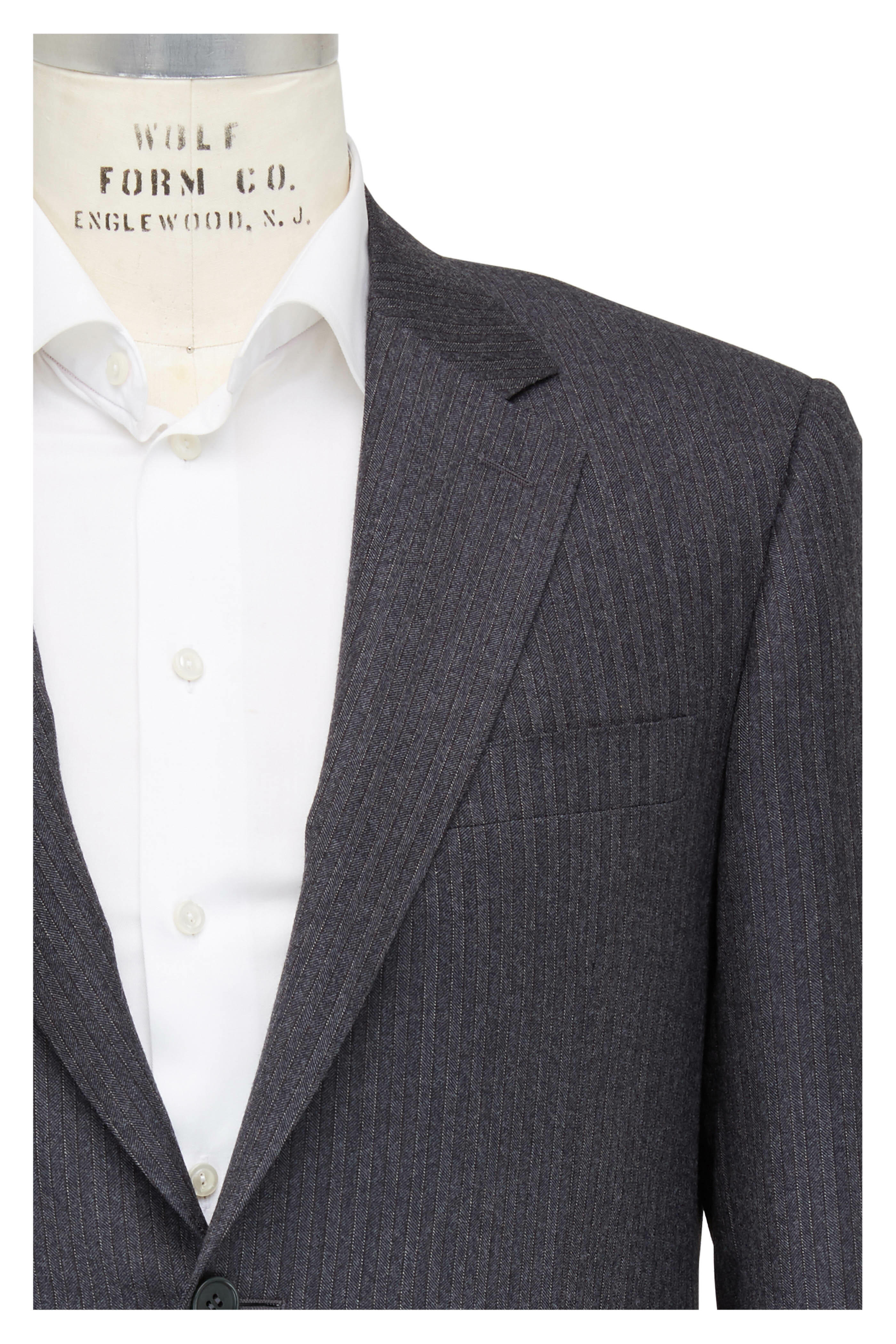 Charcoal Herringbone Striped Wool Suit
