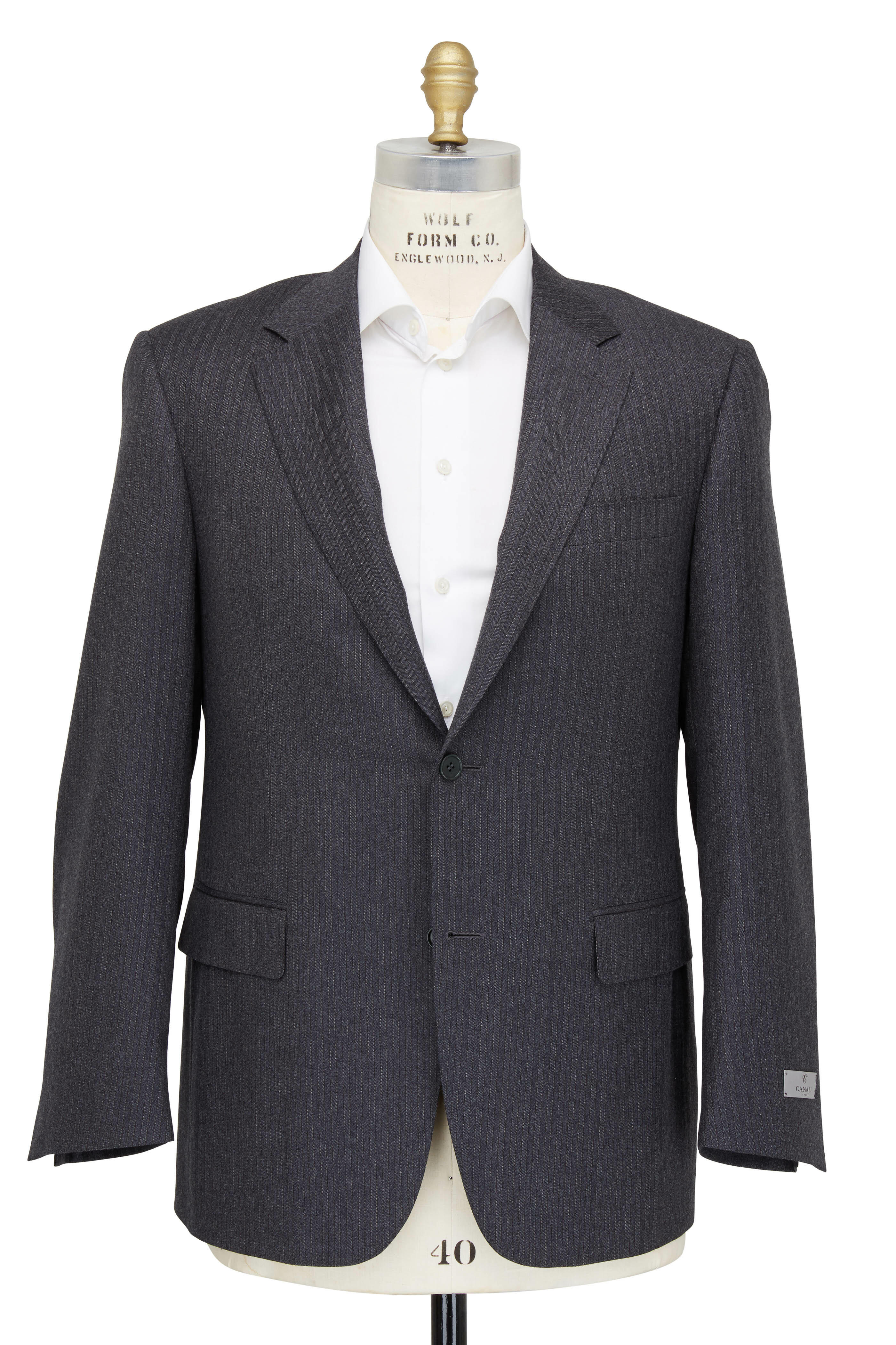 Made in Italy. Jacket: Fully lined. Notched lapels. Two button closure. Chest welt pocket, lower flap pockets. Double vent. Pants: Side slip pockets, back button besom pockets, ticket pocket. Unfinished hem. 100% wool. Dry clean.