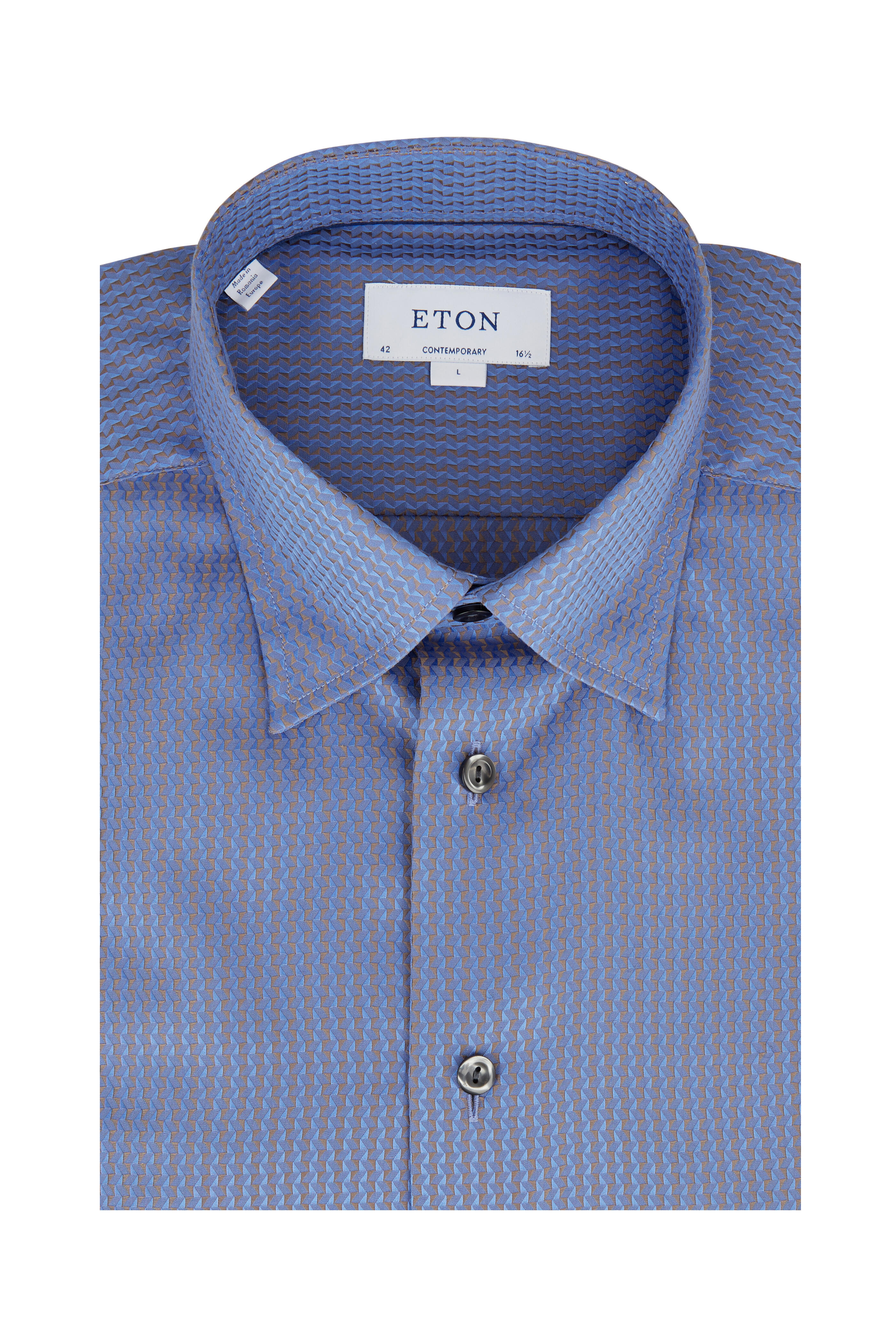 Light Blue Geometric Contemporary Fit Dress Shirt