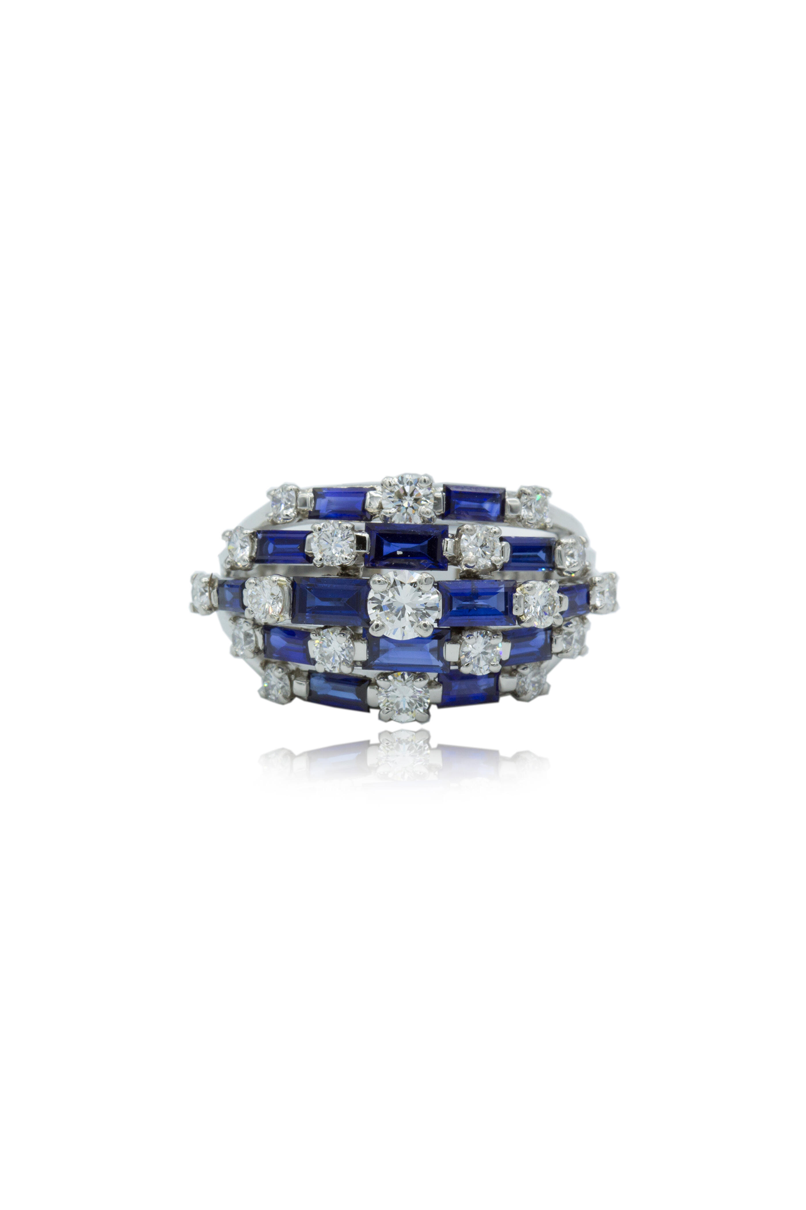 Platinum Diamond Dots & Sapphire Dash Ring