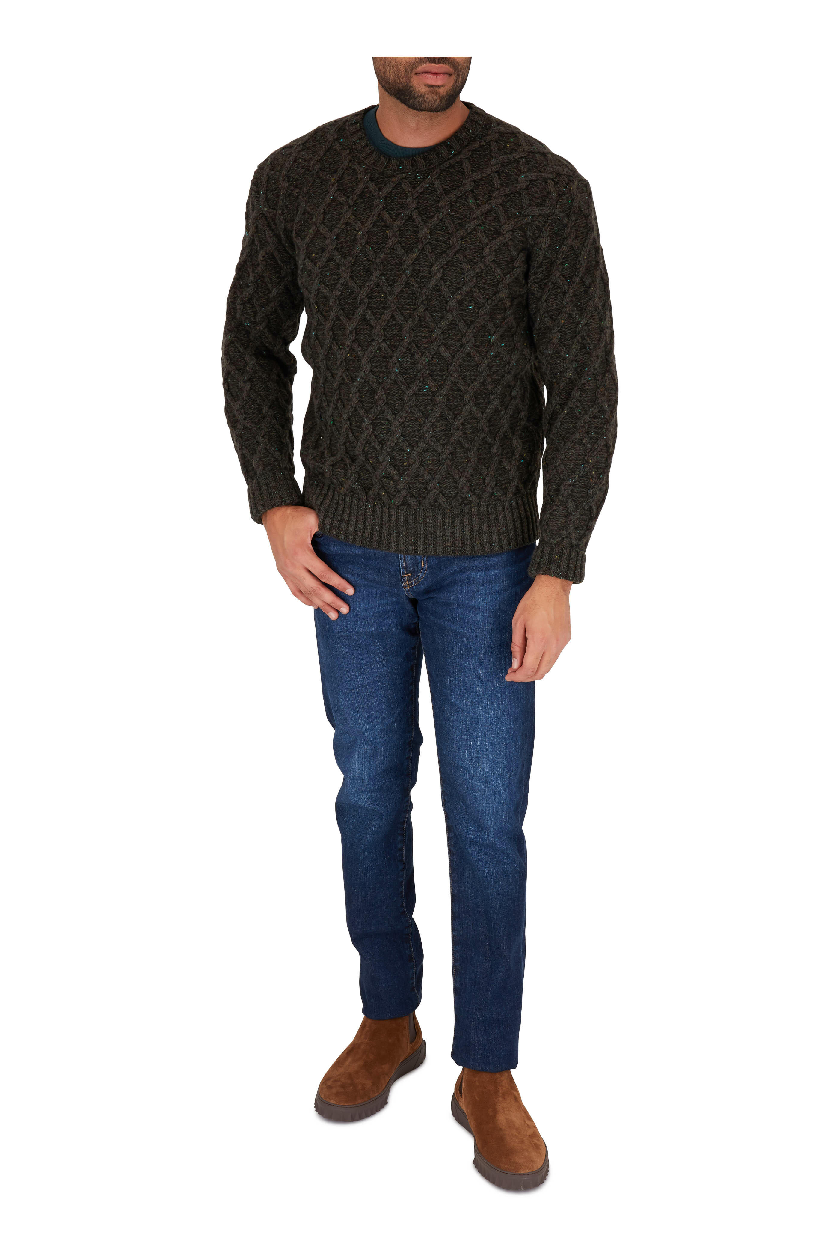 Olive Cable Knit Wool & Cashmere Sweater