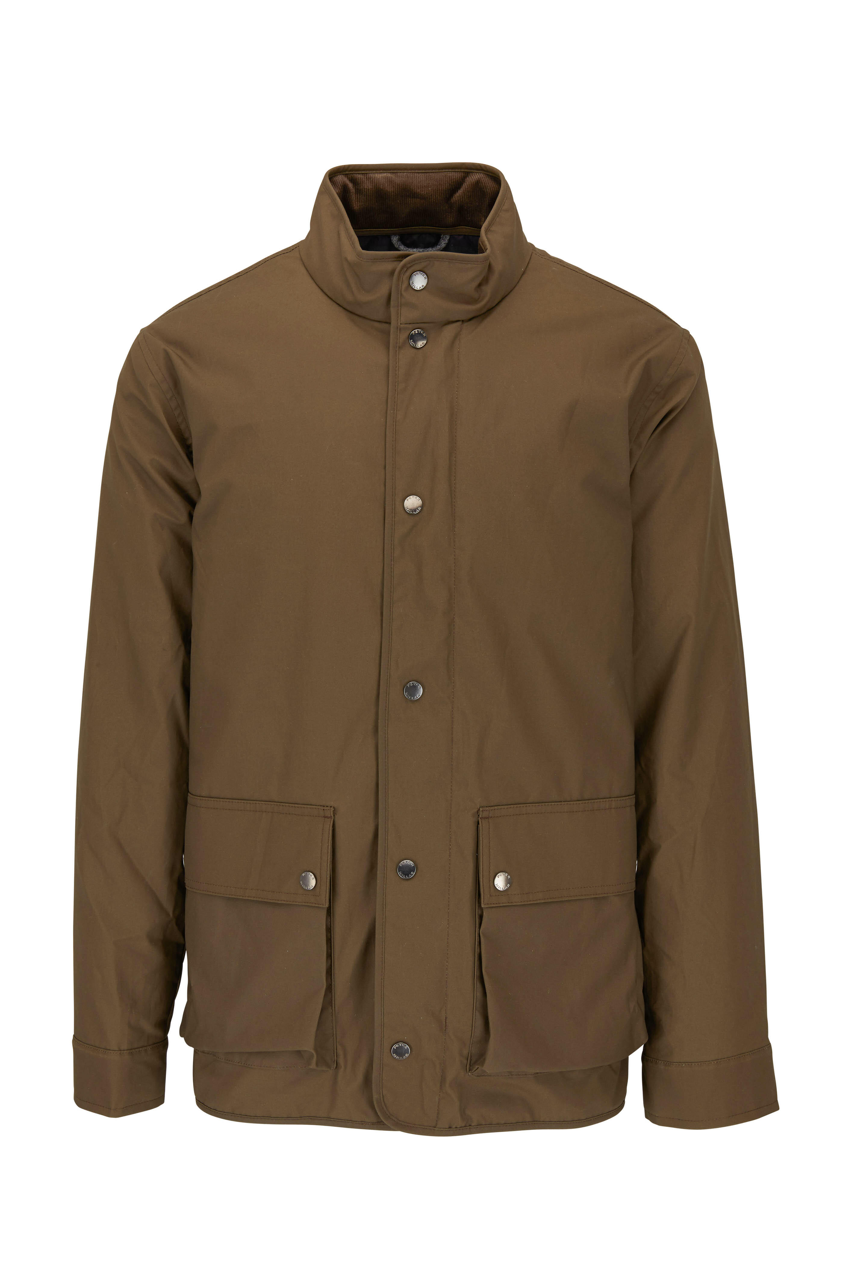 Stand collar. Concealed two-way zip and exposed snap closure. Single button cuffs. Lower snap flap pockets. Imported. 100% cotton; fully lined. Machine wash.