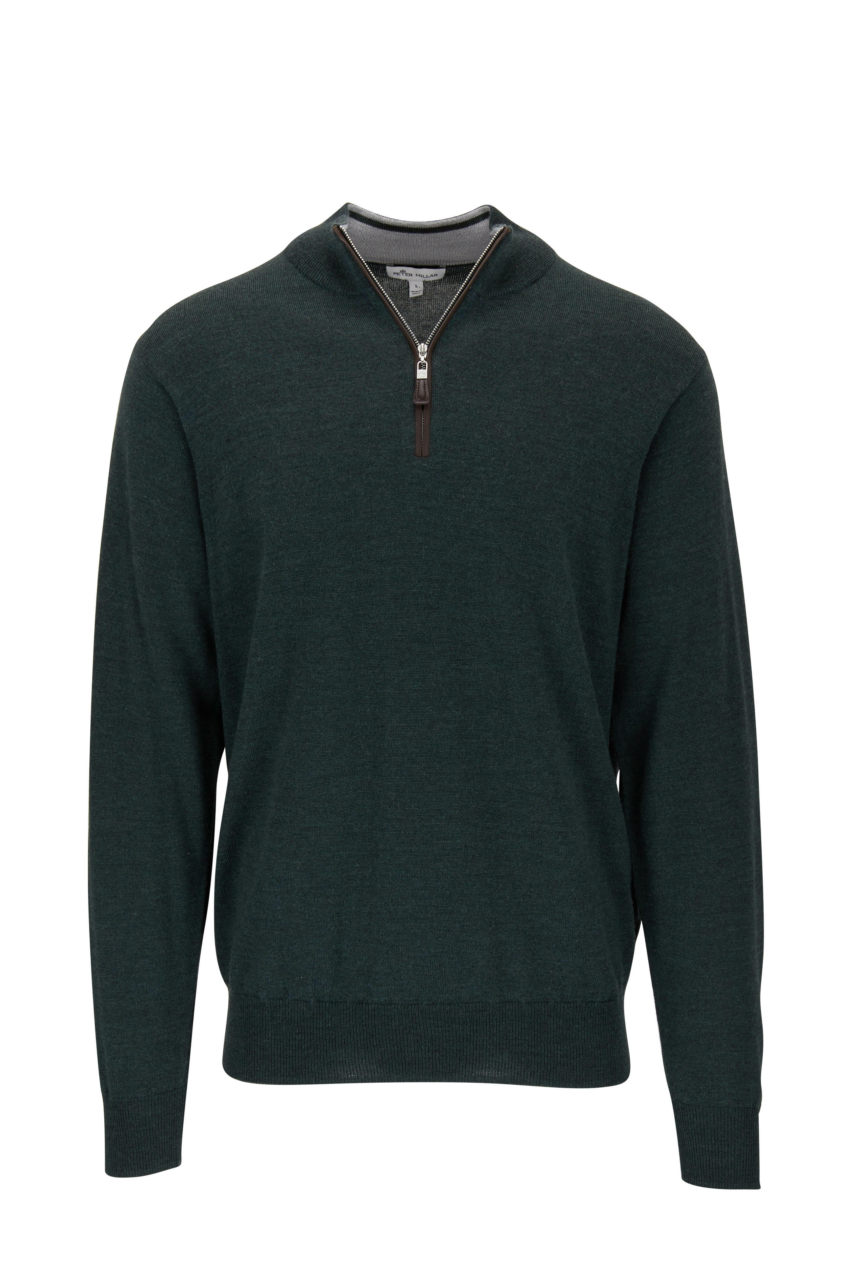 Hunter Green Leather Trim Quarter-Zip Pullover