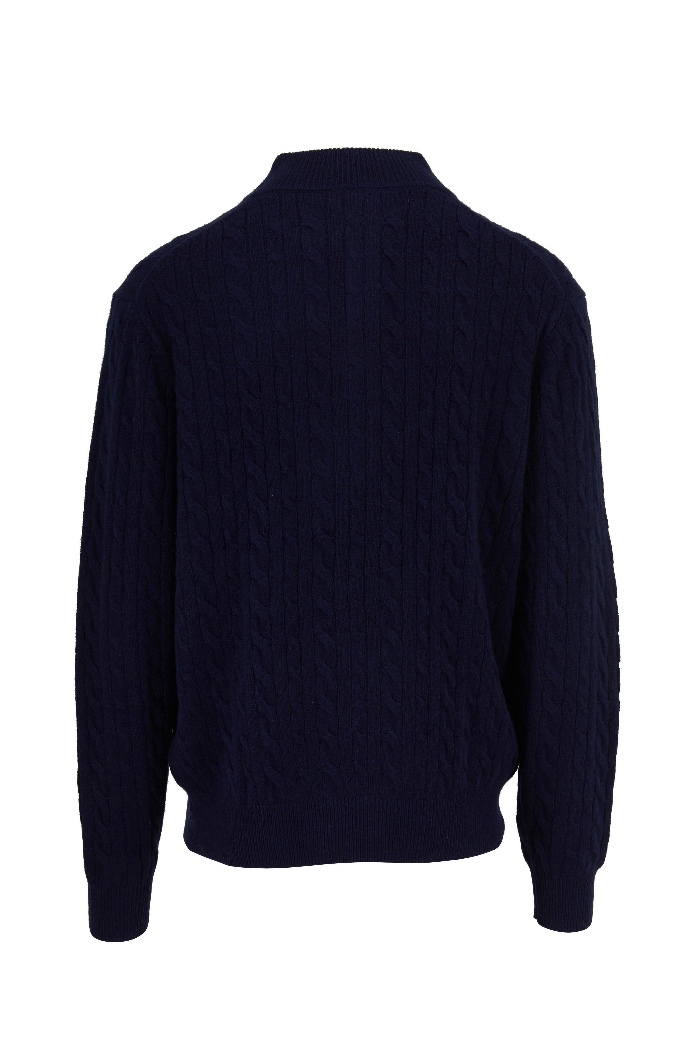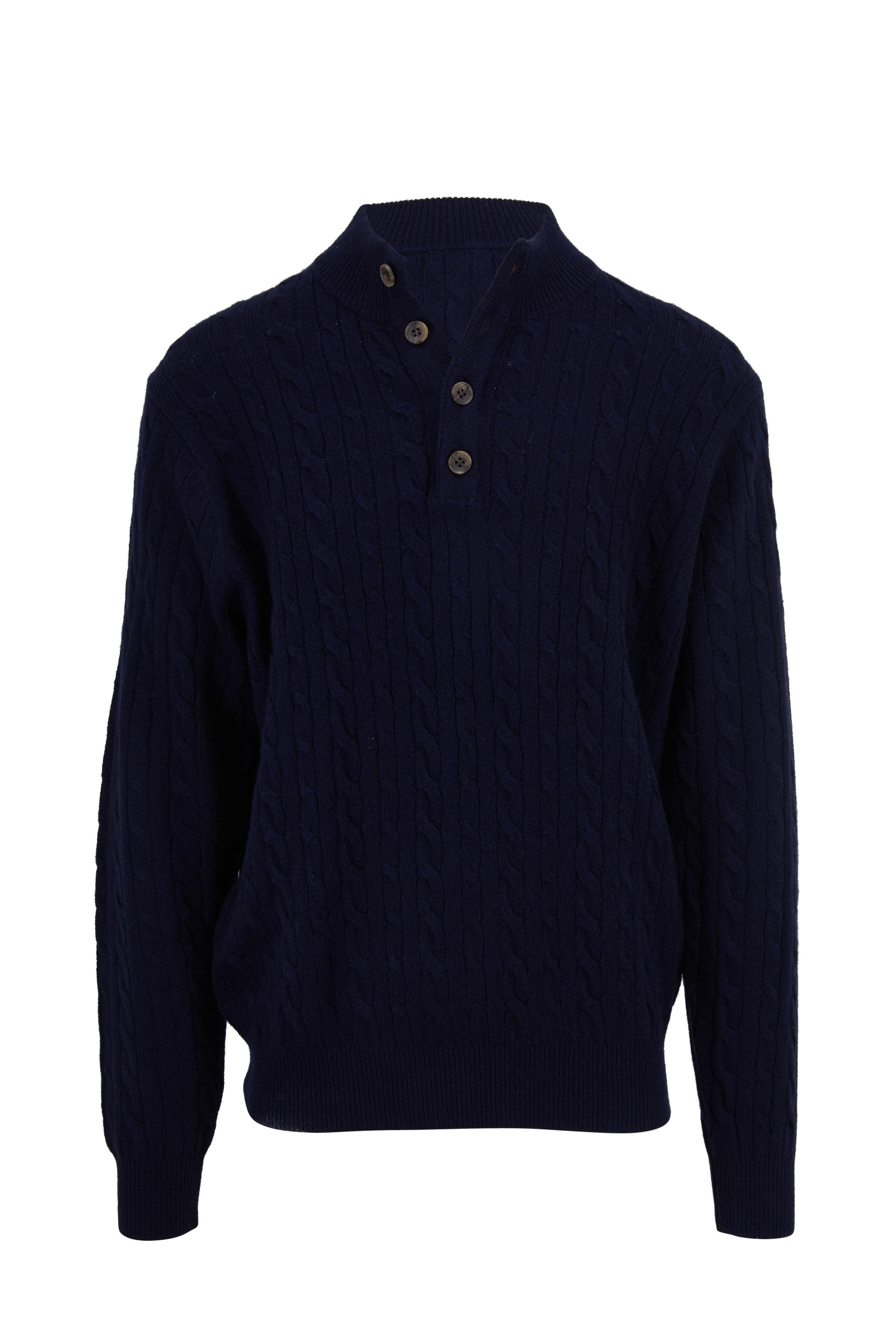 Navy Cable Knit Quarter-Button Pullover