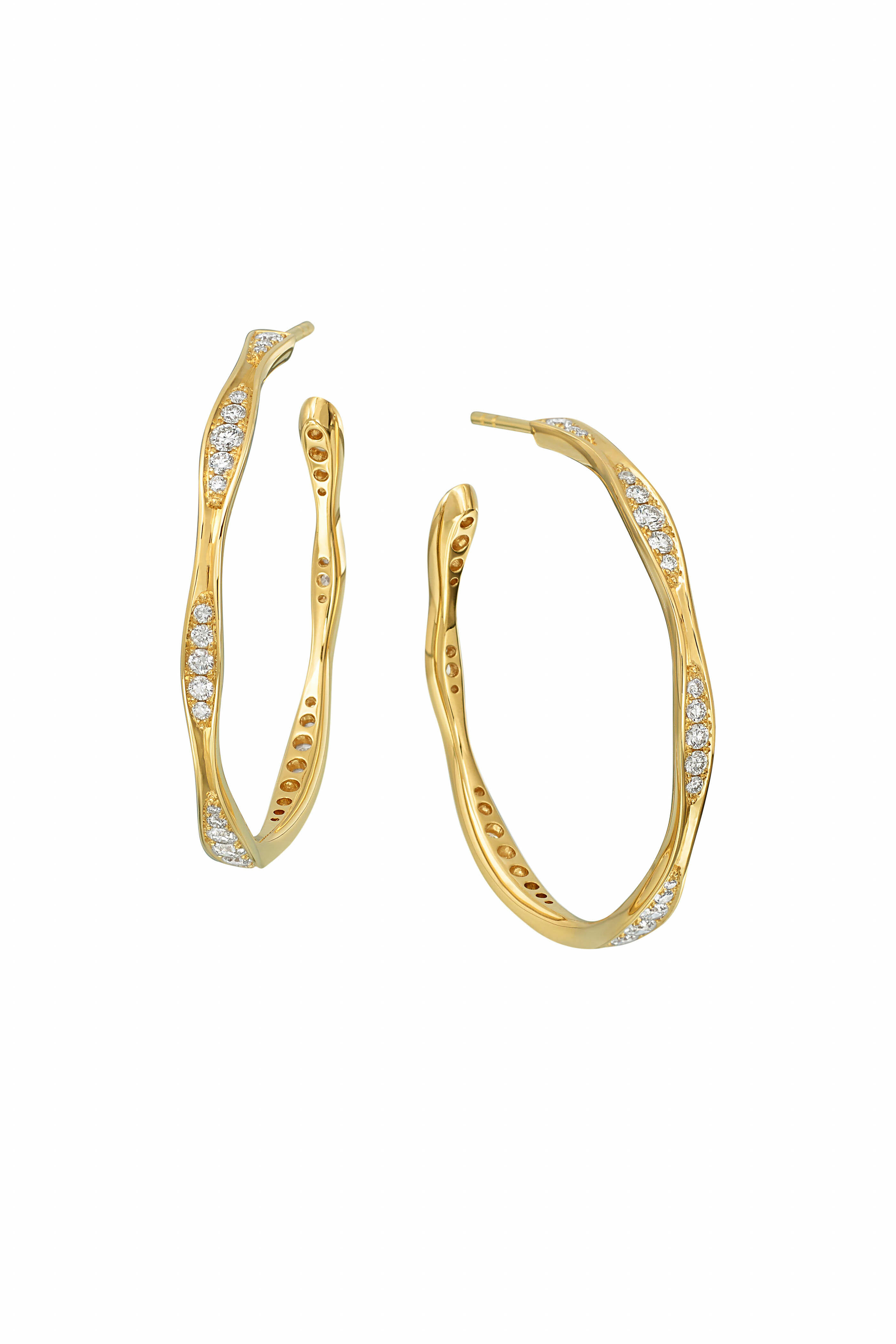 Yellow Gold Wave Hoop Earrings