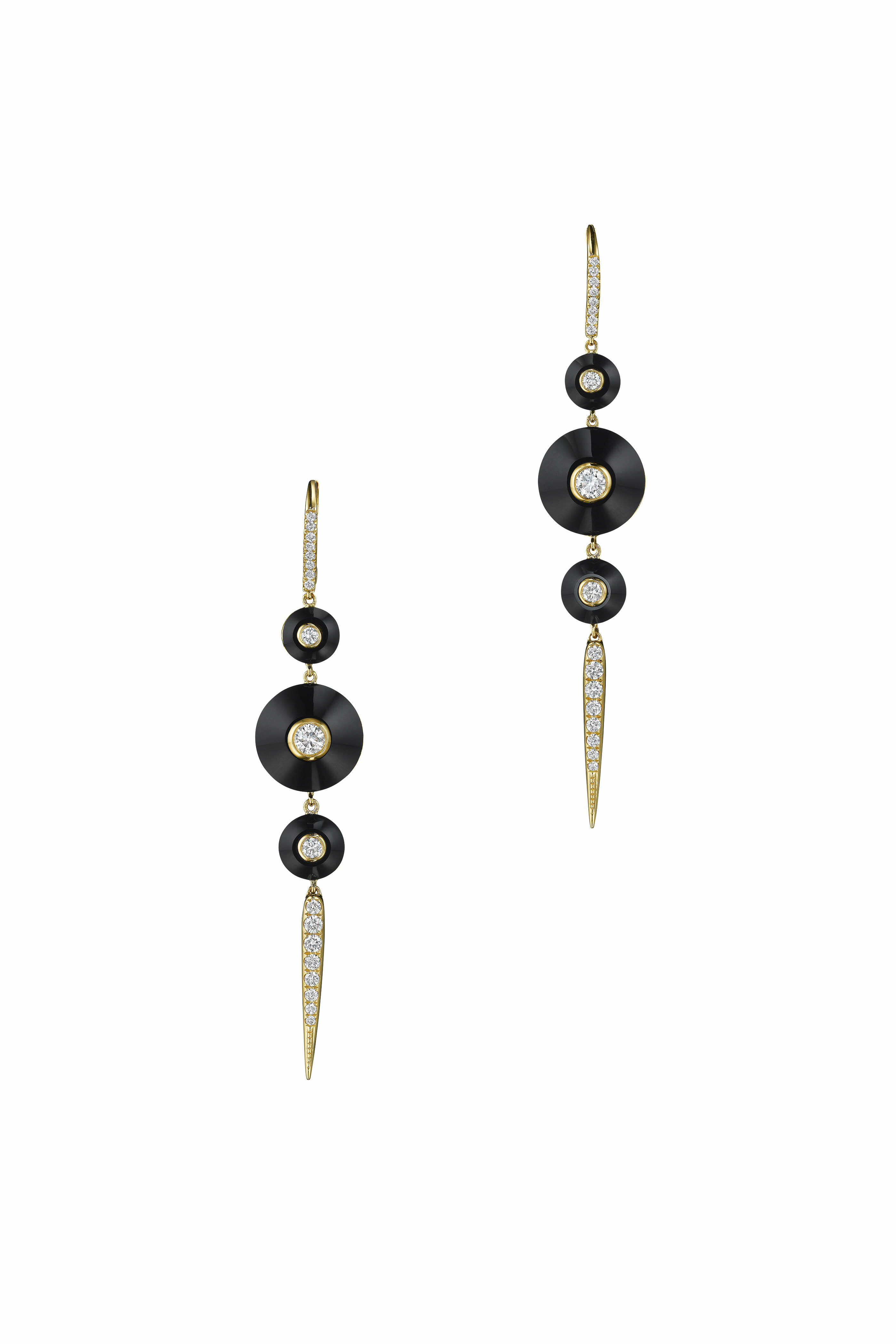 18K Yellow Gold Pyramide Drop Pointe Earrings