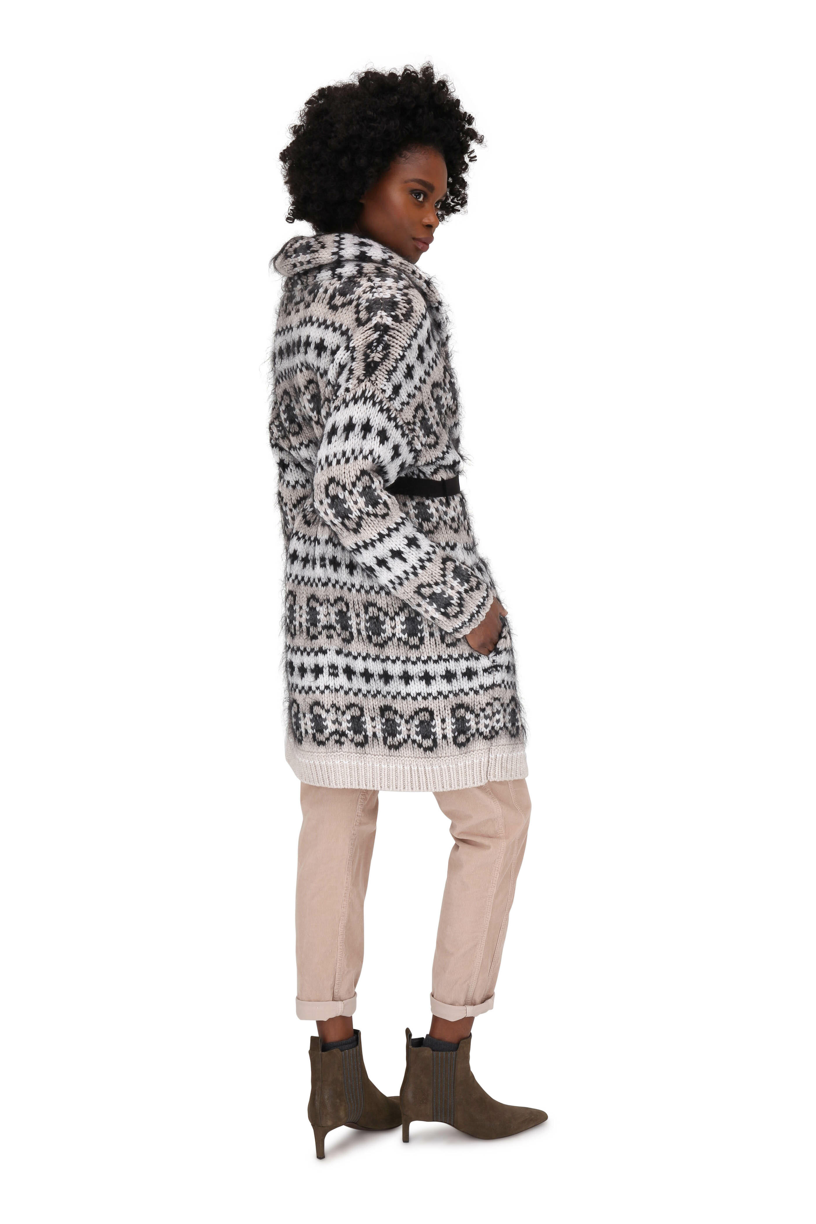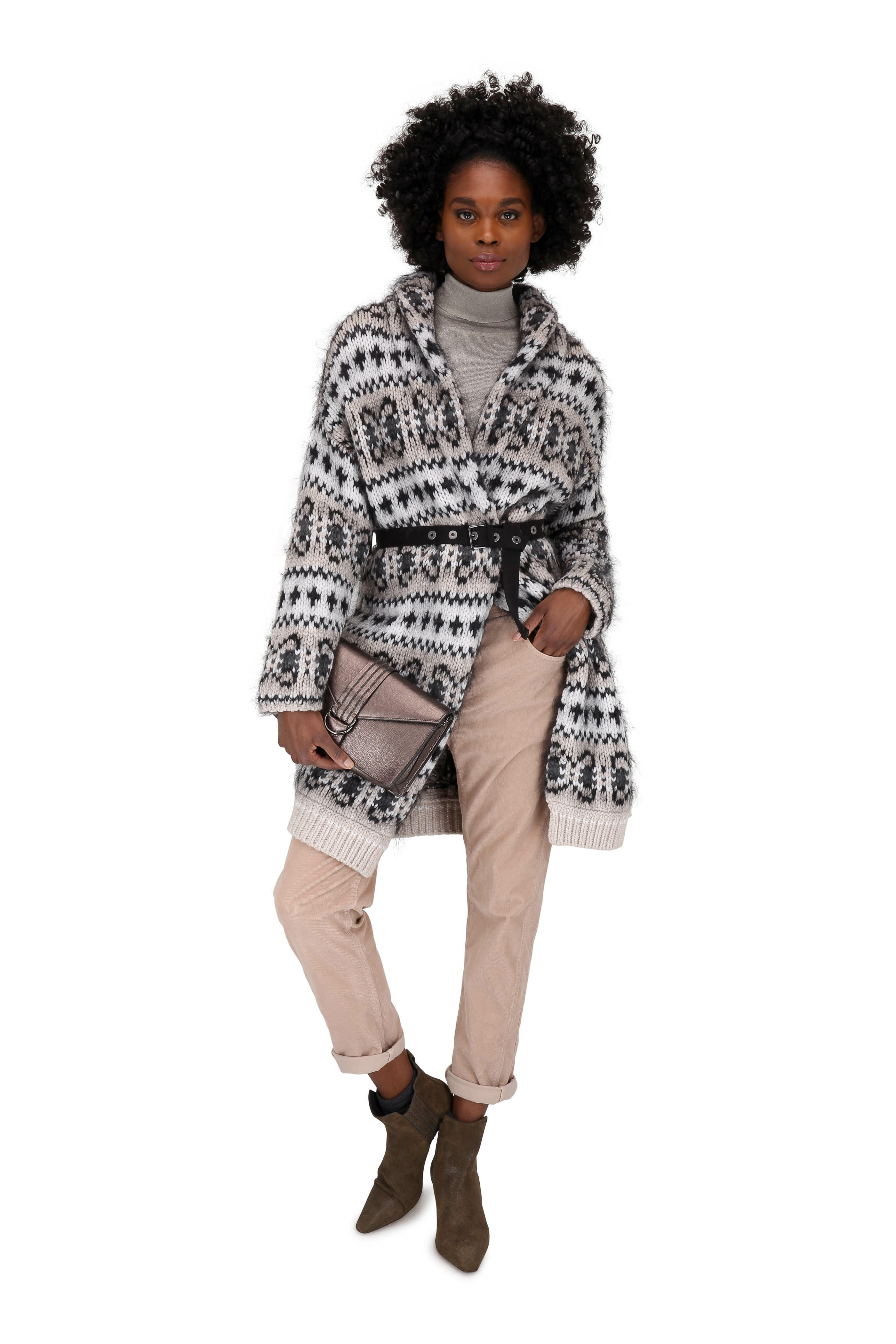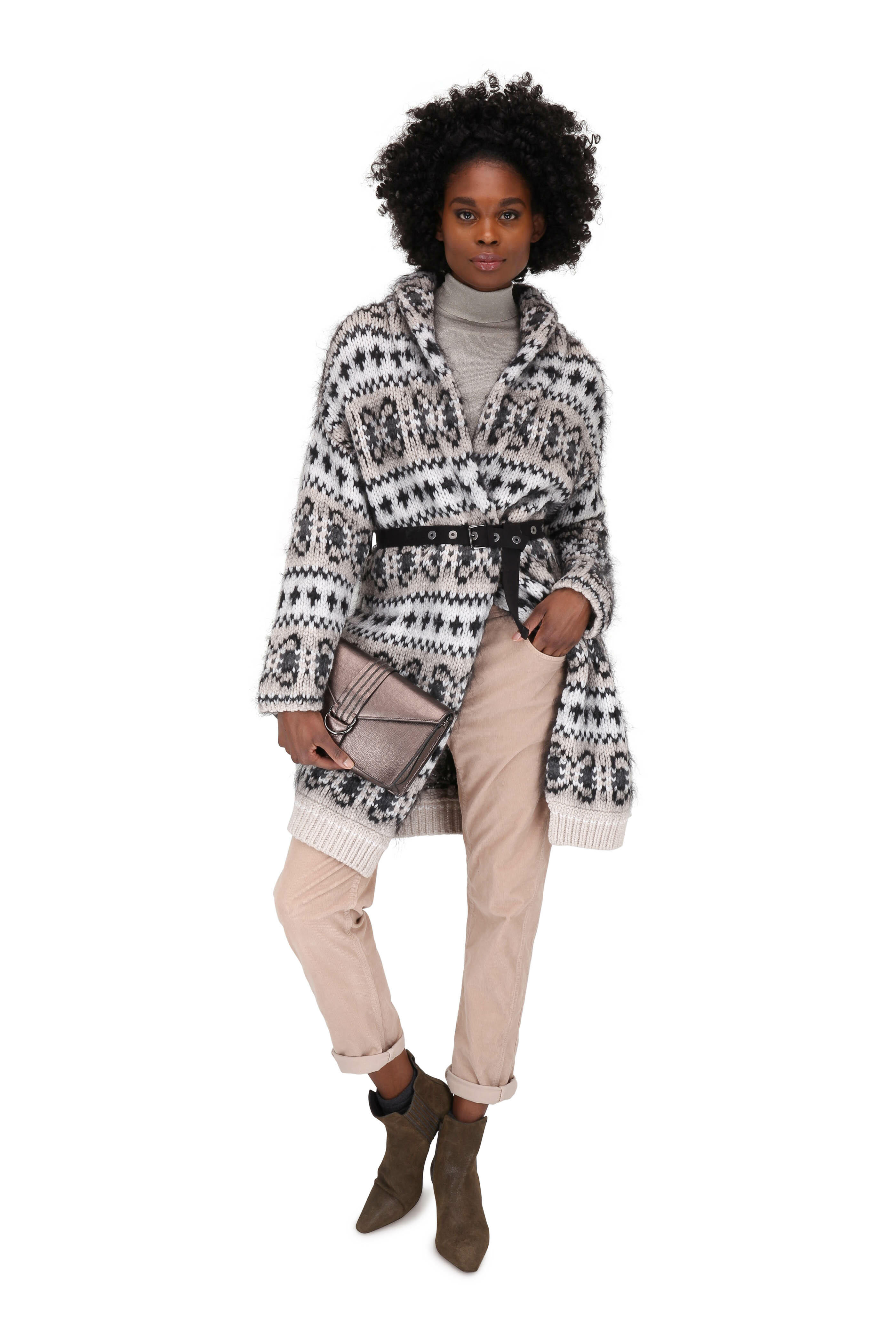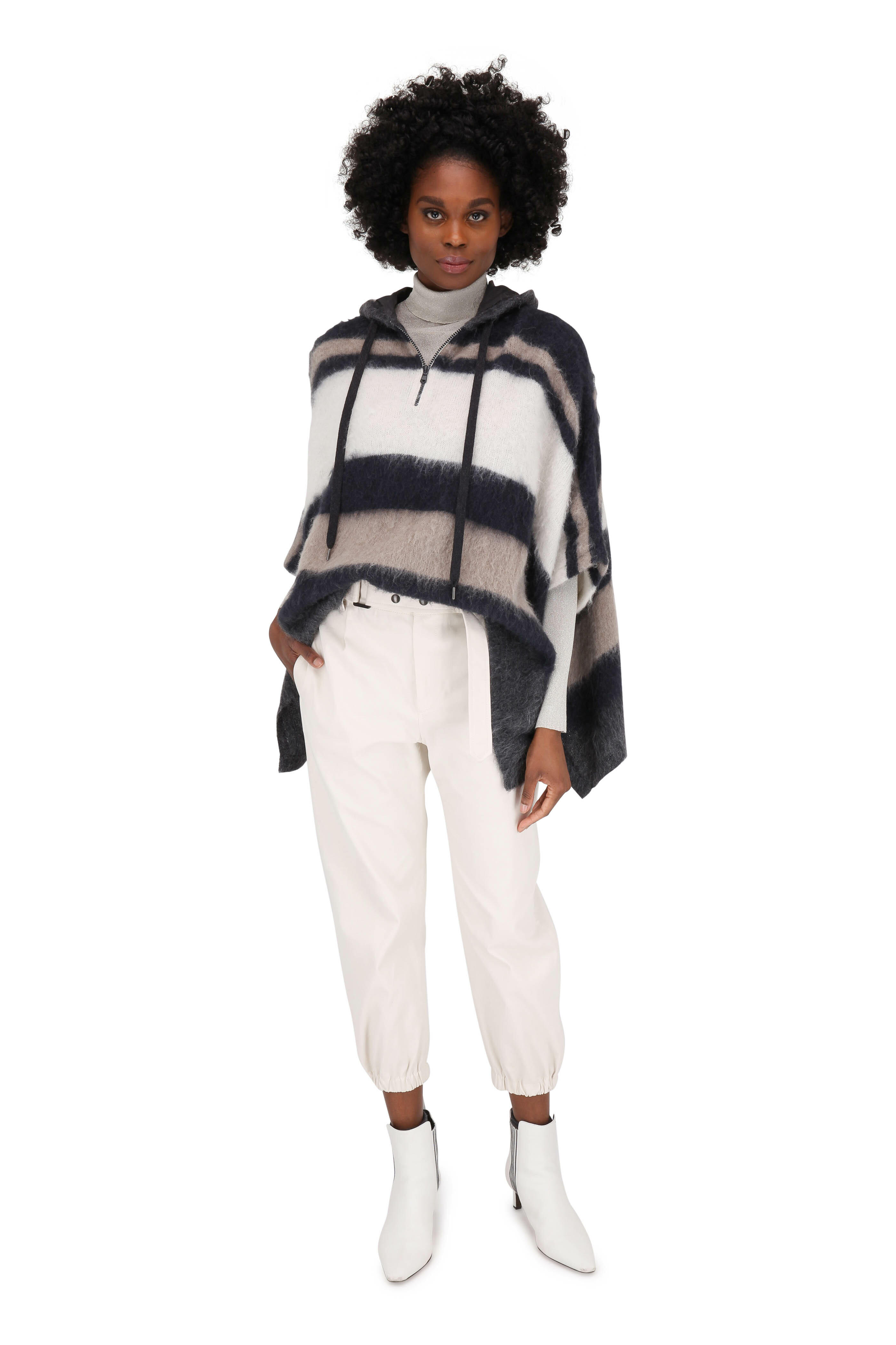 Turtleneck. Made in Italy. 77% viscose, 23% polyester. Dry clean.