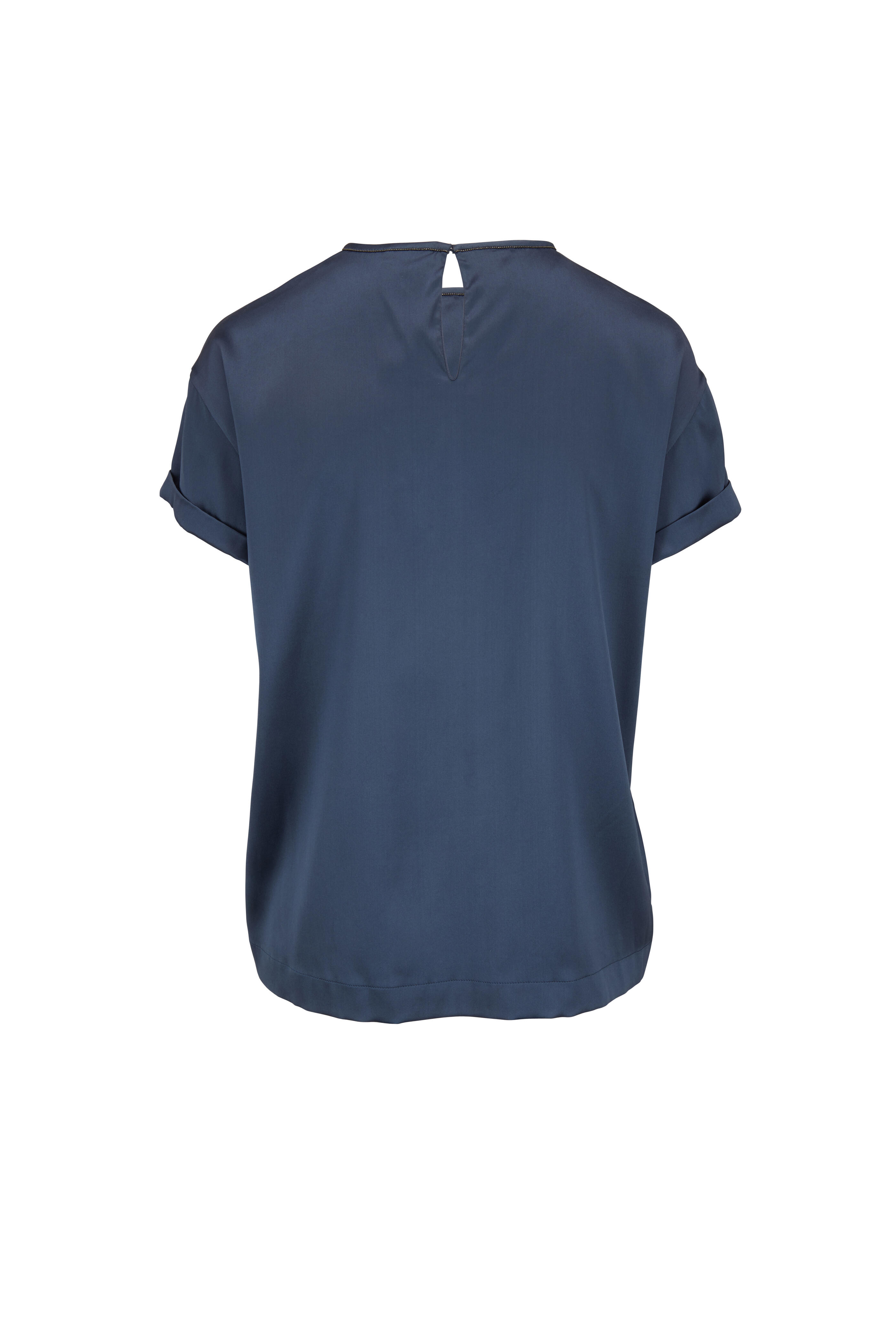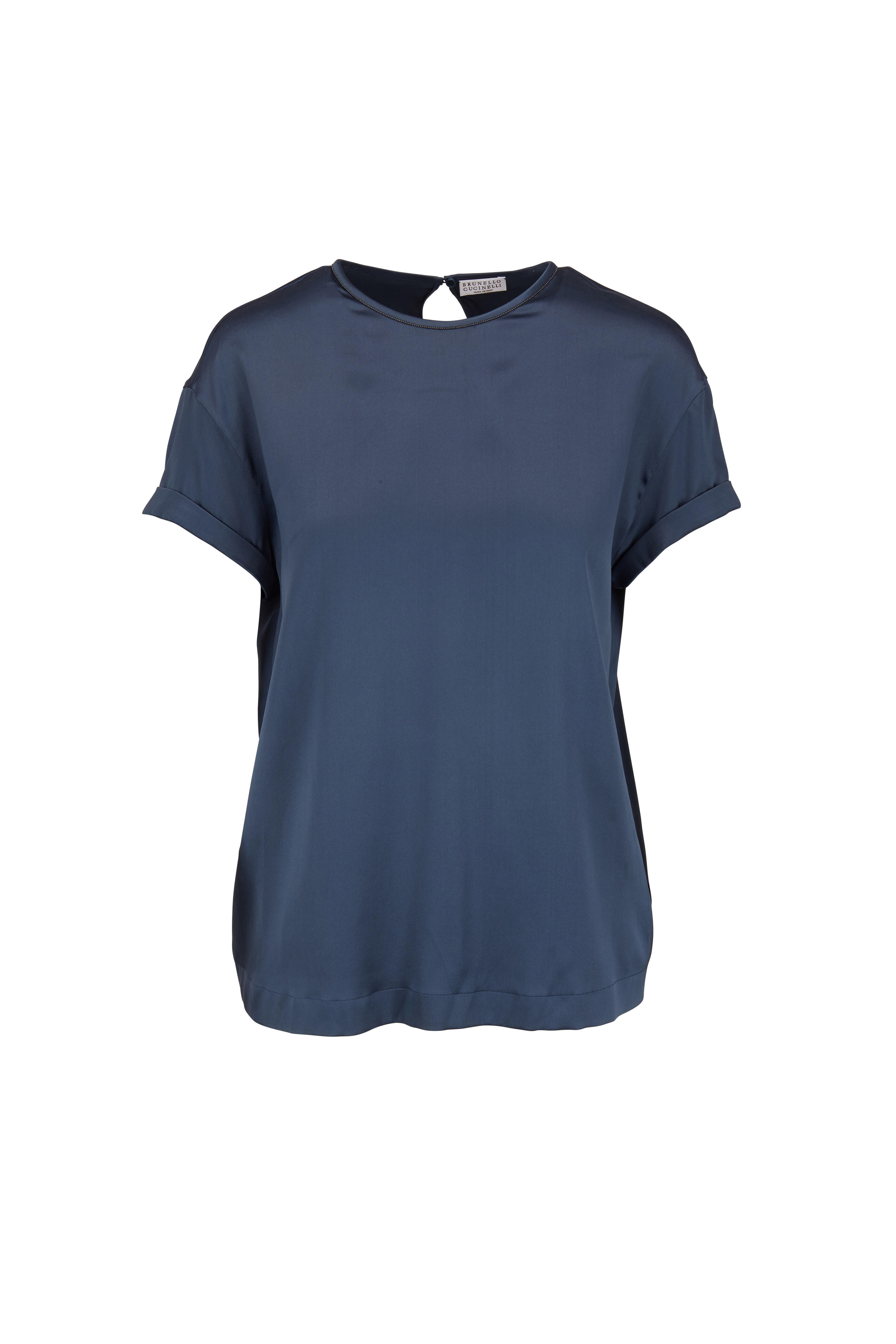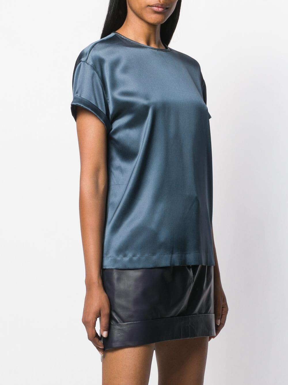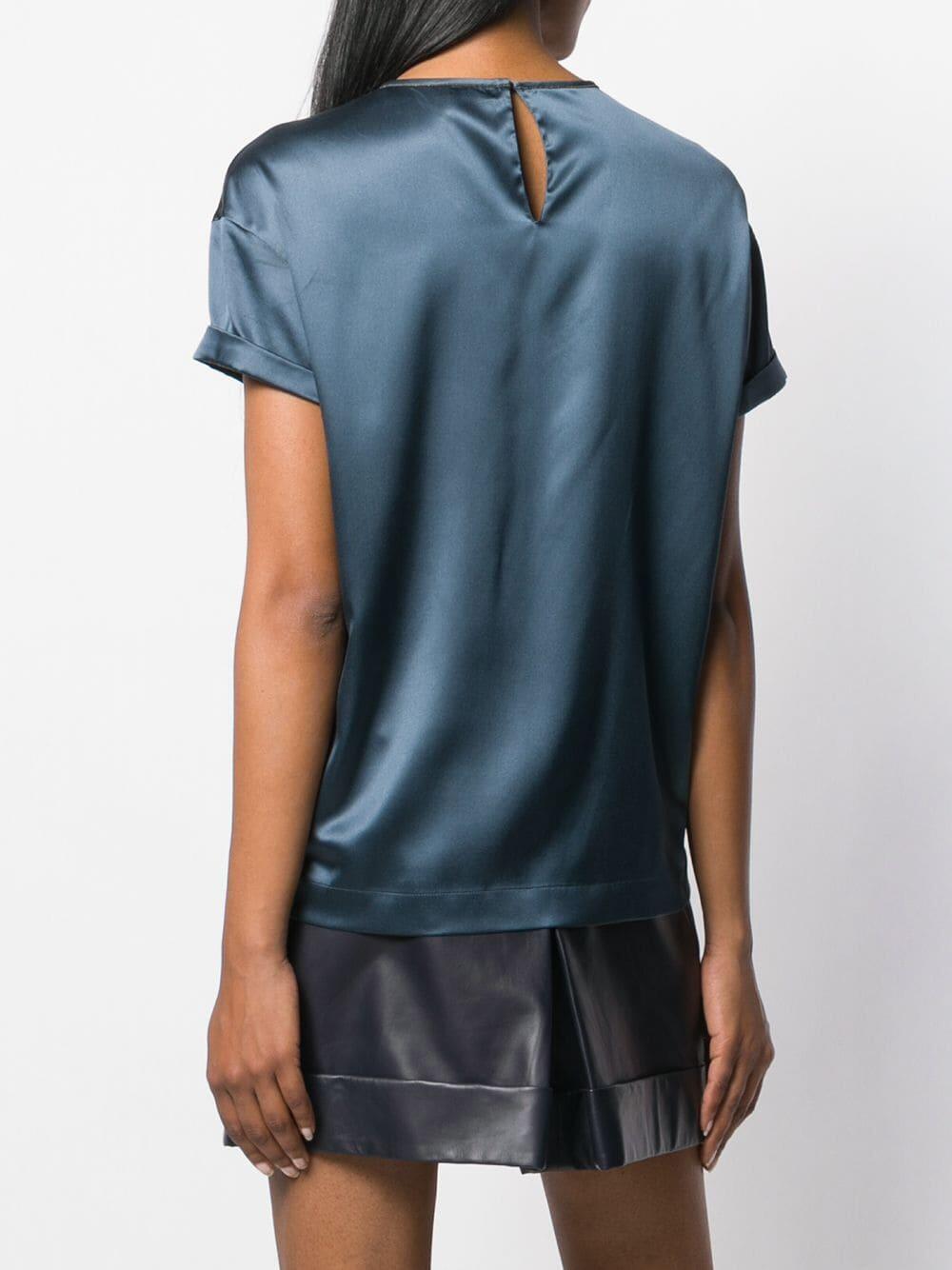 Lagoon Satin Monili Crewneck Top