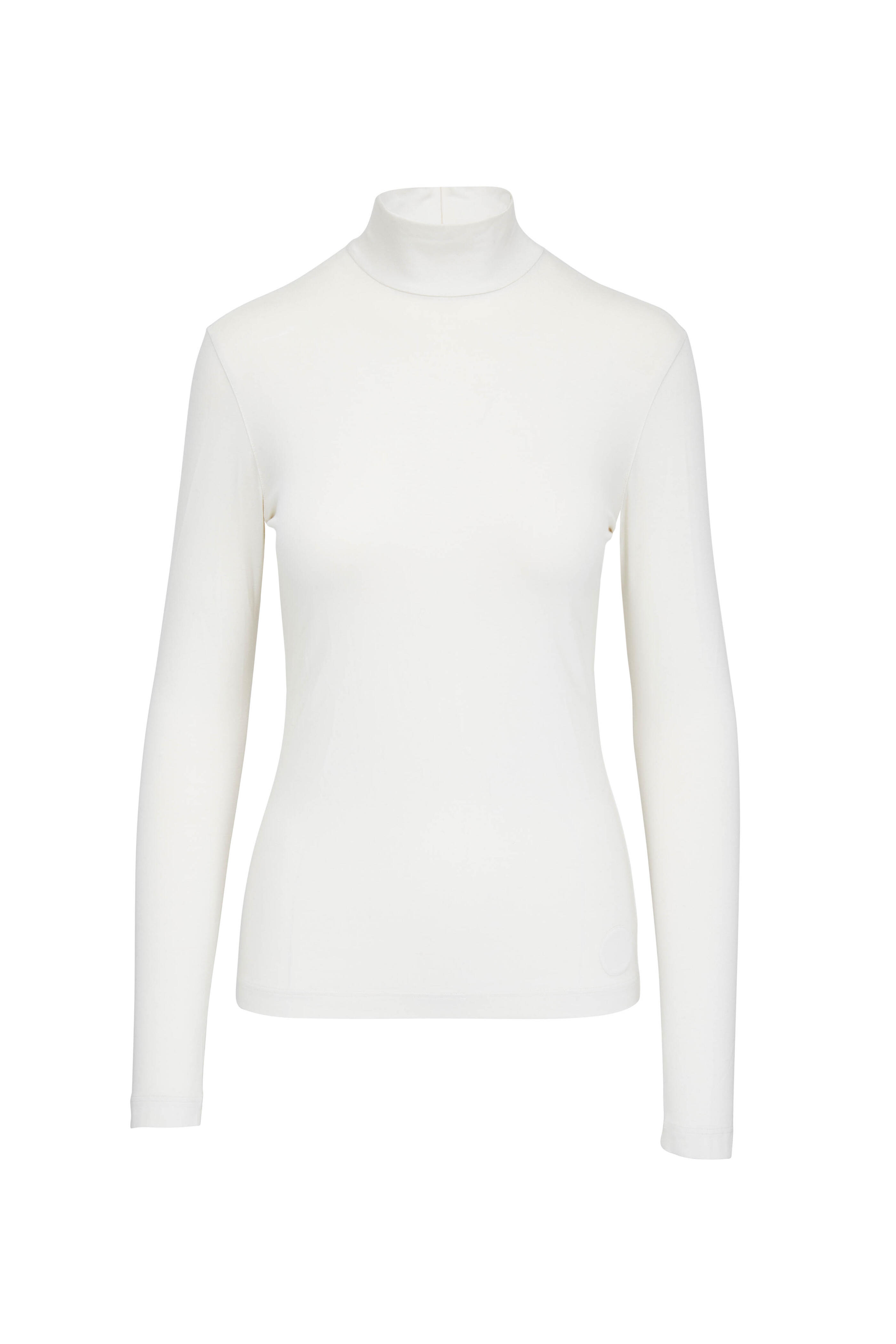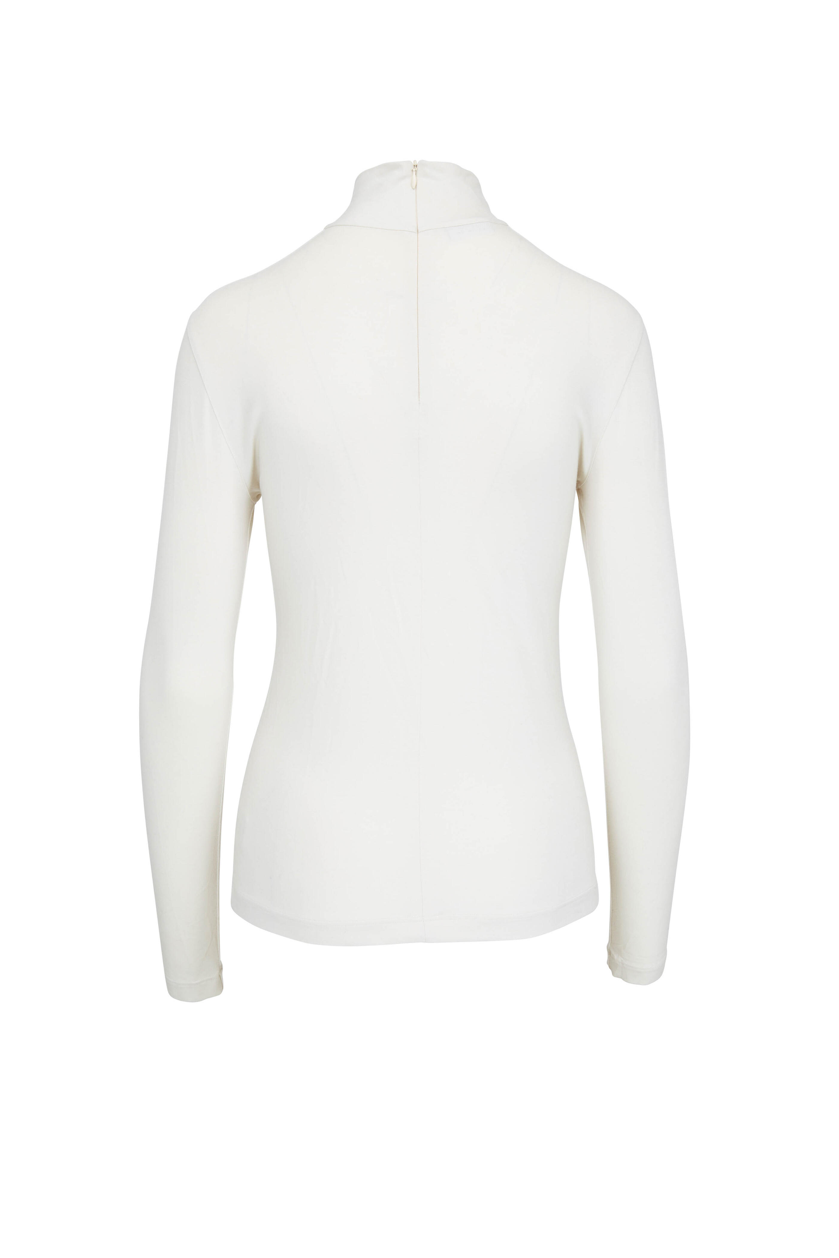 Turtleneck. Concealed back zip. Imported. 95% modal, 5% elastane. Dry clean.