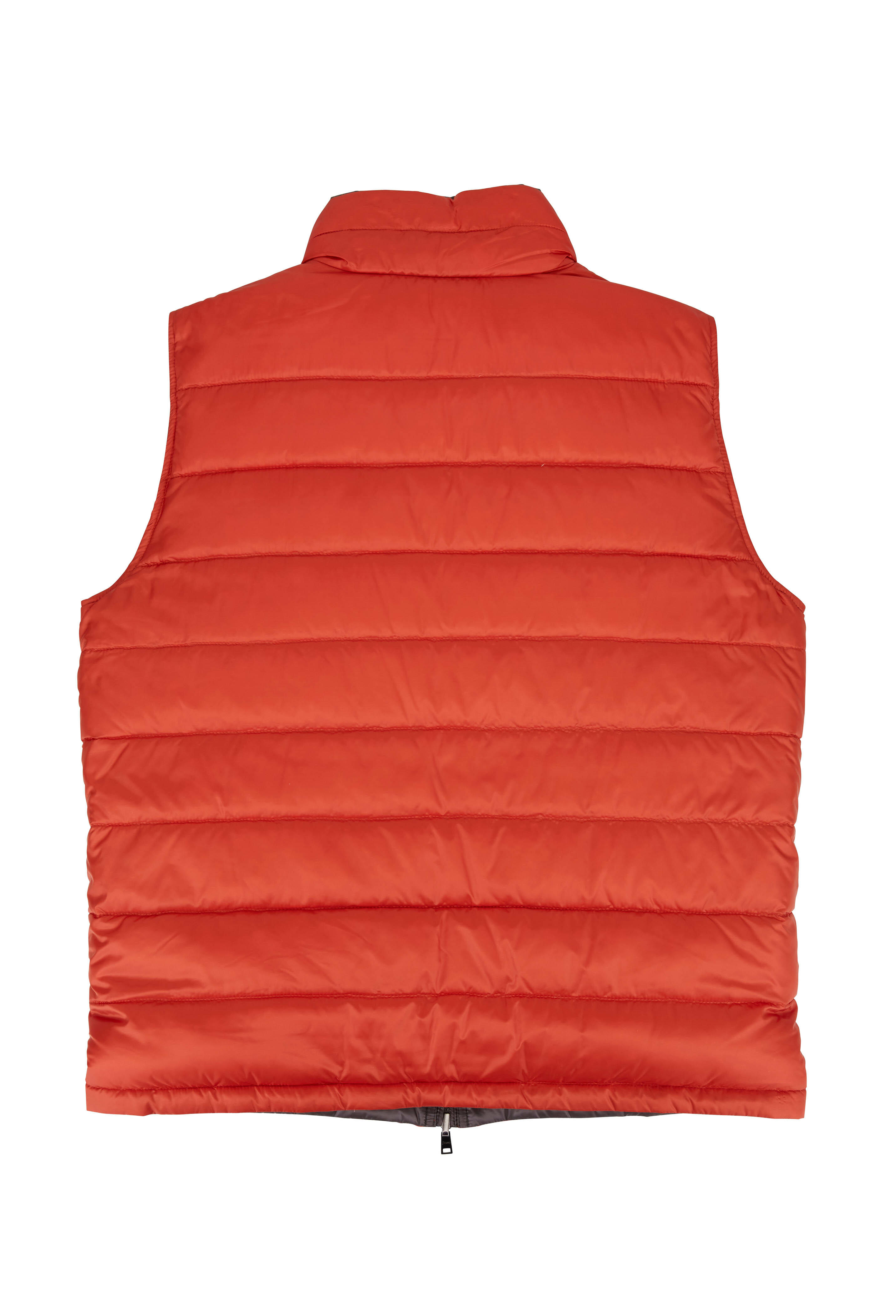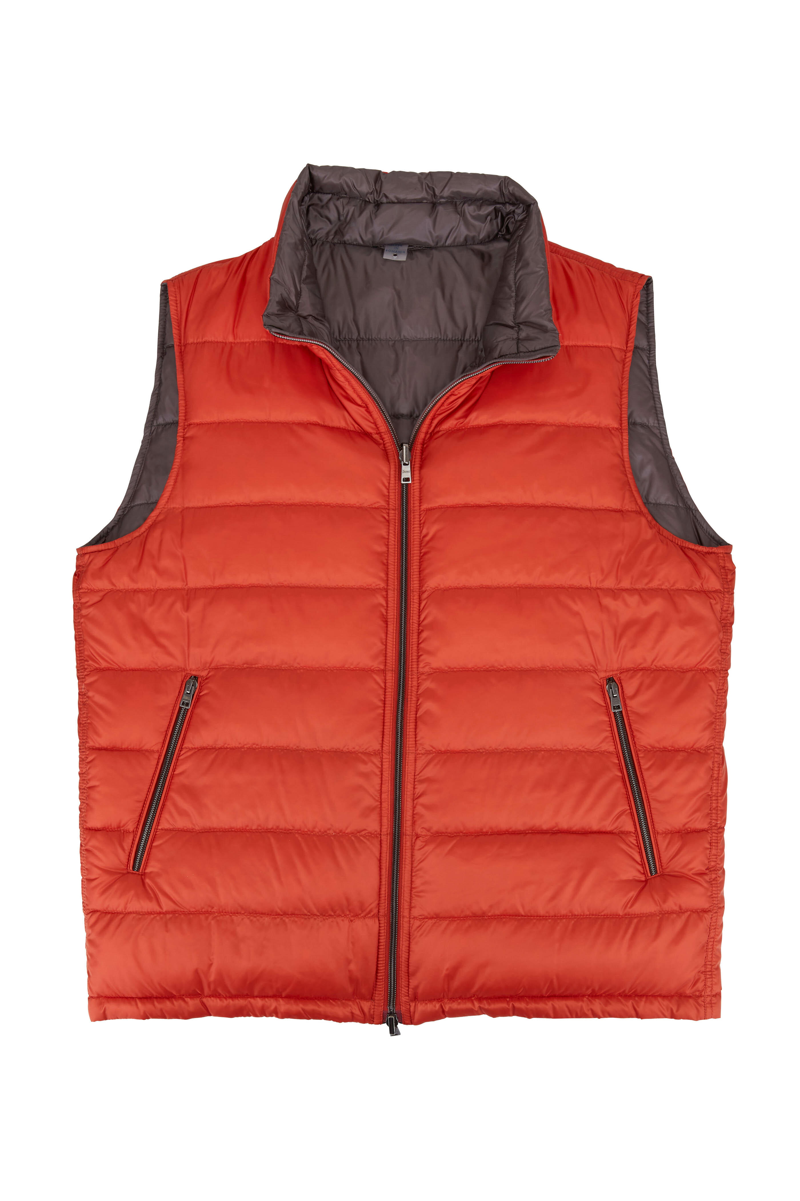 Stand collar. Front two-way zip. Lower zip pockets; lower snap slip pockets. Reversible. Imported. 100% nylon; fill: 90% down, 10% feathers. Hand wash.