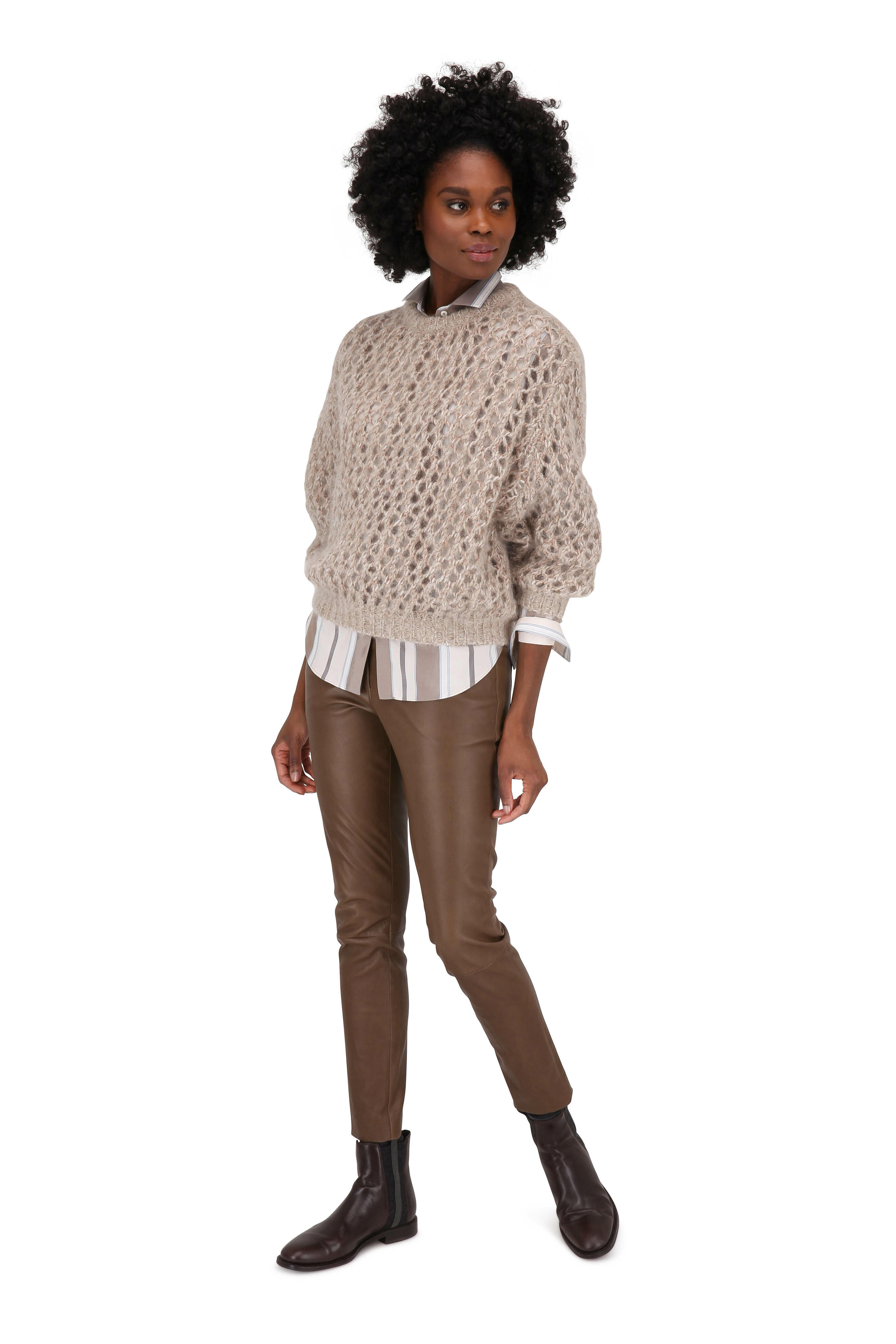 Oyster Cashmere & Mohair Open Weave Sweater