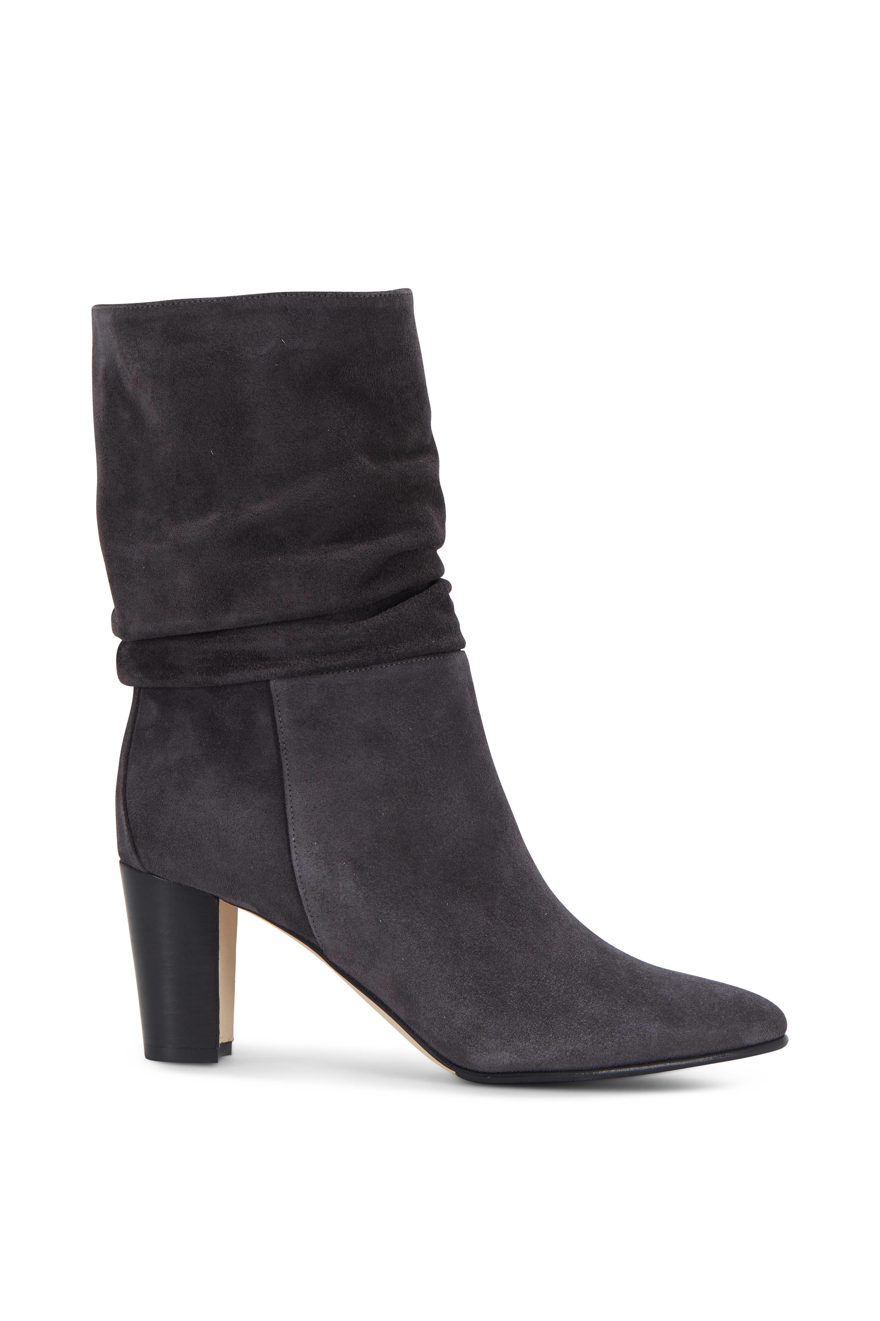 Shushan Asphalt Suede Slouchy Mid-Calf Boot, 70mm