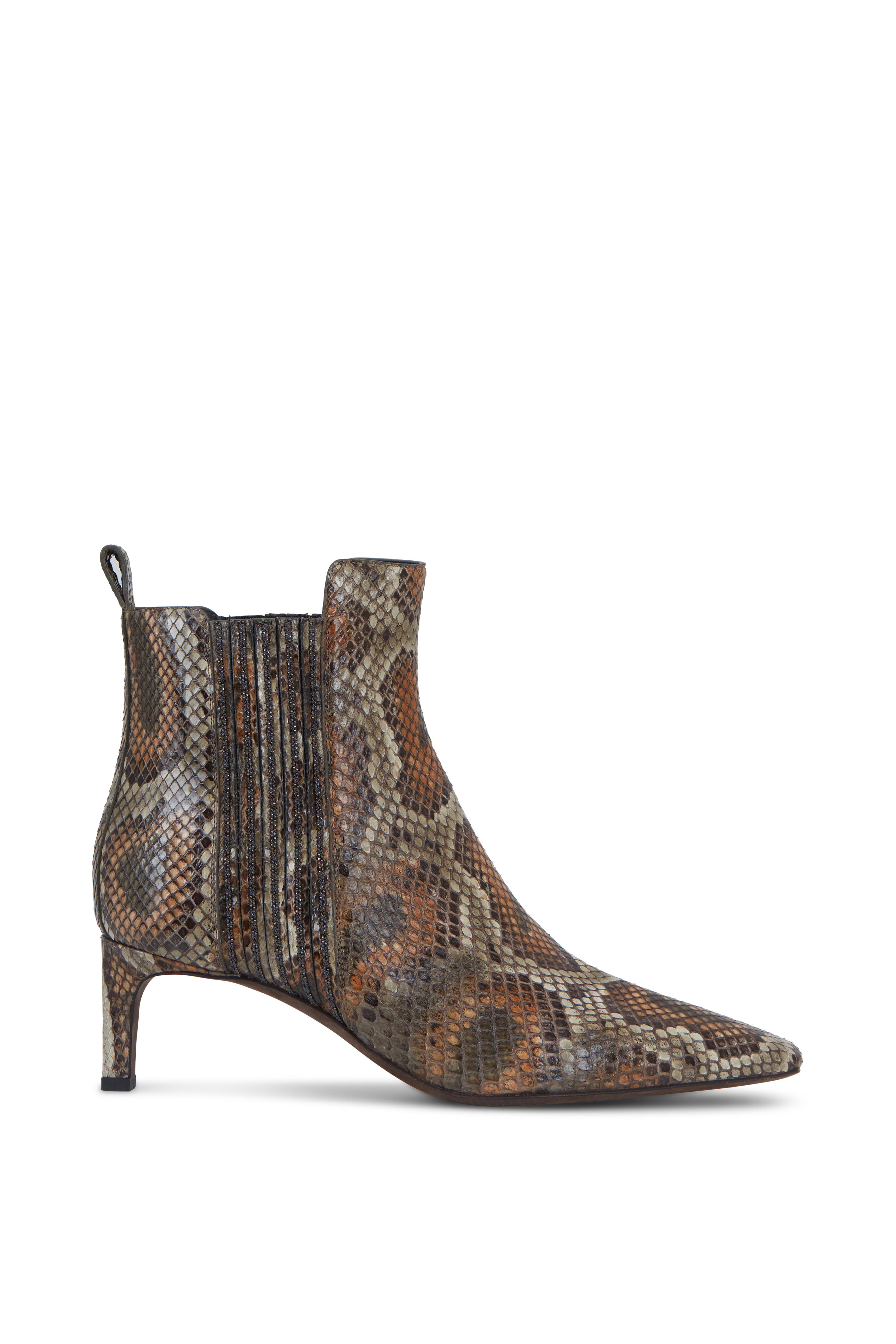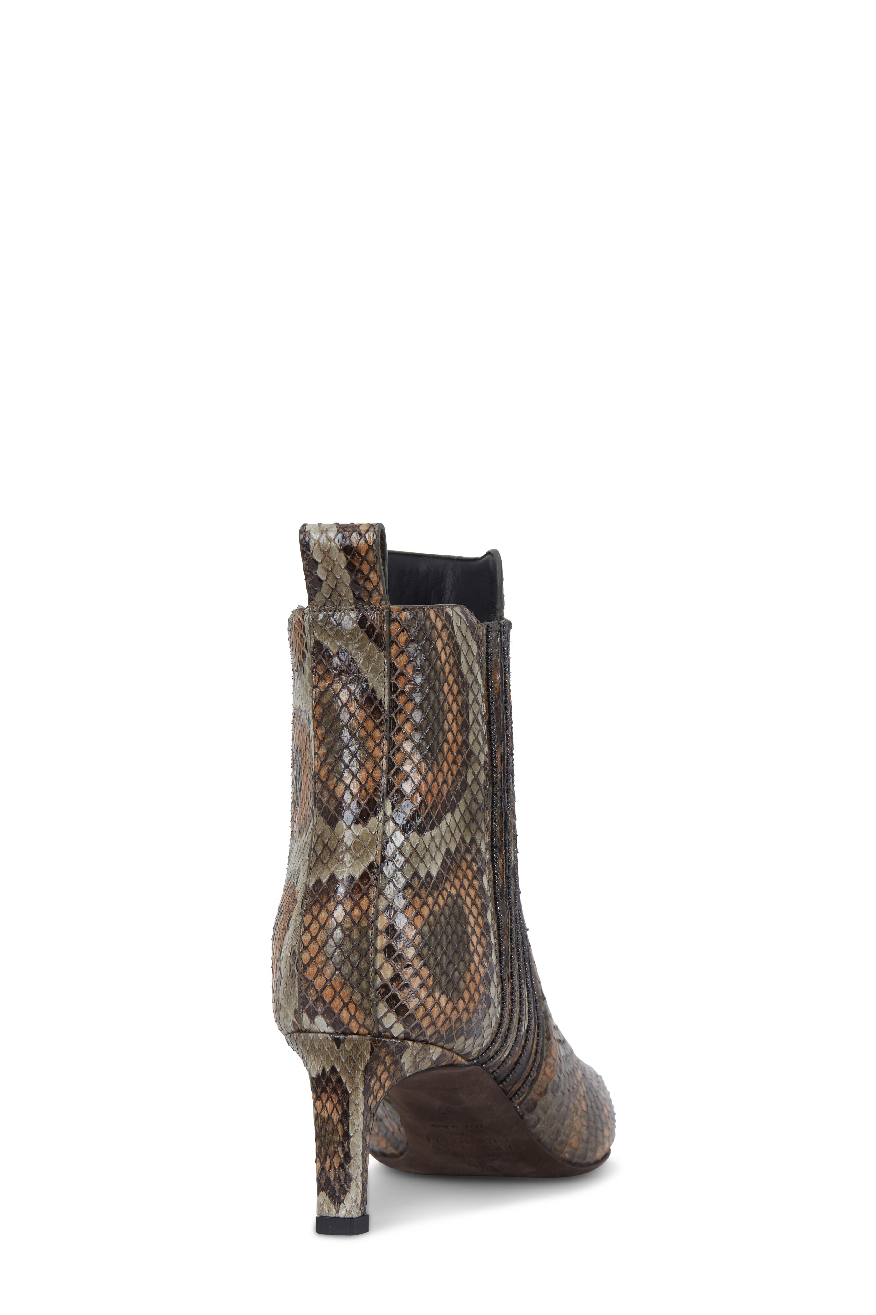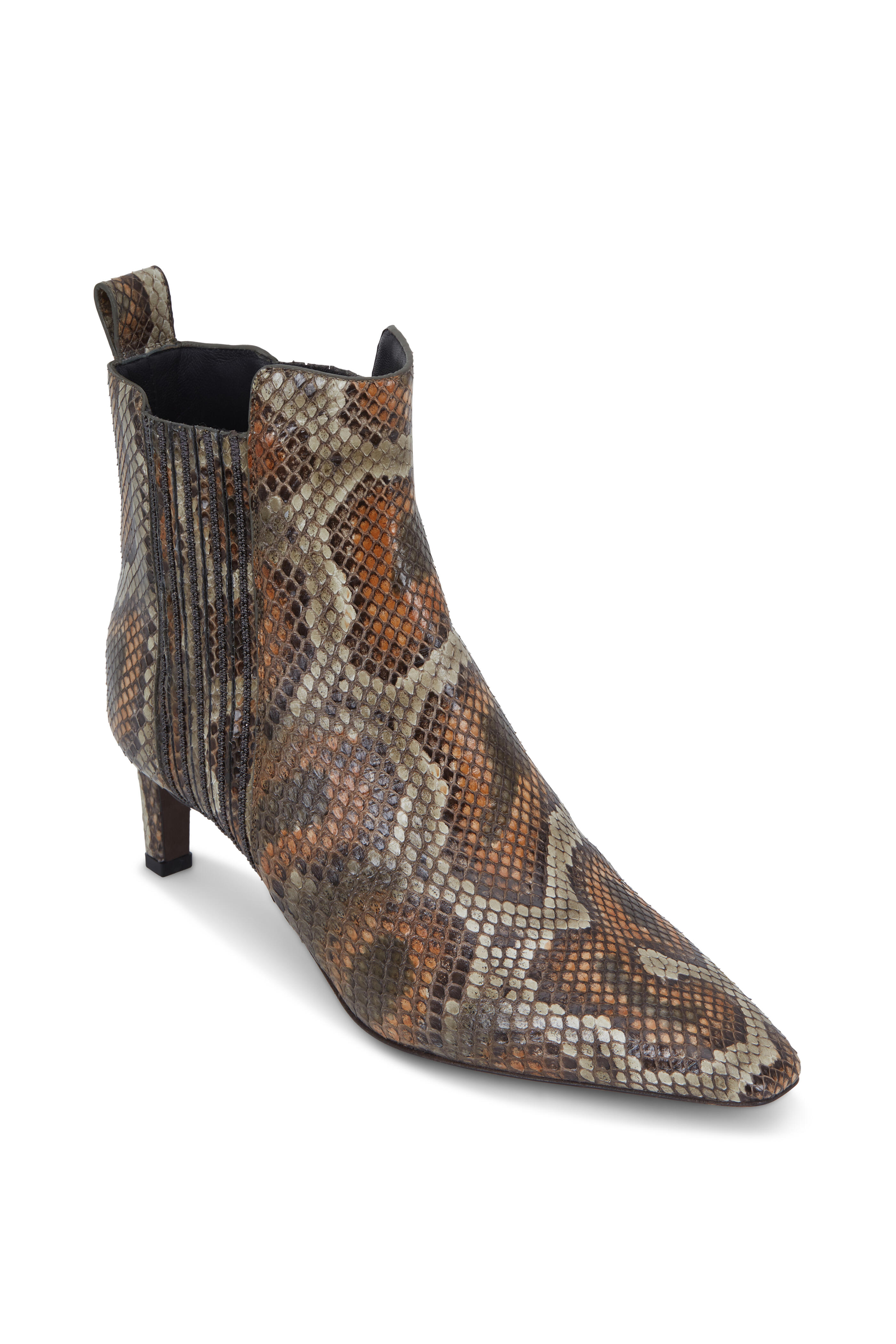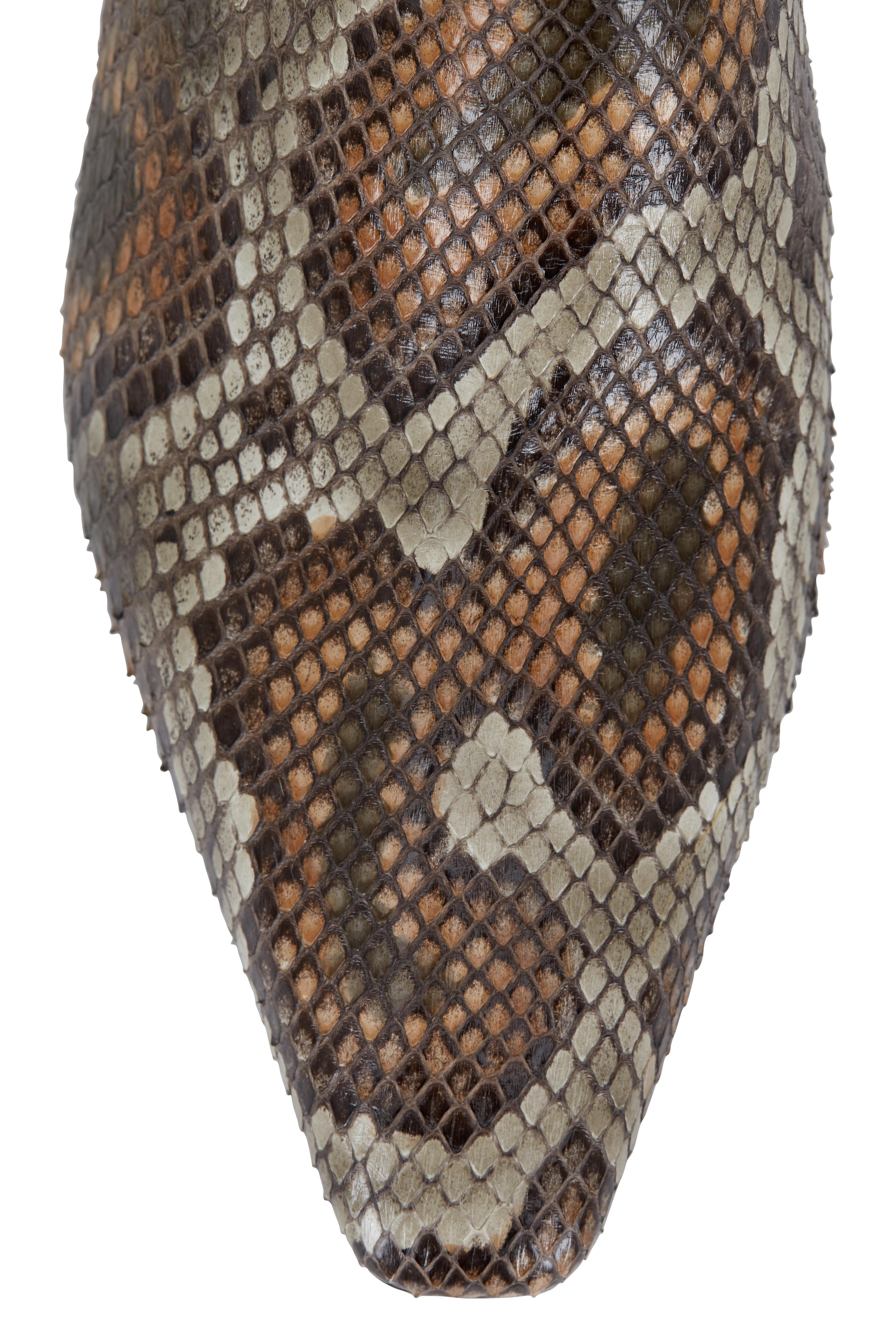 Python. Squared-off, pointed toe. Self covered heel. Back pull tab. Leather lining and sole. Side monili detailing. Made in Italy. Heel measurement: 58mm (about 2¼").