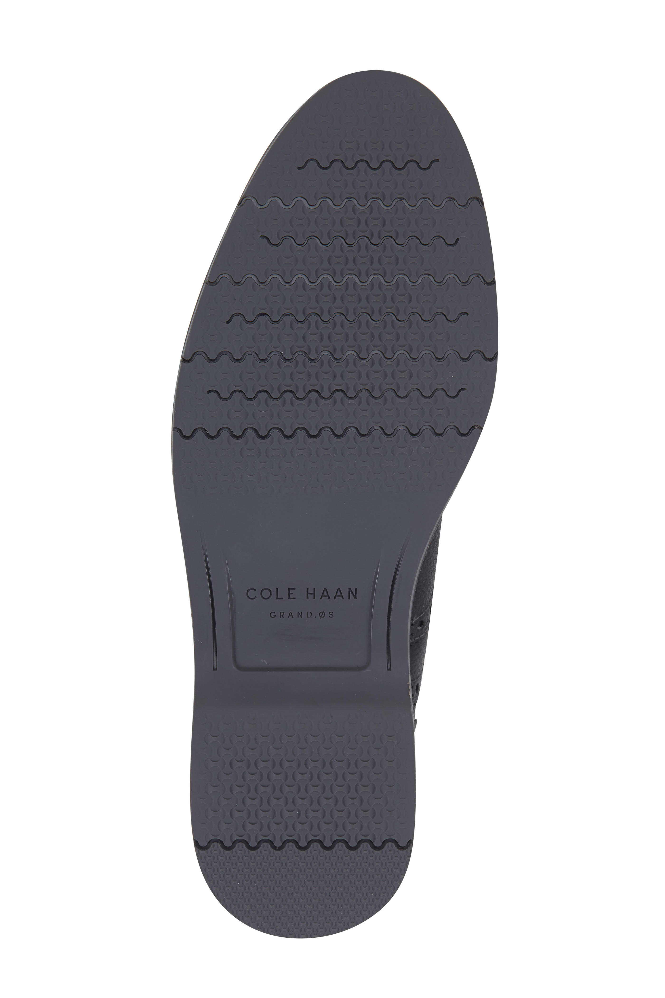 Leather upper. Almond toe. Five eyelet lace-up closure. Wingtip and brogue detailing. Unlined, cushioned insole. Grand OS technology rubber sole. Imported.