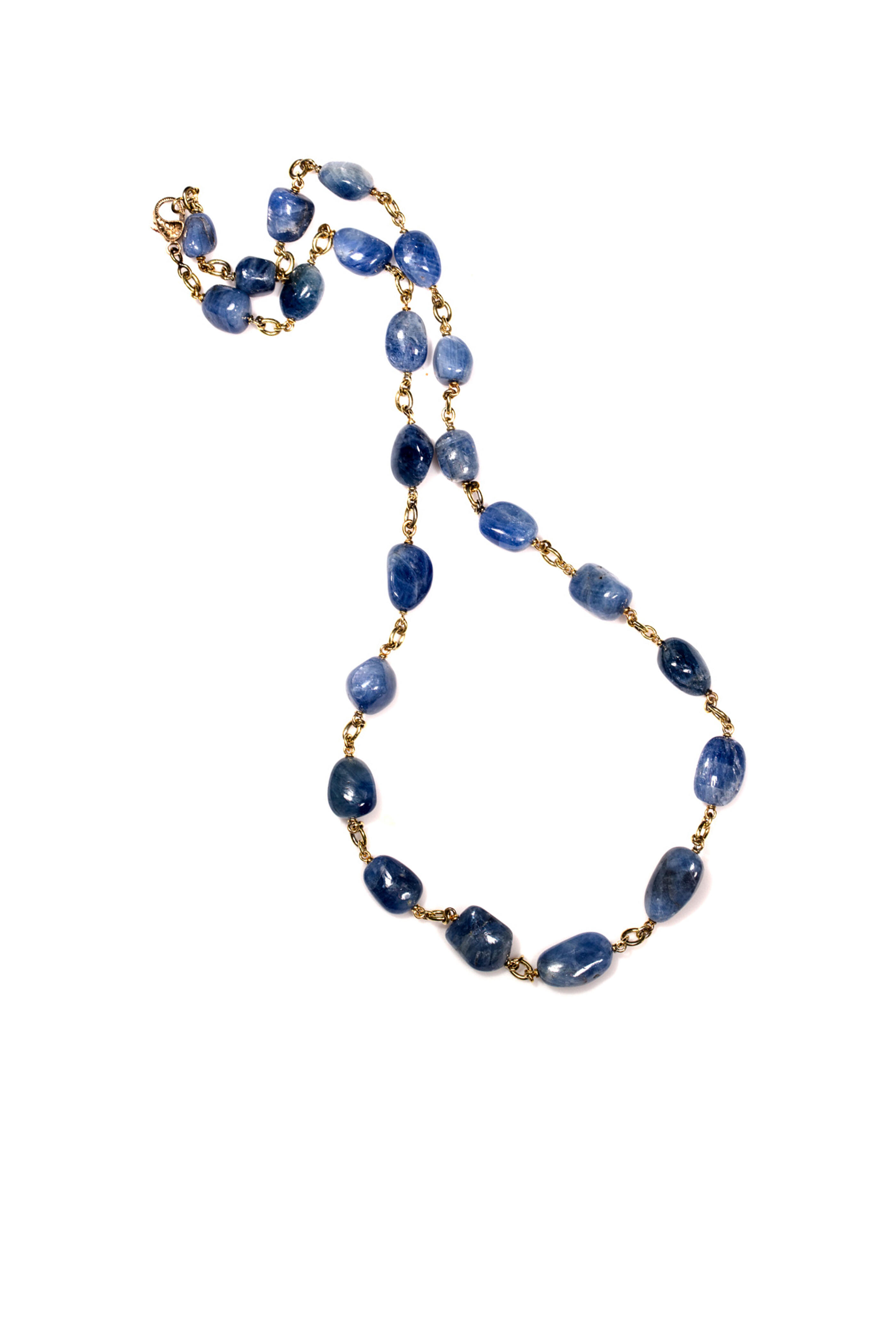 18K Yellow Gold Burmese Sapphire Bead Necklace