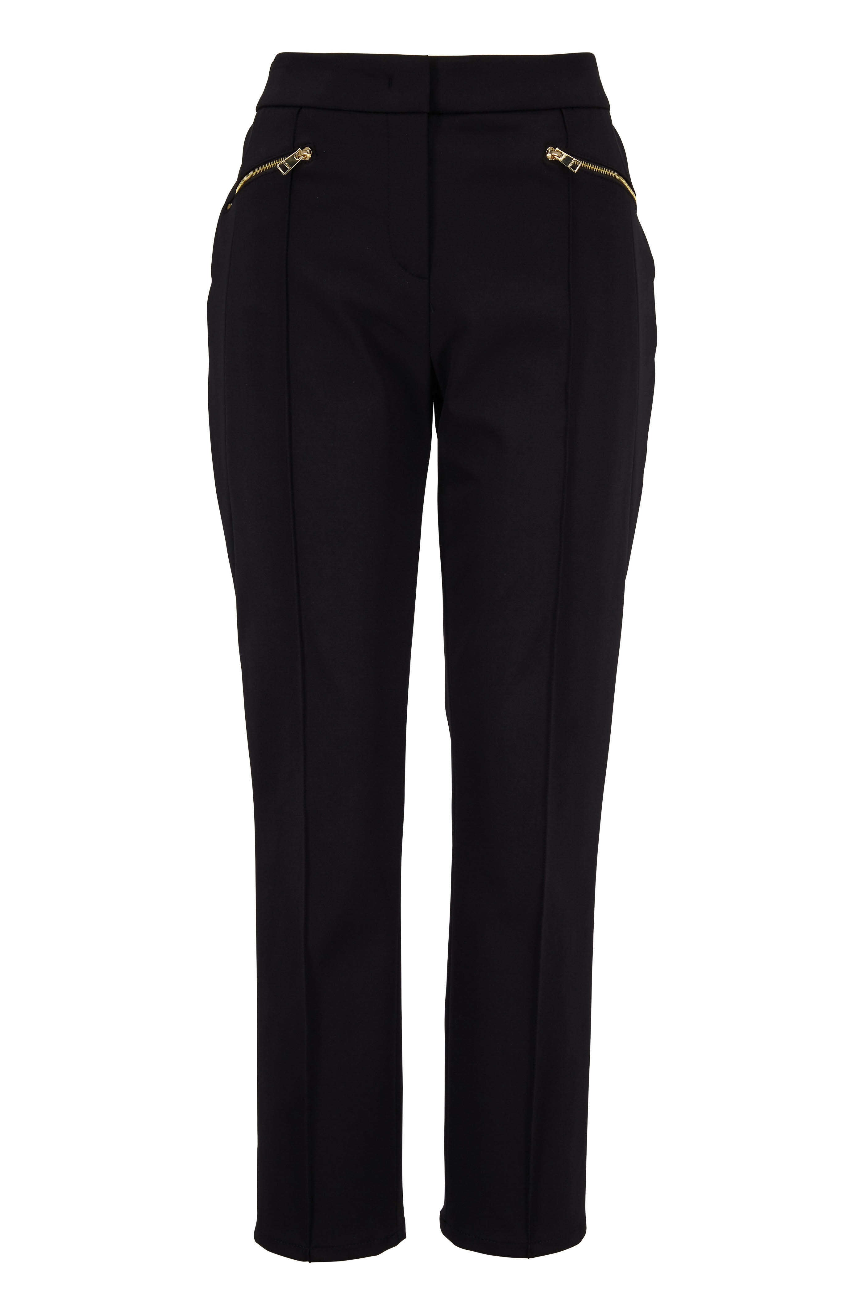 Banded waist. Front gold-toned zip pockets. Seam detailing. Imported. 27" inseam. 88% polyamide, 12% elastane. Machine wash.
