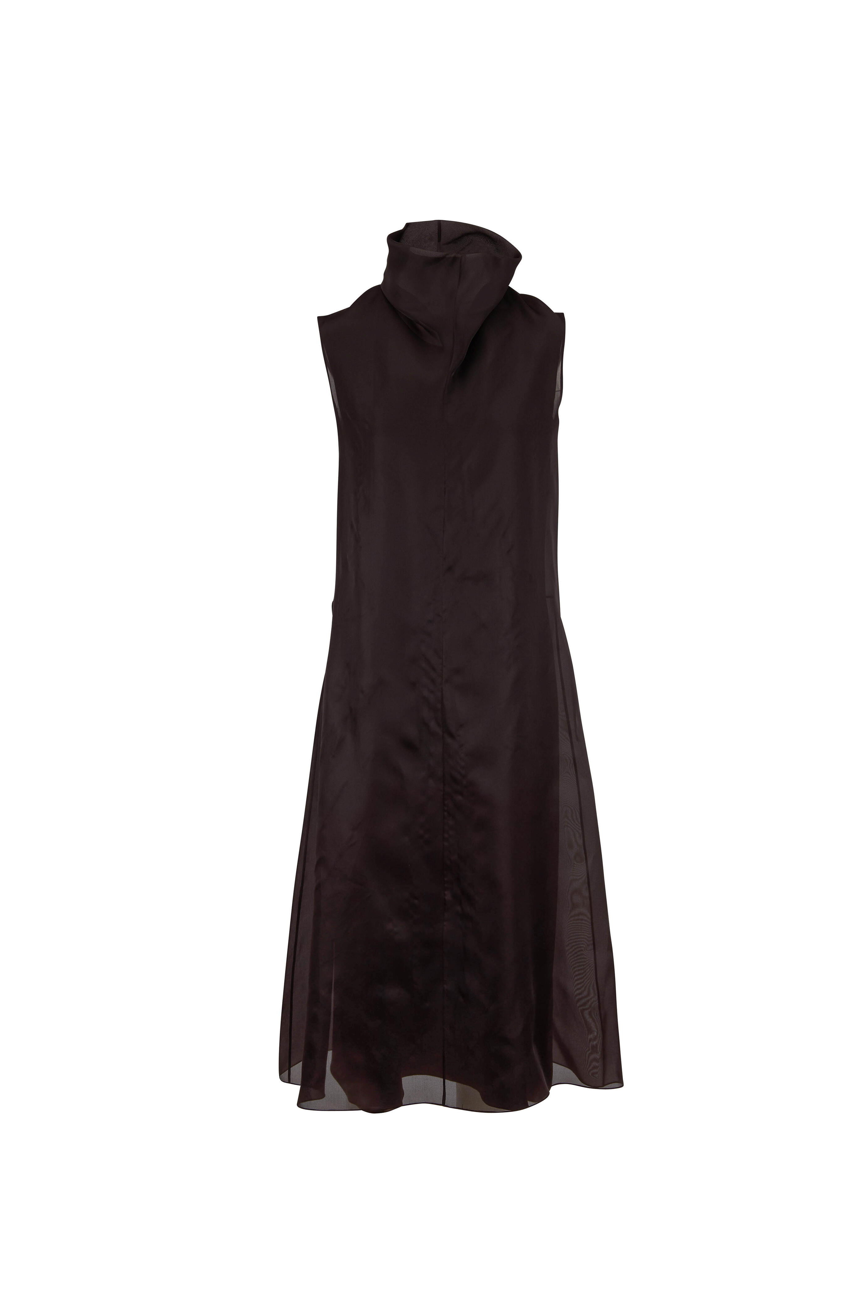 Loose turtleneck. Slip over style. Made in the USA. 48" shoulder to hem. 100% silk; lining: 100% silk. Dry clean.