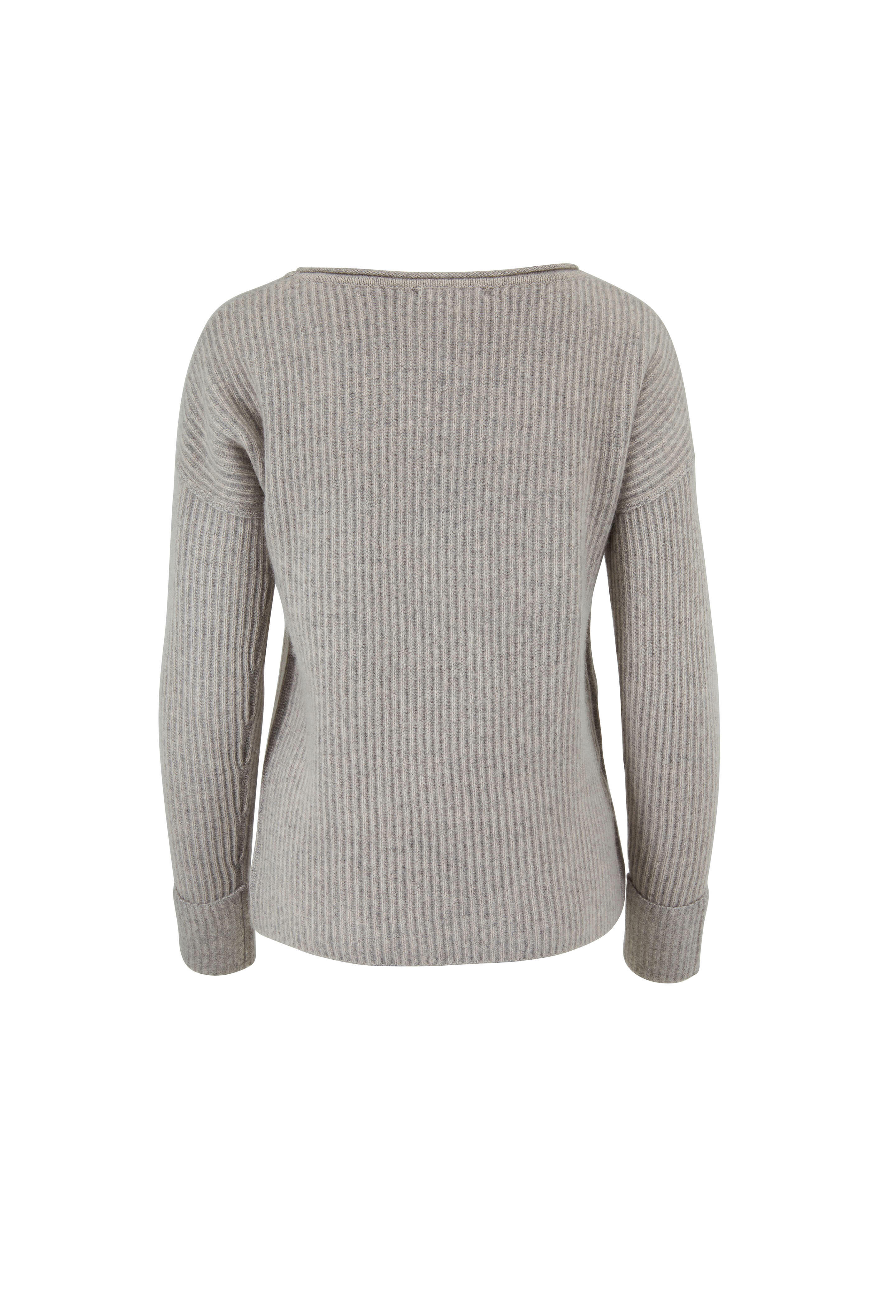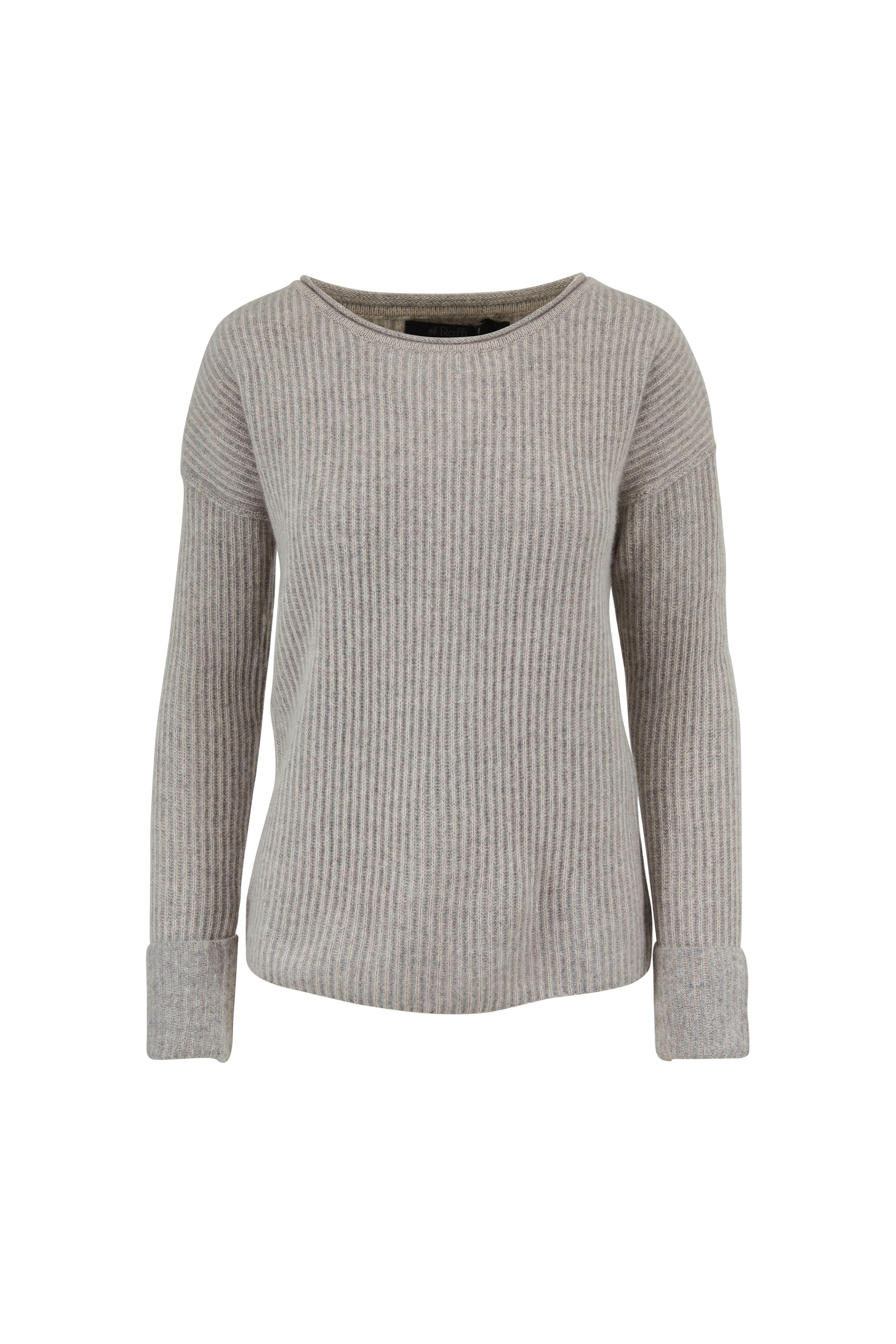 Round neckline. Folded cuffs. Imported. 100% cashmere. Dry clean.