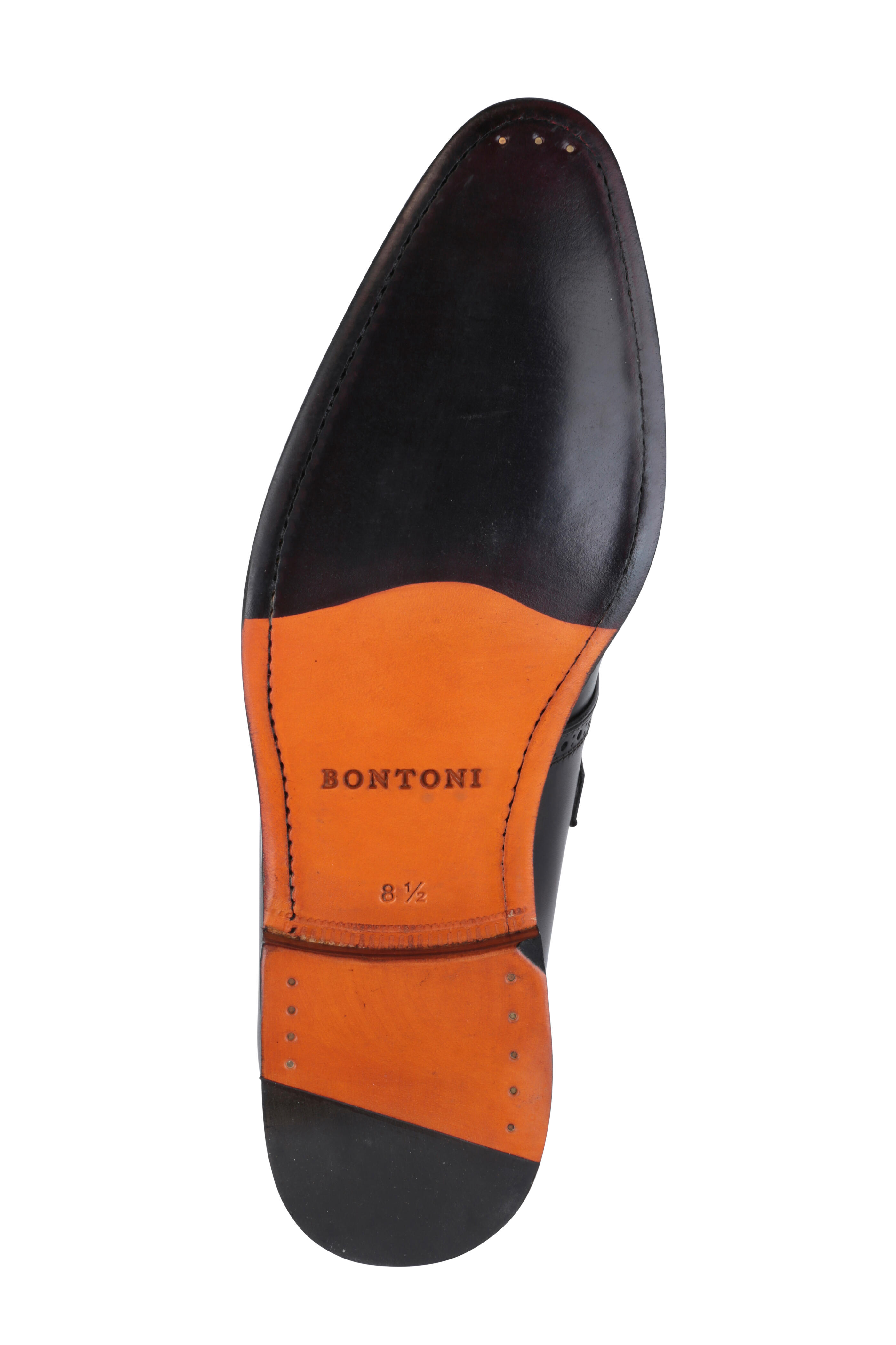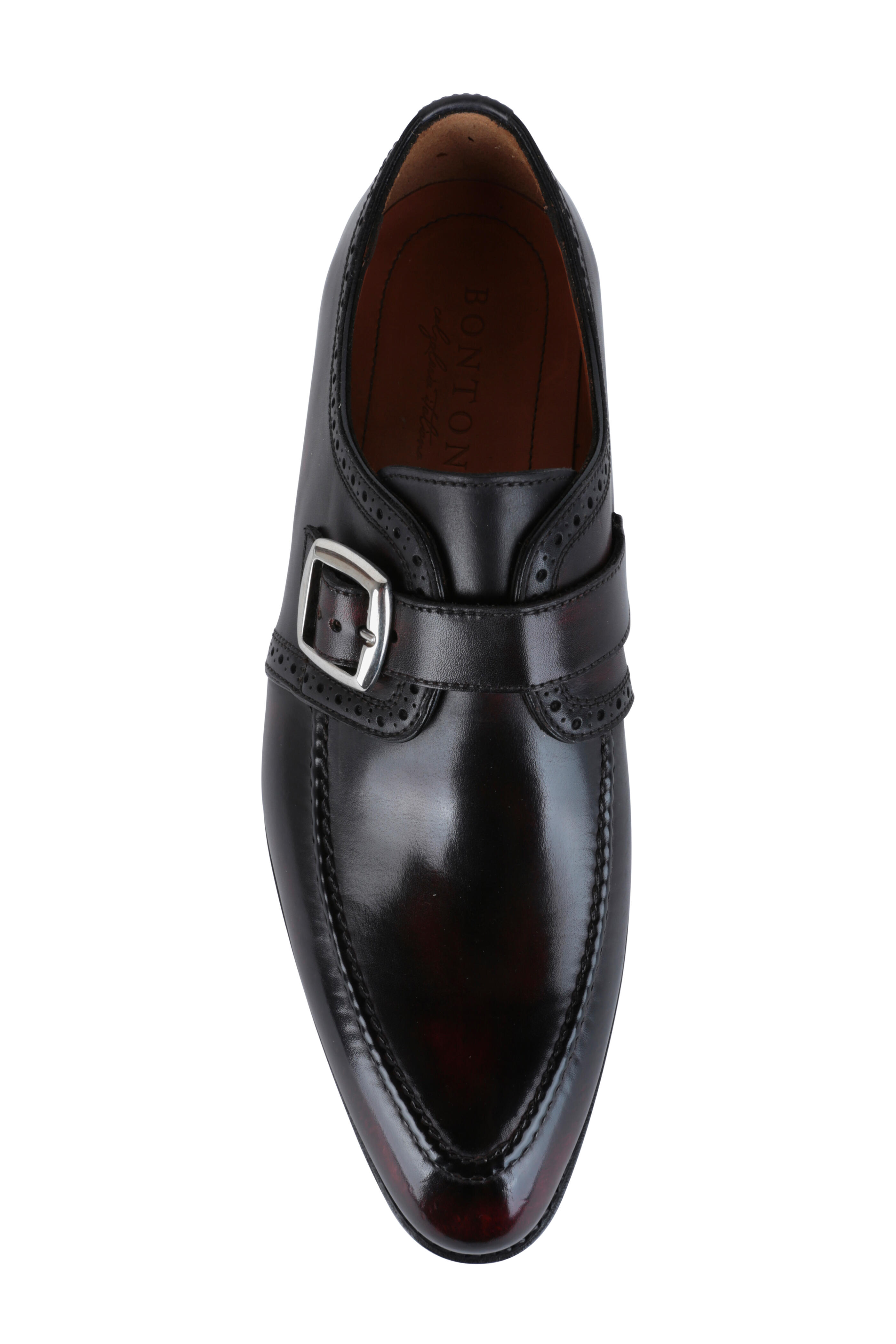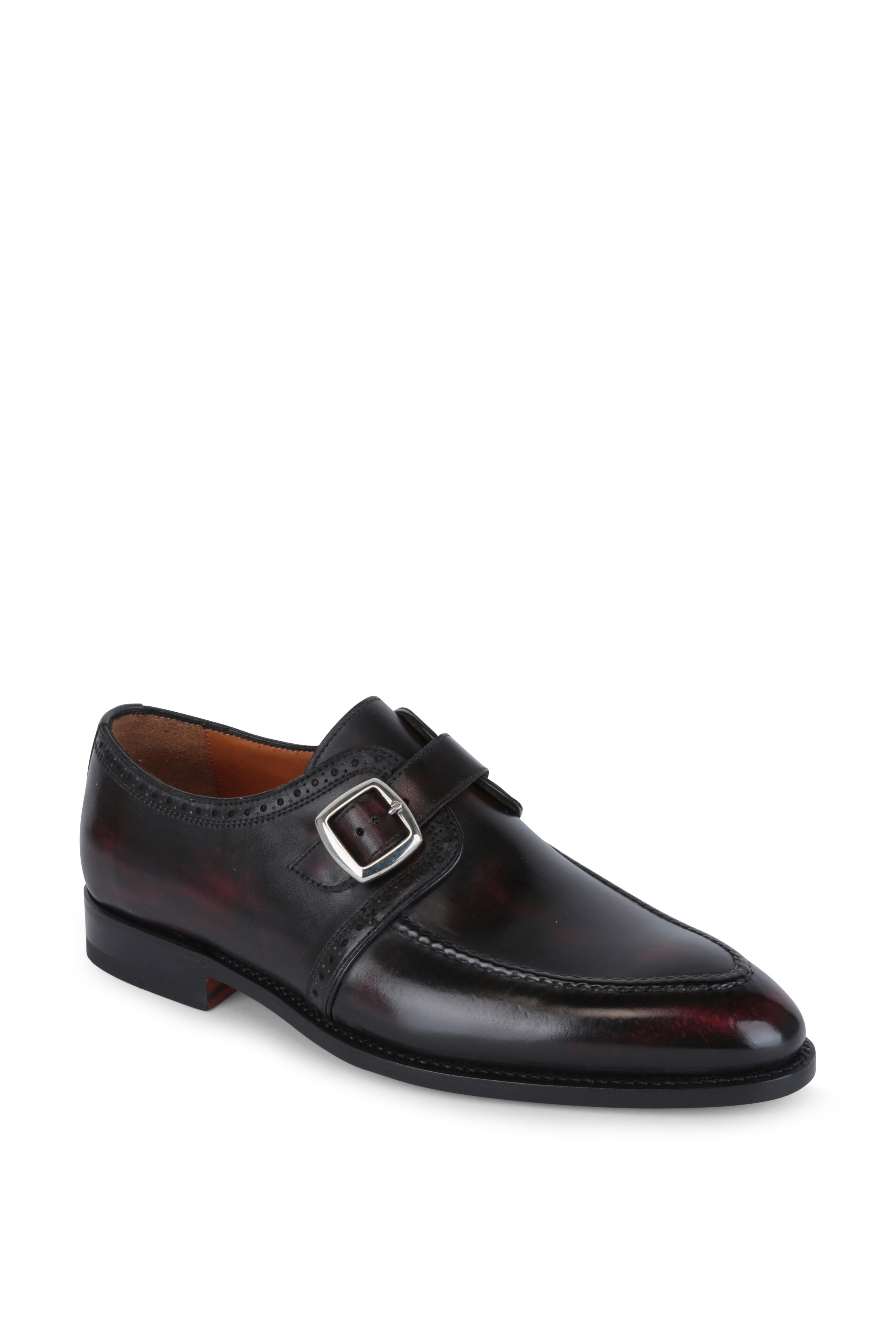 Burnished calfskin leather upper. Apron toe. Monk strap with adjustable buckle. Leather lining and insole. Stacked wooden heel. Leather sole. Made in Italy.