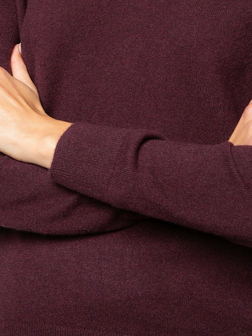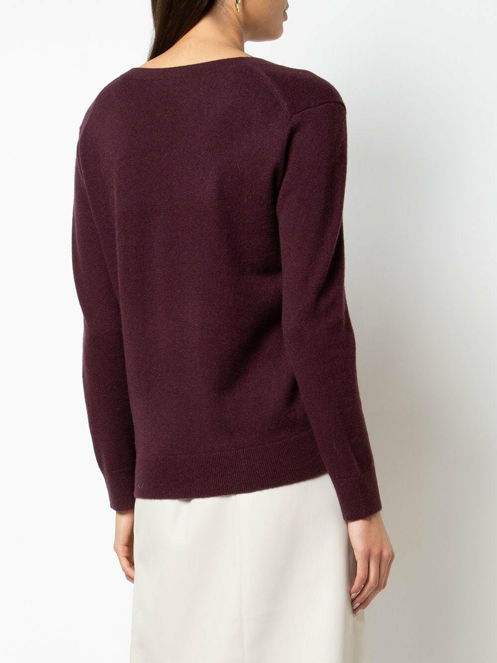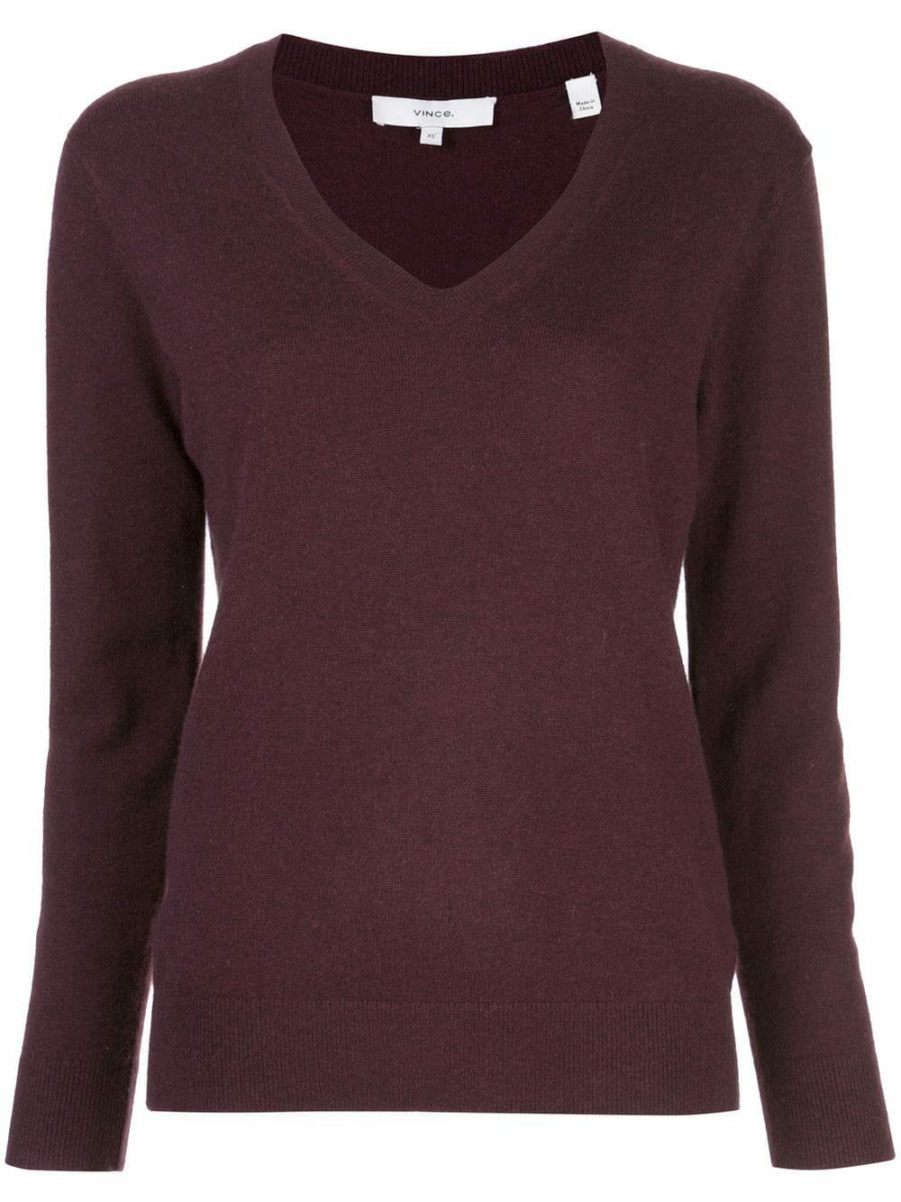 V-neckline. Ribbed trim. Imported. 100% cashmere. Hand wash.