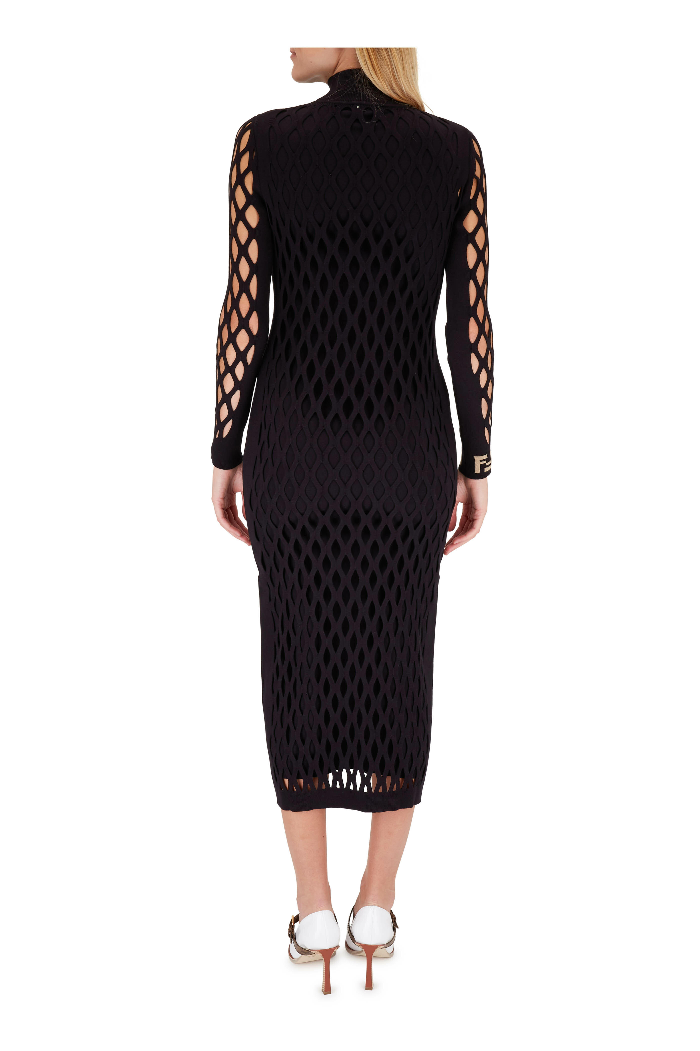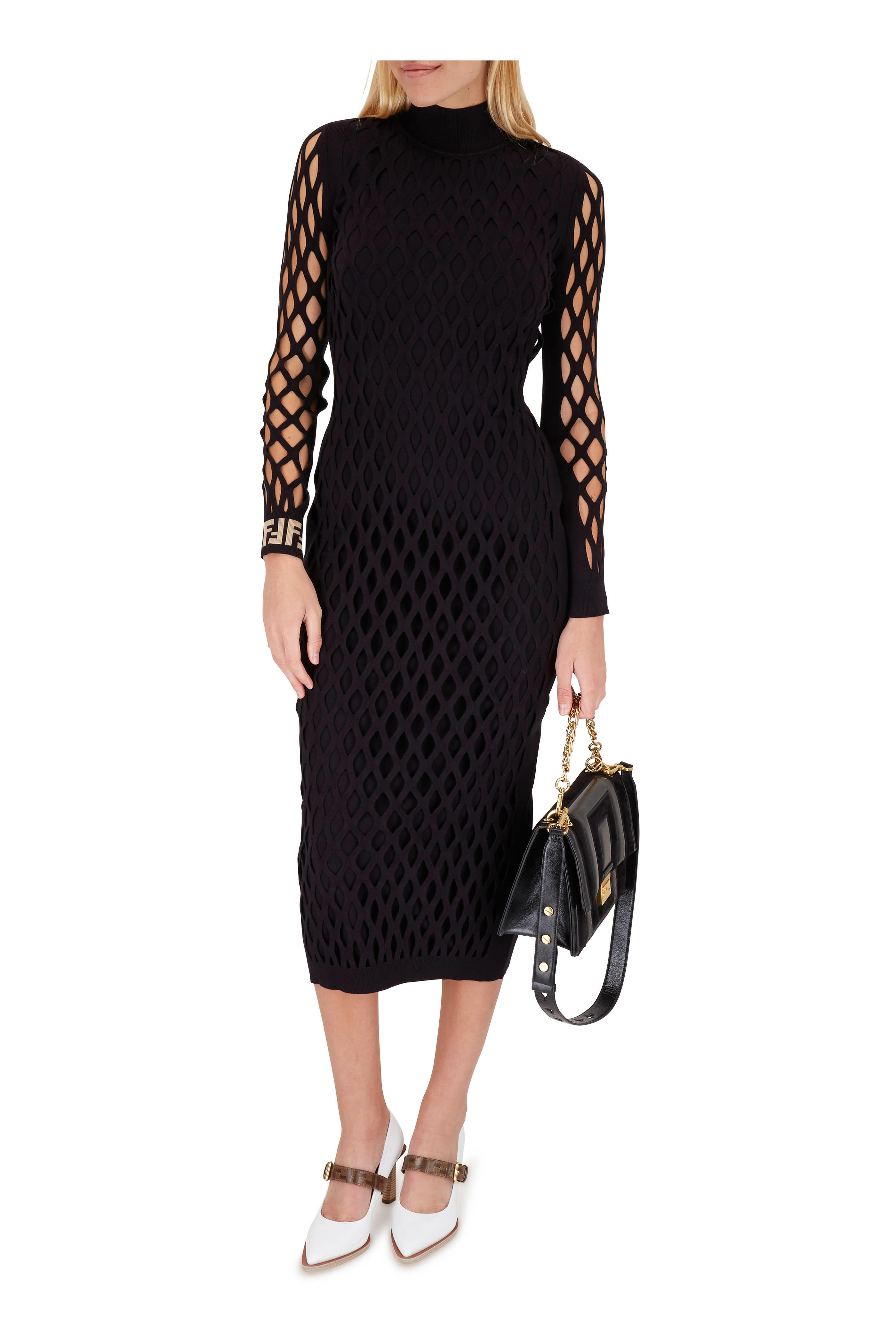 Glossy neoprene upper. Pointed toe. Detachable FF logo straps at vamp, adjustable buckle. Mesh lining, cushioned insole. Stacked and sculpted two-color detail heel. Oversized sole frames the profile of the shoe. Made in Italy. Heel measurement: 85mm (3 ½").