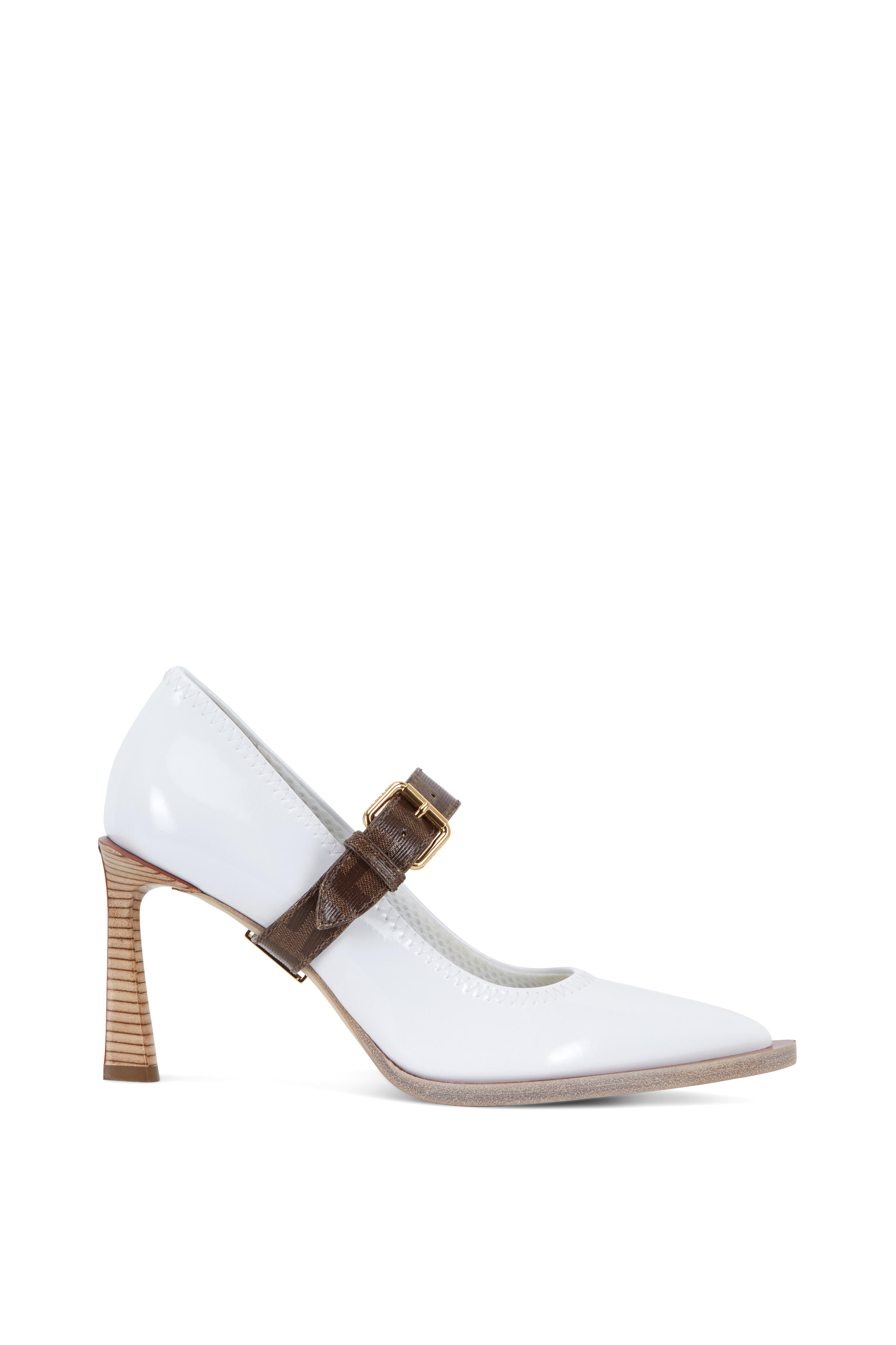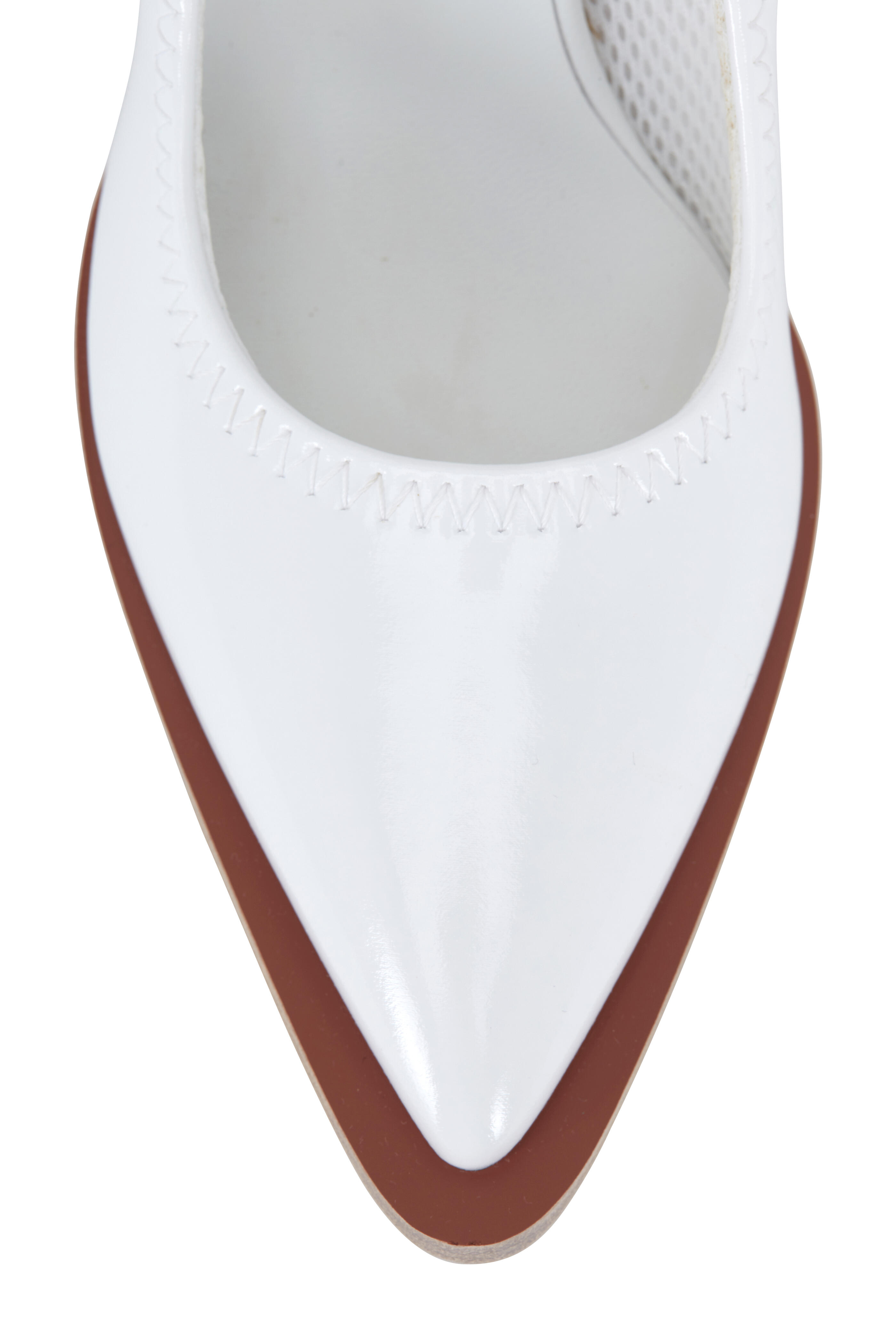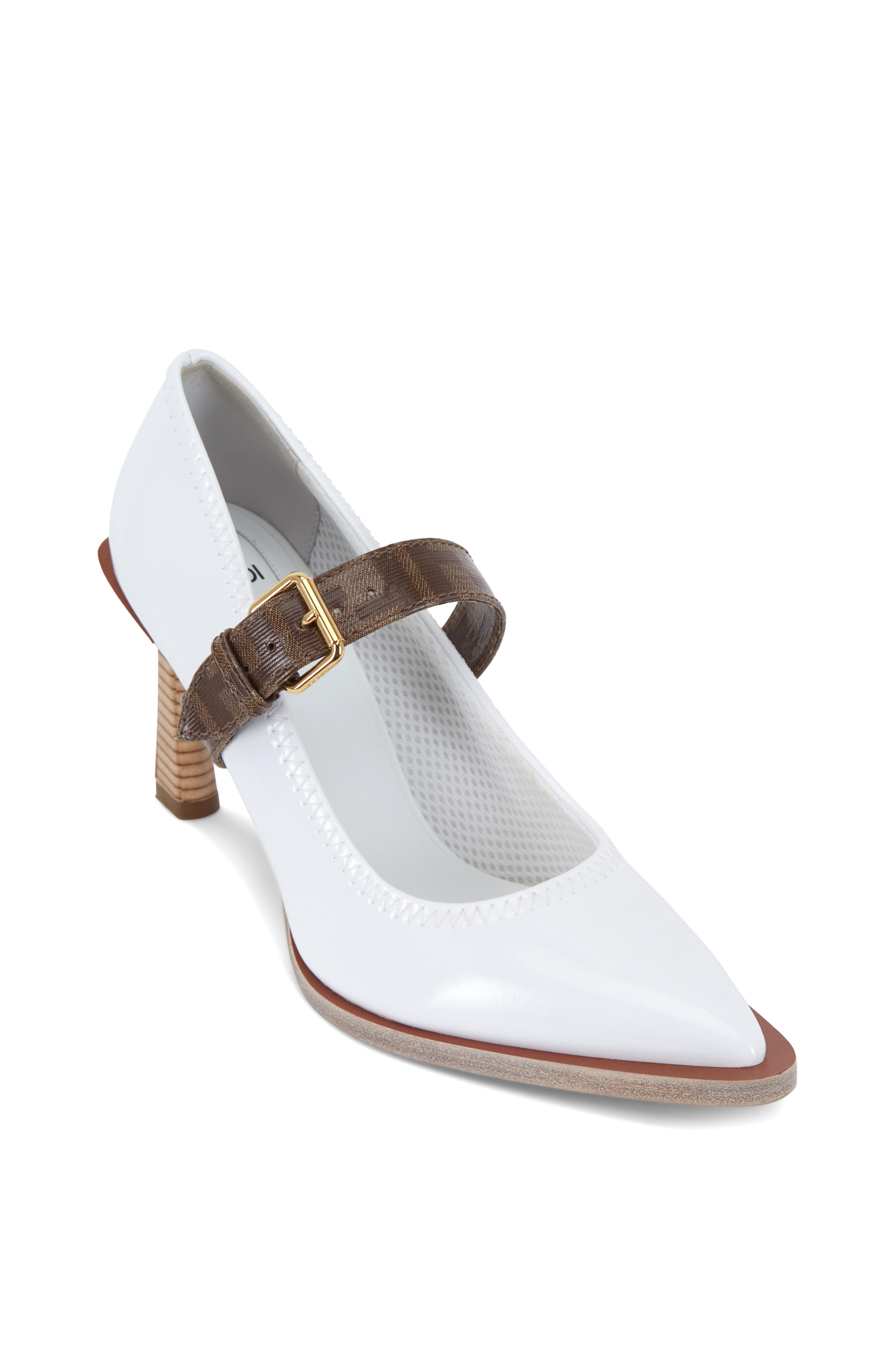White Glossy Neoprene Detachable Strap Pump, 85mm