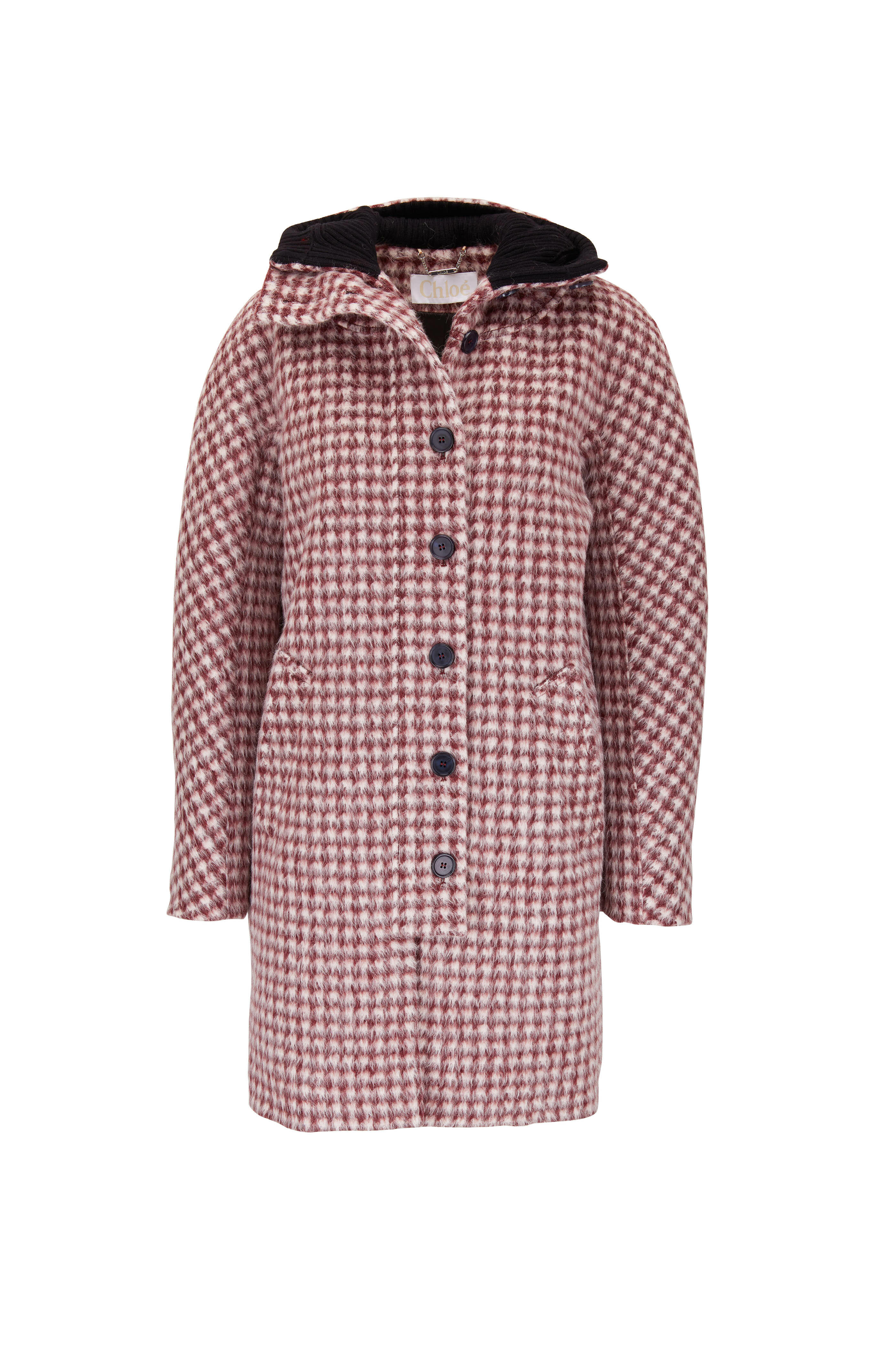 Attached hood. Front button placket. Front slip pockets. Imported. 46% alpaca, 29% virgin wool, 25% polyamide; fully lined. Dry clean.