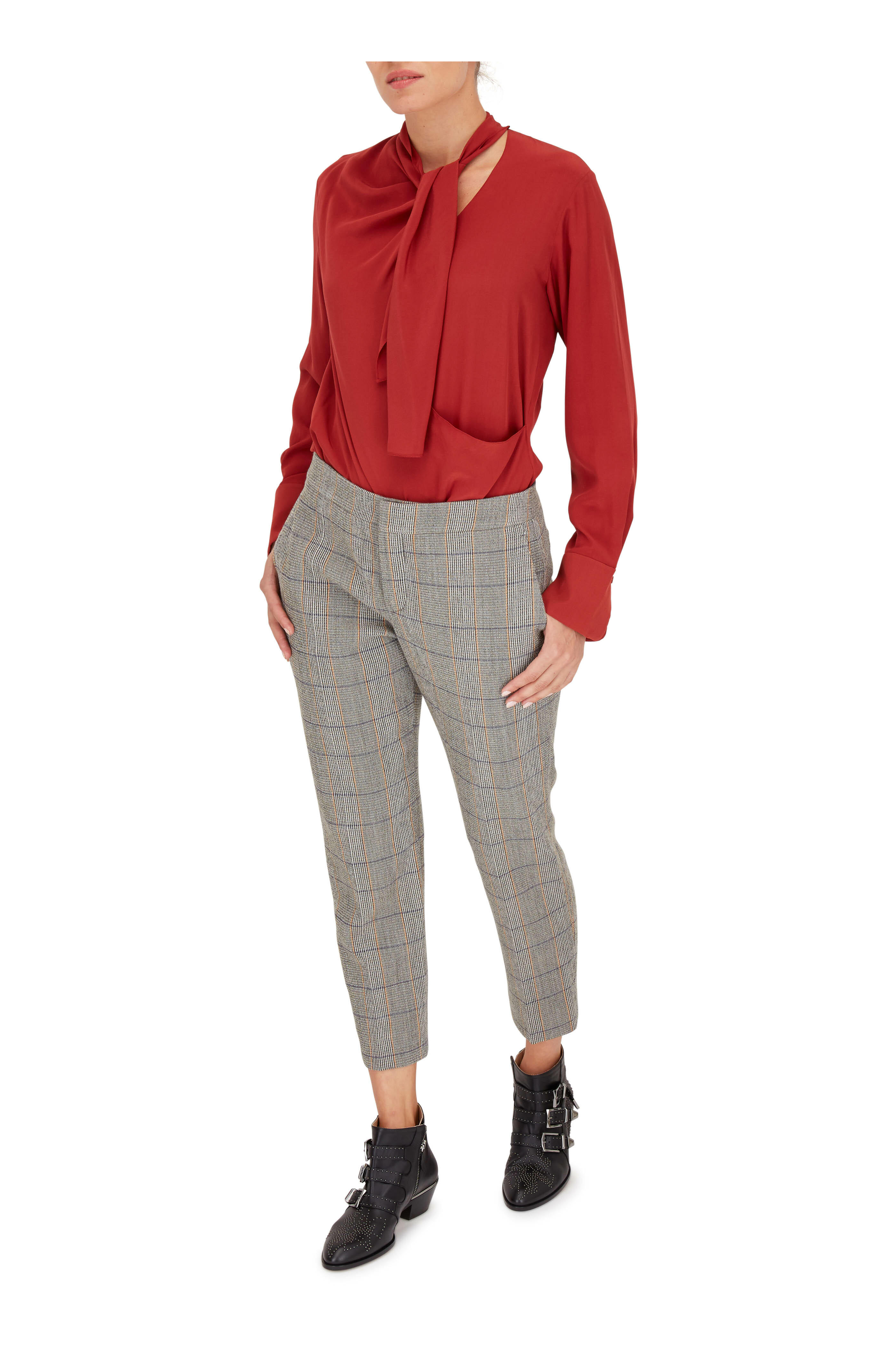 Banded waist. Concealed zip and hook and eye closure. Side slash pockets, back welt pockets. Tapered legs. Imported. Inseam: 26". 98% wool, 1% elastane, 1% polyamide; partially lined. Dry clean.