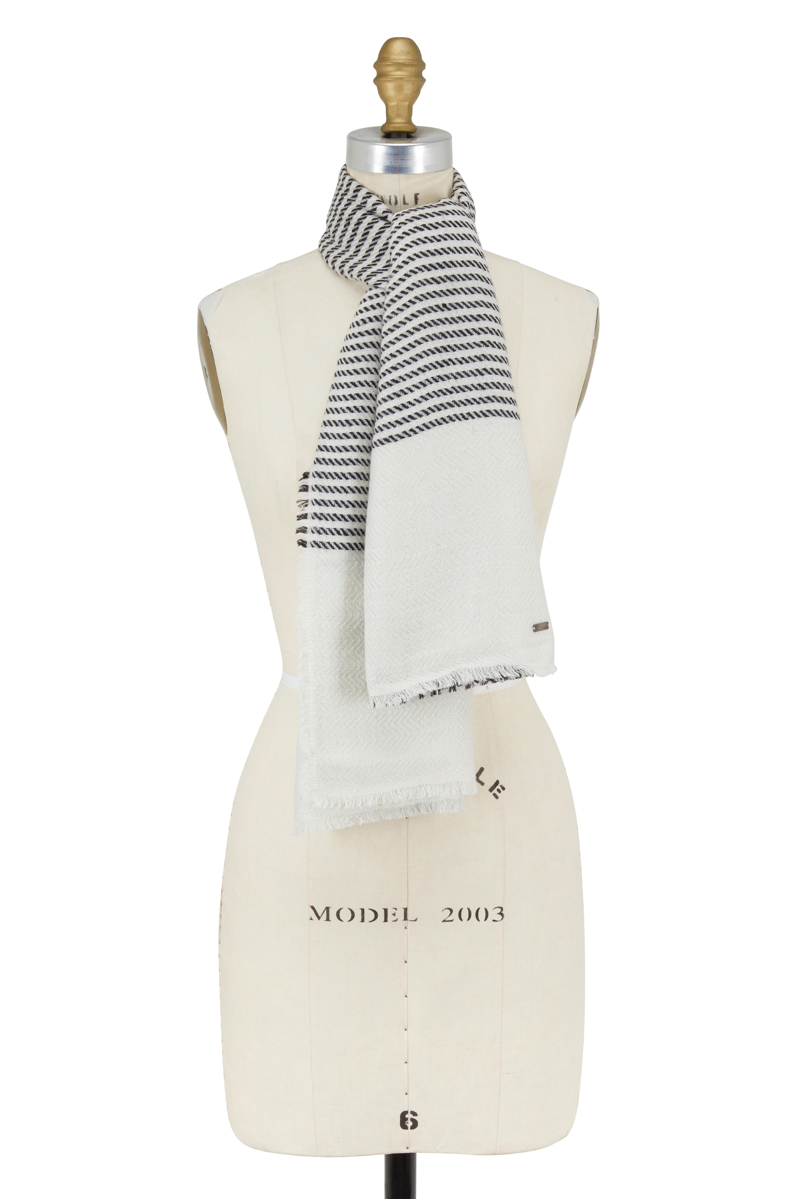 Fringed trim. Made in Italy. 100% cashmere. Dry clean.
