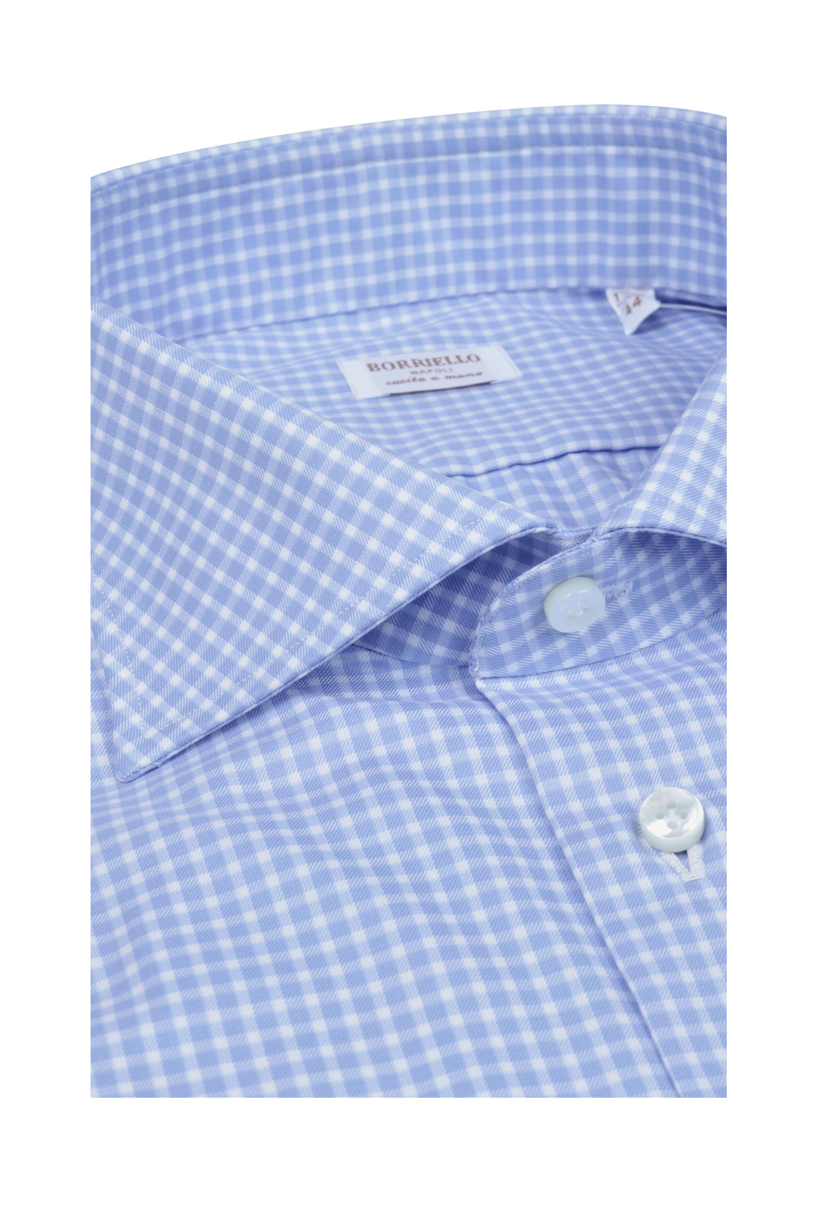 Spread collar. Single button barrel cuffs. Made in Italy. 100% cotton. Machine wash.