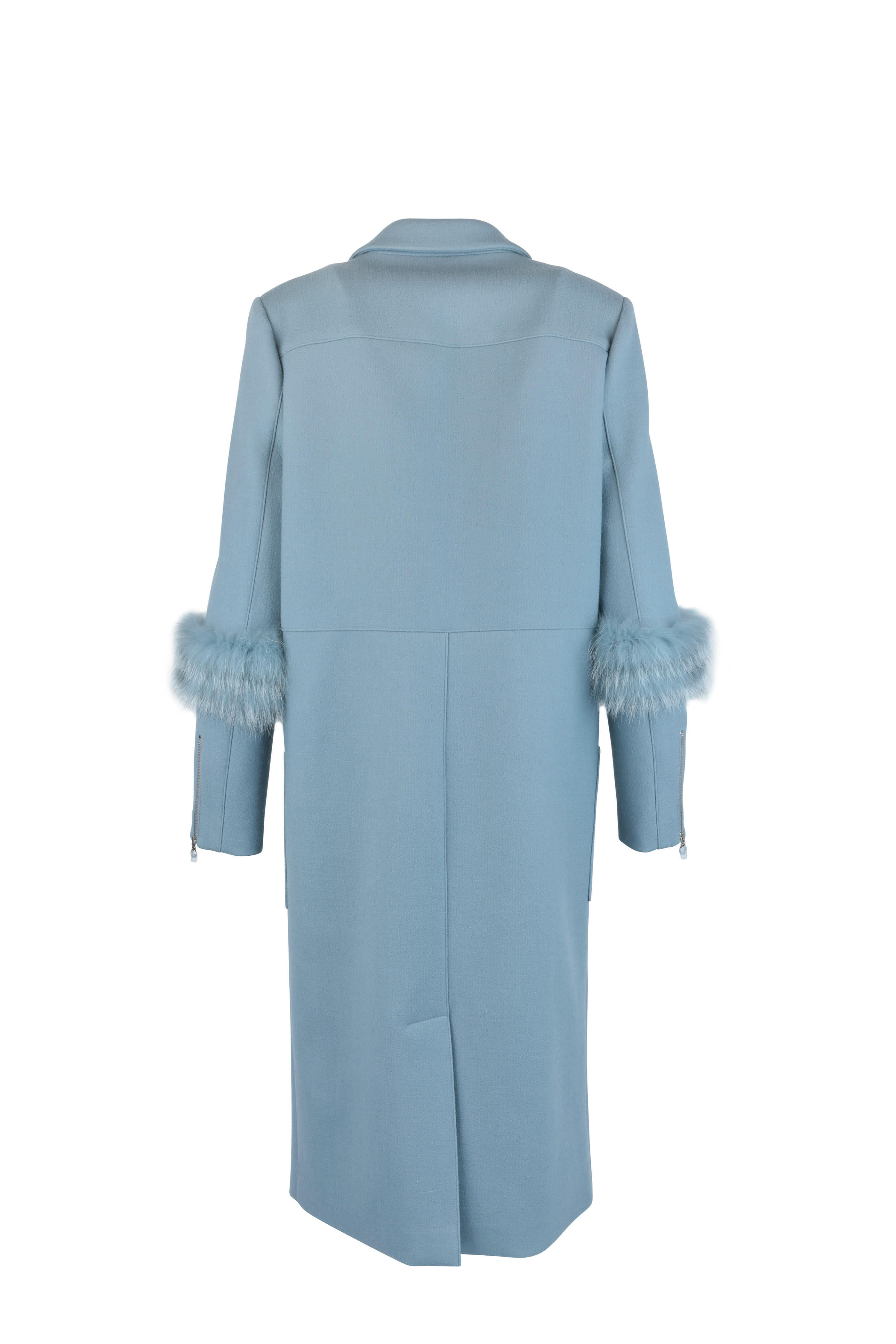Specialist clean. Notched lapels. Concealed button closure. Side slip pockets. Single rear center vent. Made in the USA. 48% virgin wool, 48% polyester, 4% polyurethane; lining: 100% silk; trim: marble fox ( Finland).