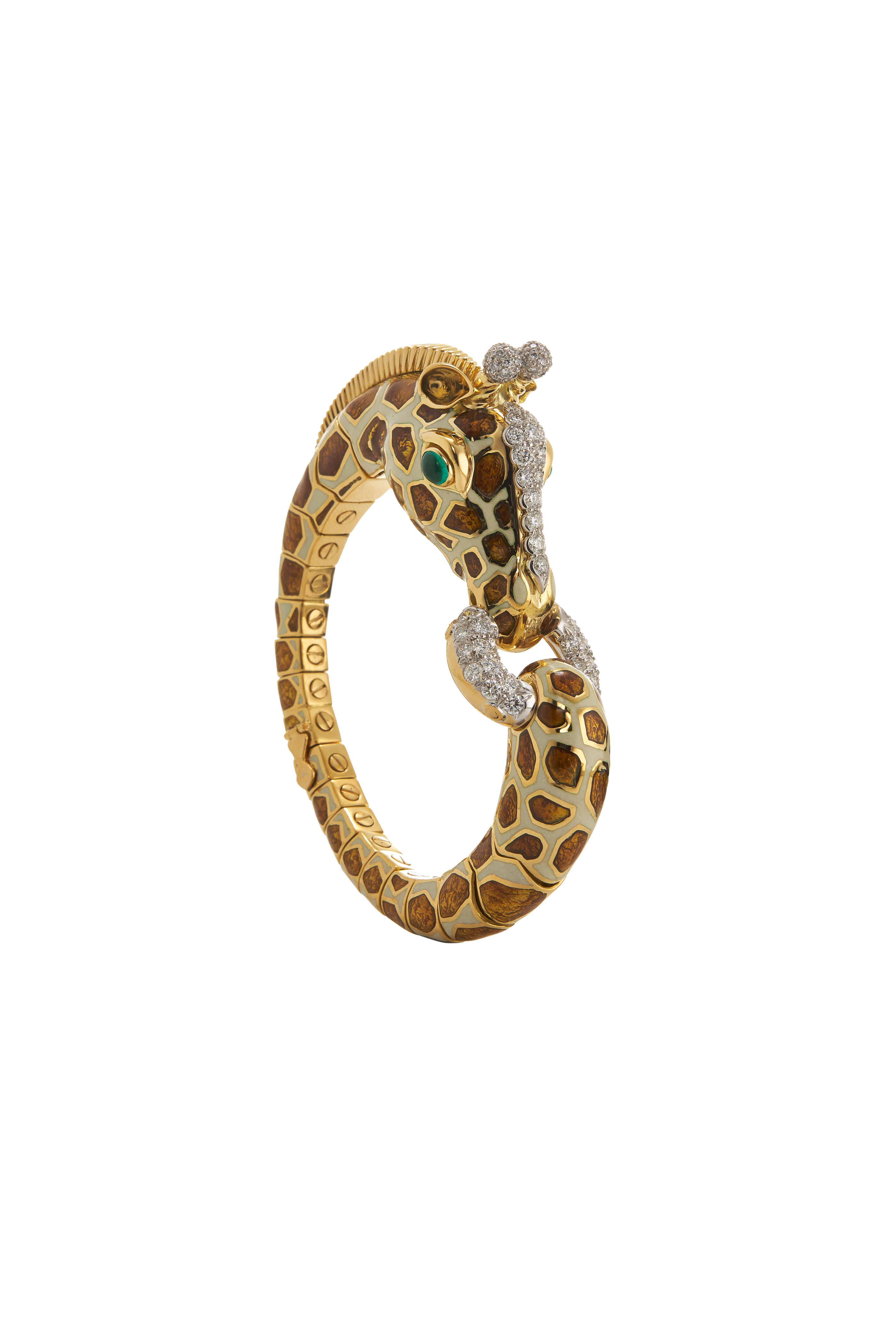 18K Gold & Platinum Enamel Giraffe Bracelet