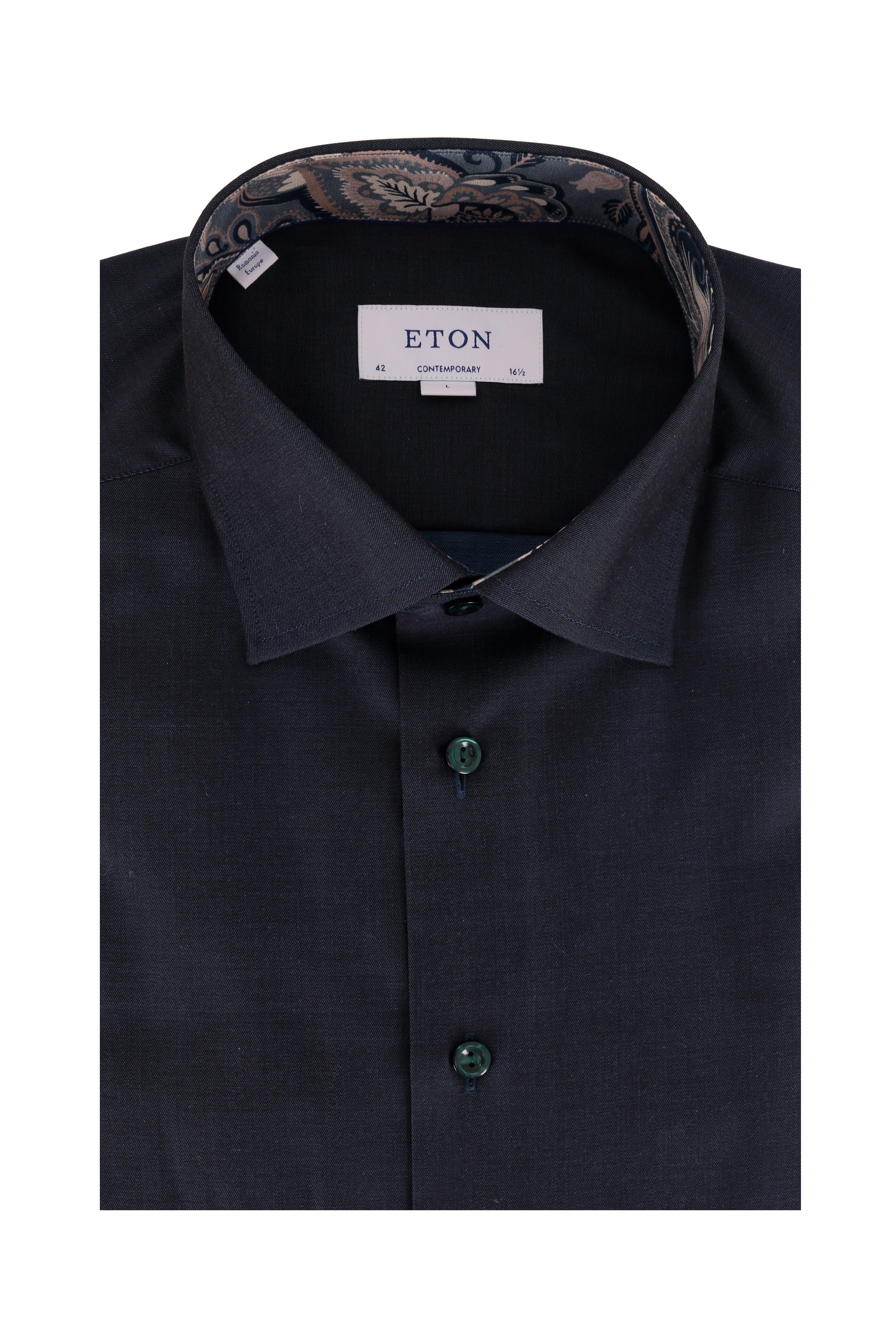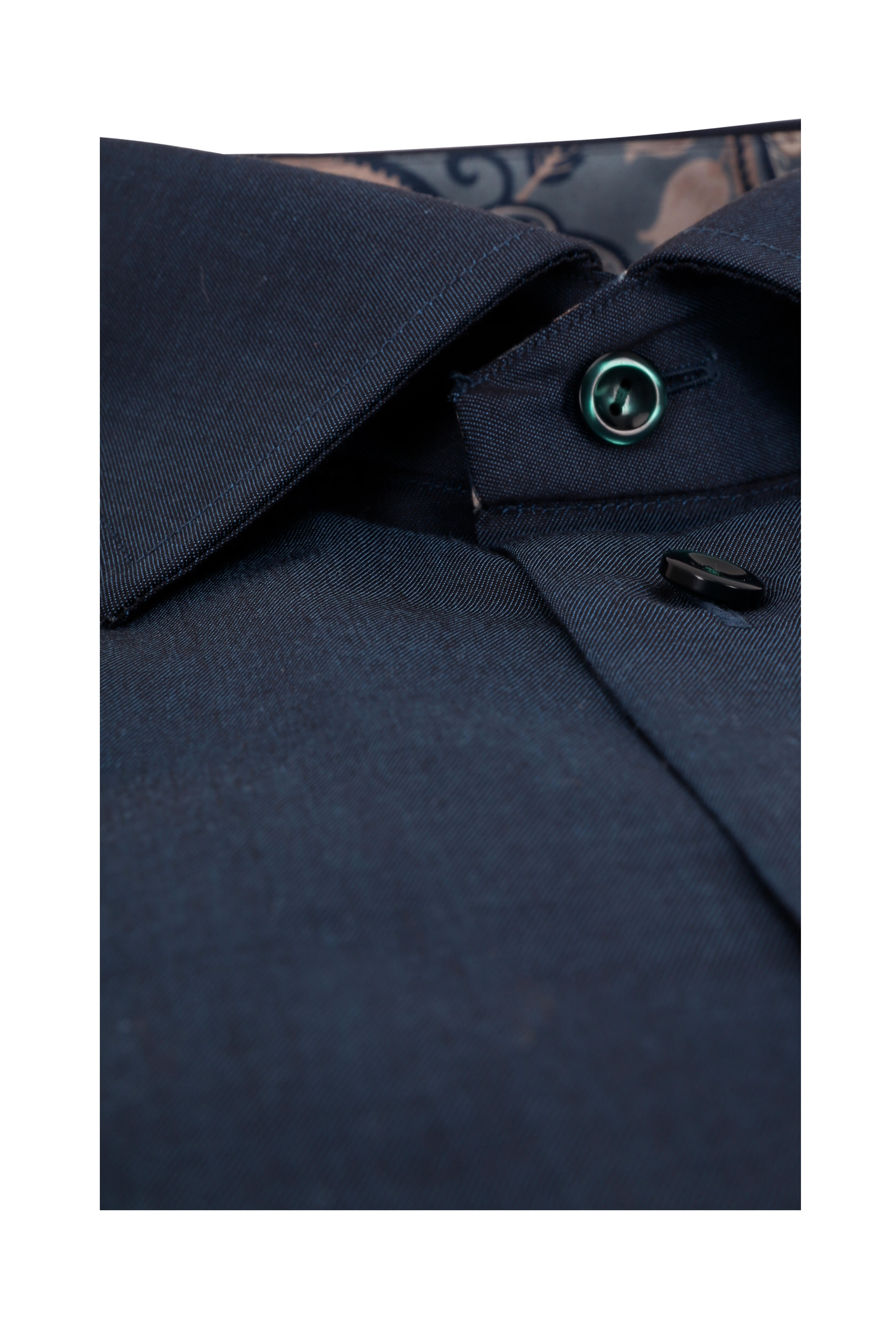 Solid Navy Blue Contemporary Fit Dress Shirt
