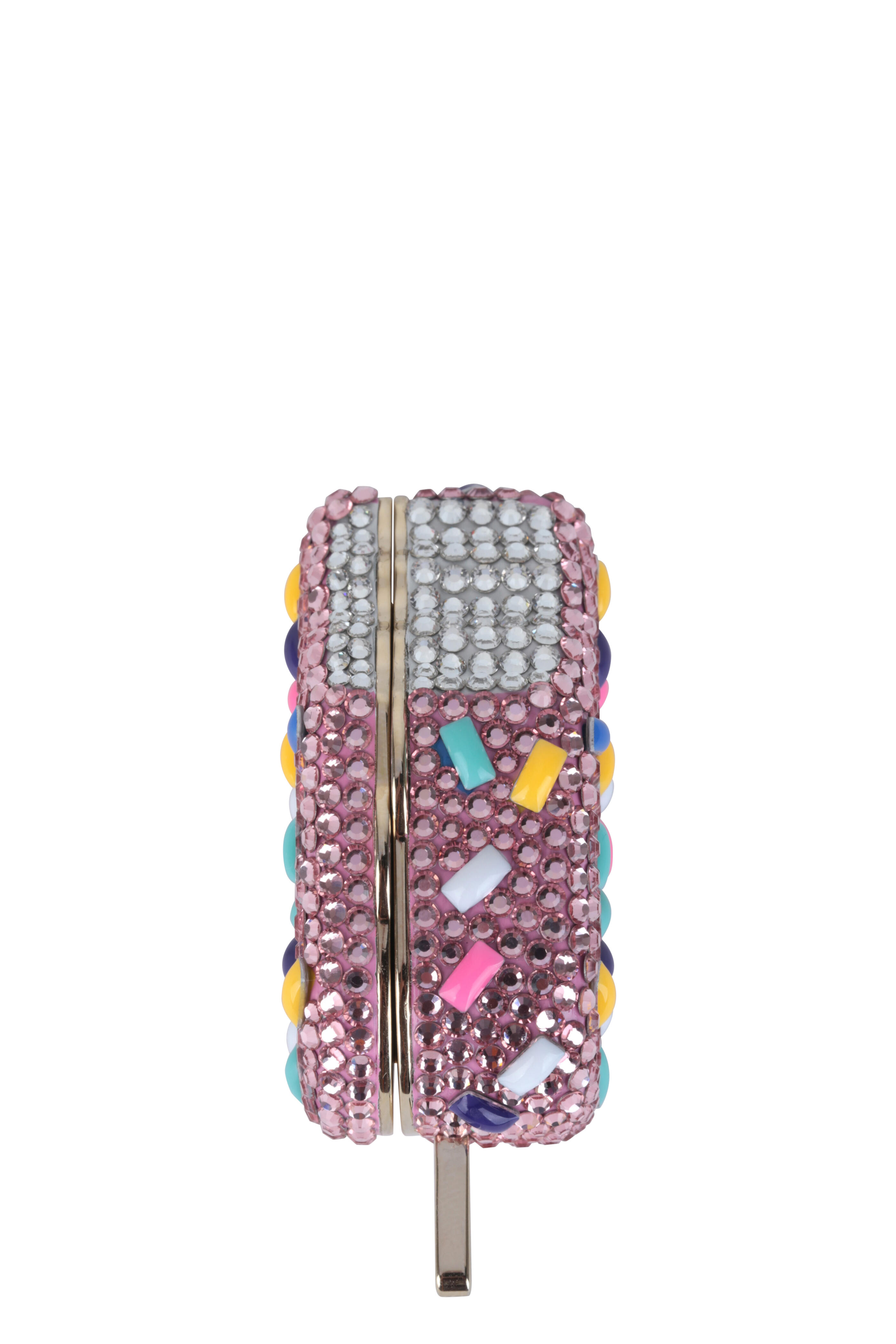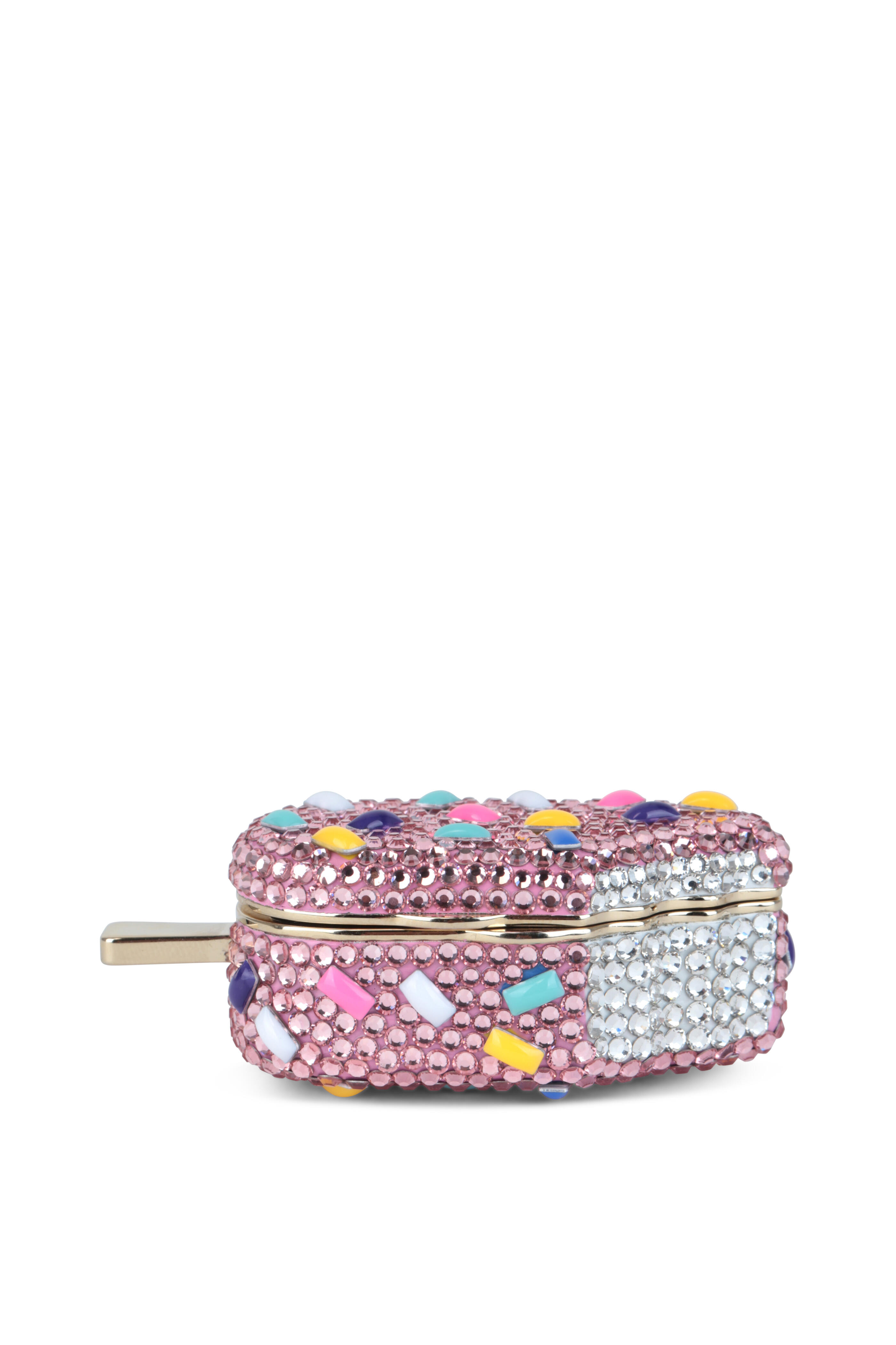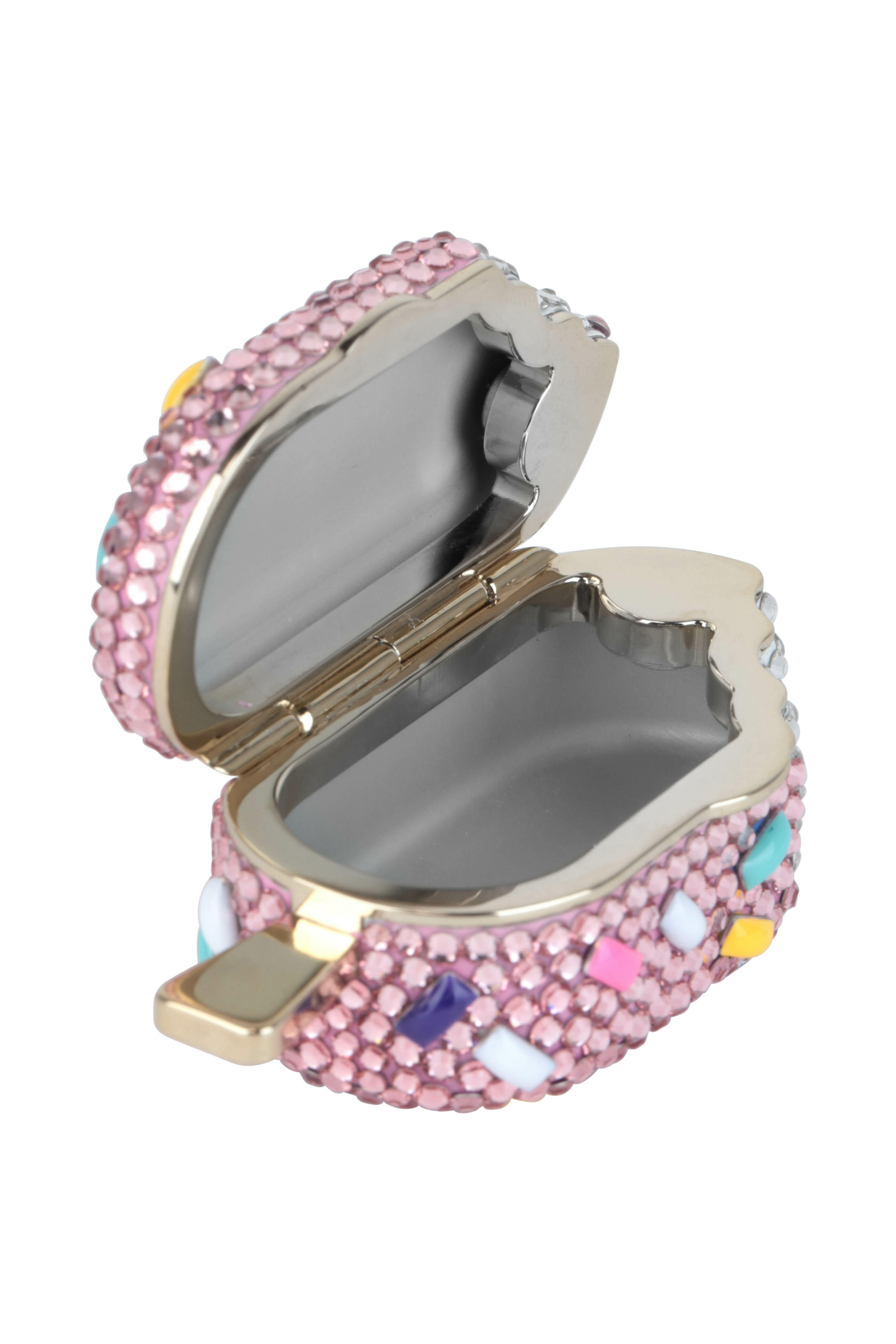 Austrian crystal covered brass. Hinge opening. Gold-tone hardware. Made in Italy. Length: 2 ½".