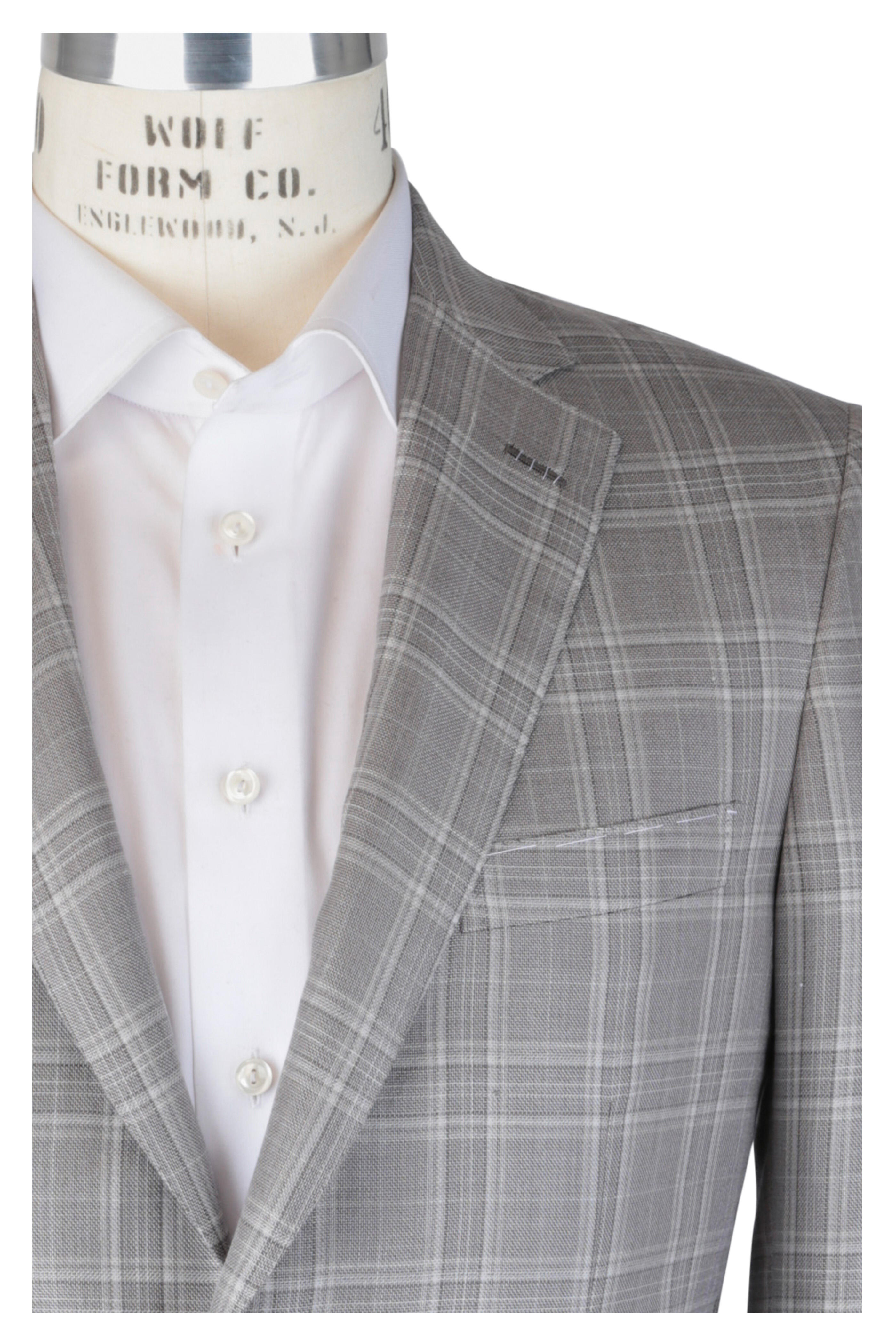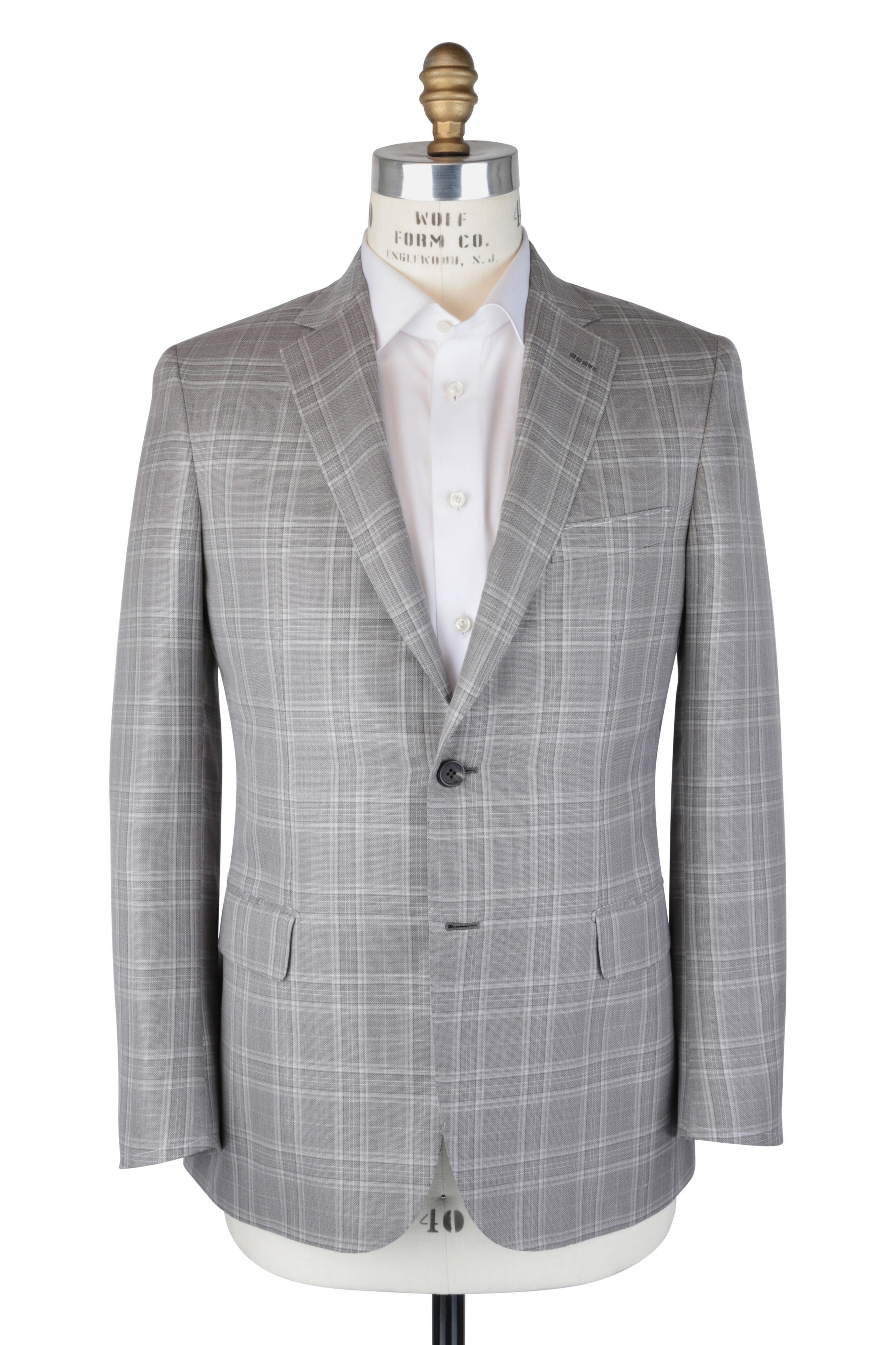 Notched lapels. Two button closure. Chest welt pocket, lower flap pockets. Double vent. Made in Italy. 60% cashmere, 40% silk. Dry clean.