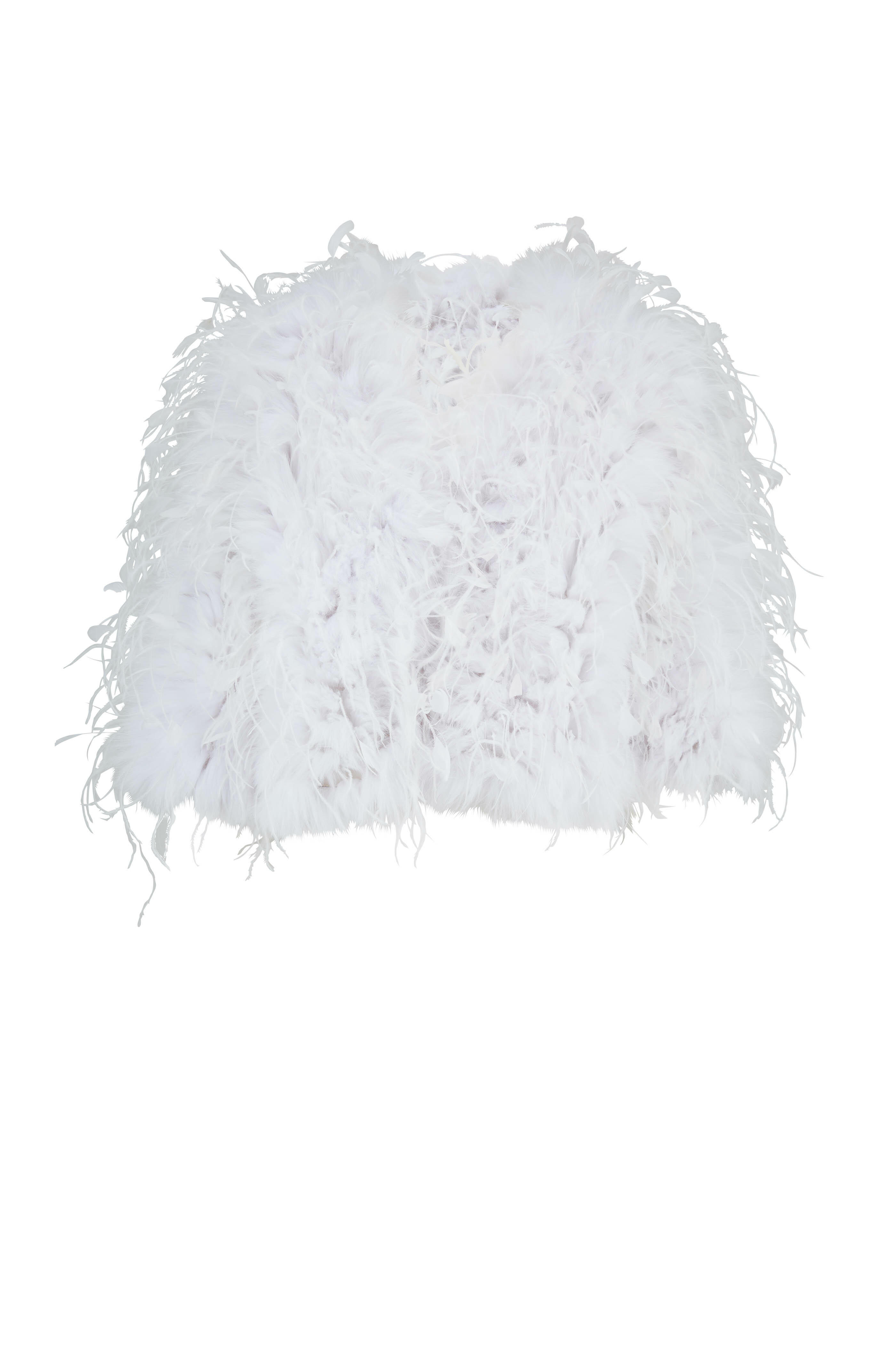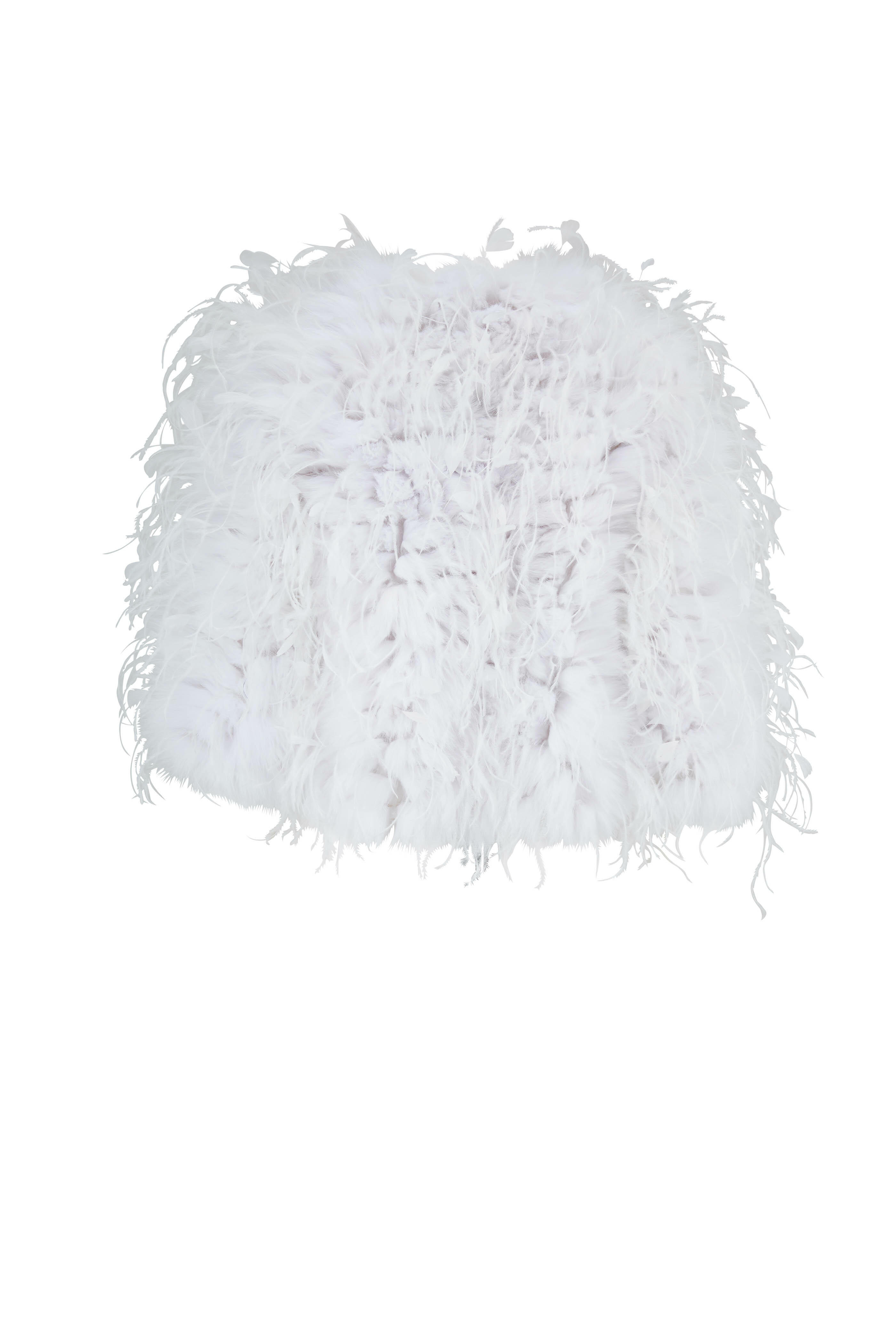 White Shadow Fox Fur & Ostrich Feather Jacket
